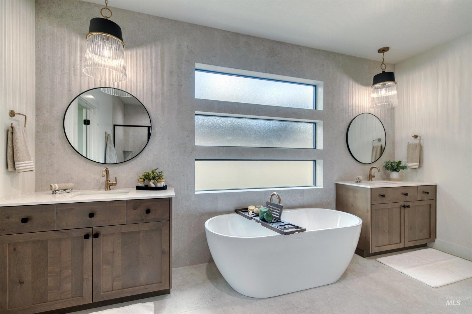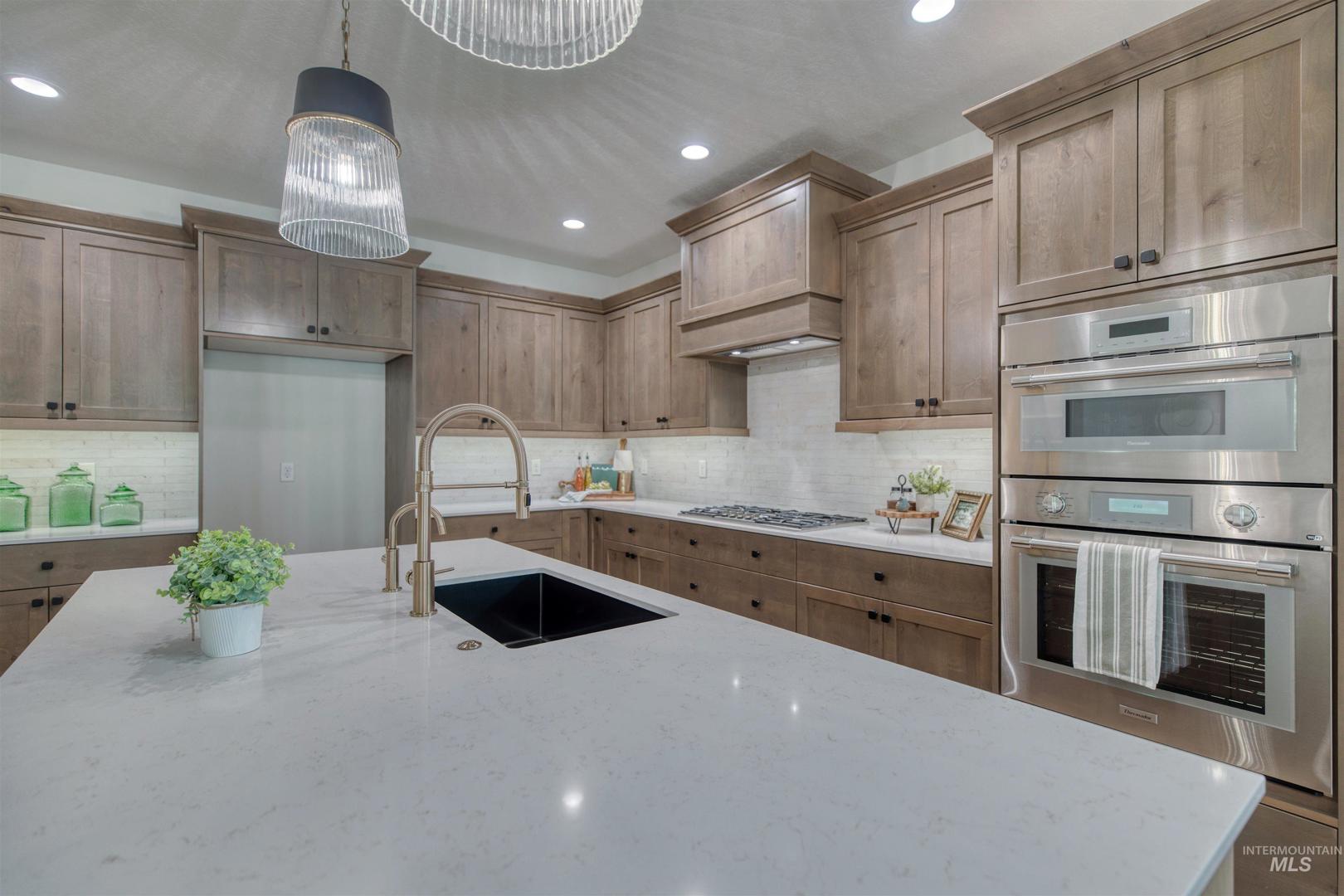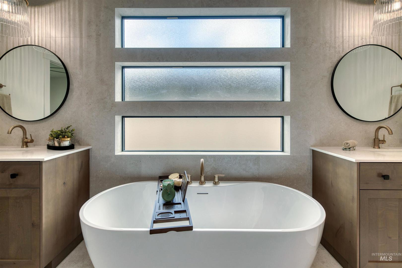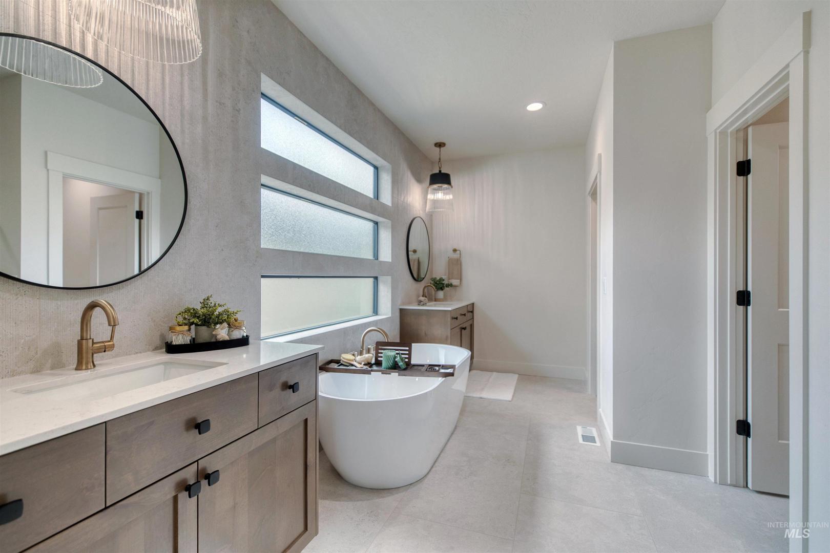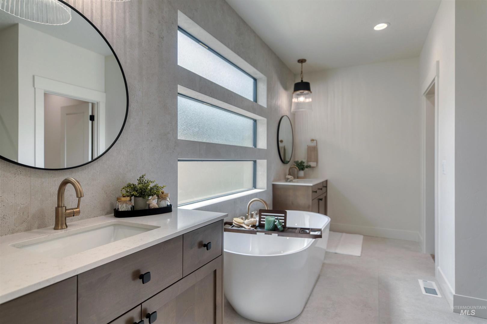 Welcome to this stunning 3 bedroom, 1 office, 2.5 bathroom home, pictures finally finished! You`ll see the custom touches throughout this home. Quartz countertops, stained cabinets, large pantry with plumbed area for a secondary refrigerator, Thermador appliances in the kitchen, floor to ceiling textured vanity tile in primary bath, freestanding tub, and walk in tile shower. Spare bath is a Jack and Jill bathroom. Large back patio has great space for entertaining; the back yard could have a garden or just space for tranquility. The garage RV bay is 45 foot in length, pre-plumbed for garage heater, and hot/cold water spigot. Enclosed mechanical room with tankless water heater. Upgraded spray foam insulation. This cul-de-sac with the close proximity to downtown Eagle, the Boise River, Eagle Island State Park, and multiple shopping venues, is a must see! Community includes pool, sports court, playground and walking paths. Buyers to verify all information.