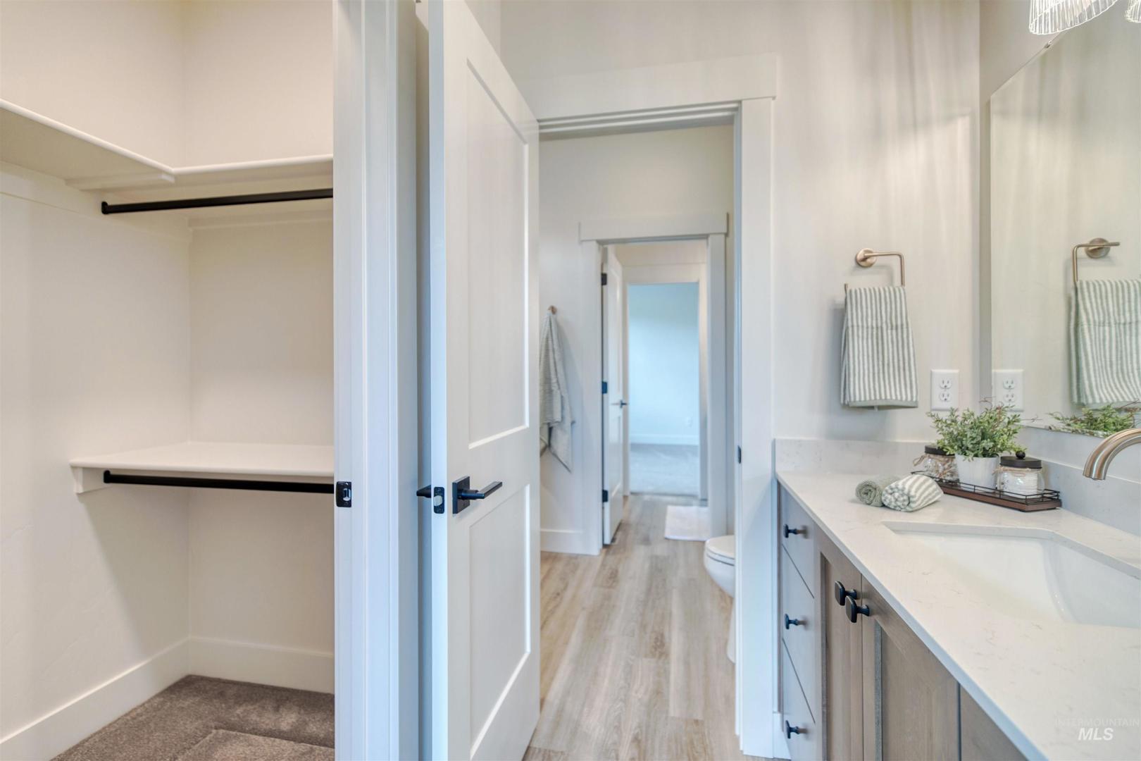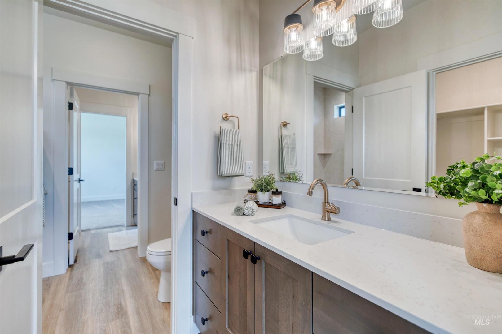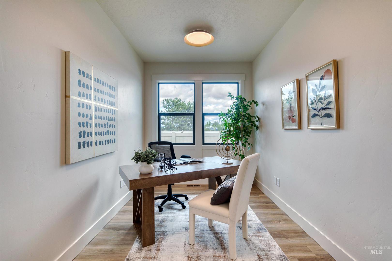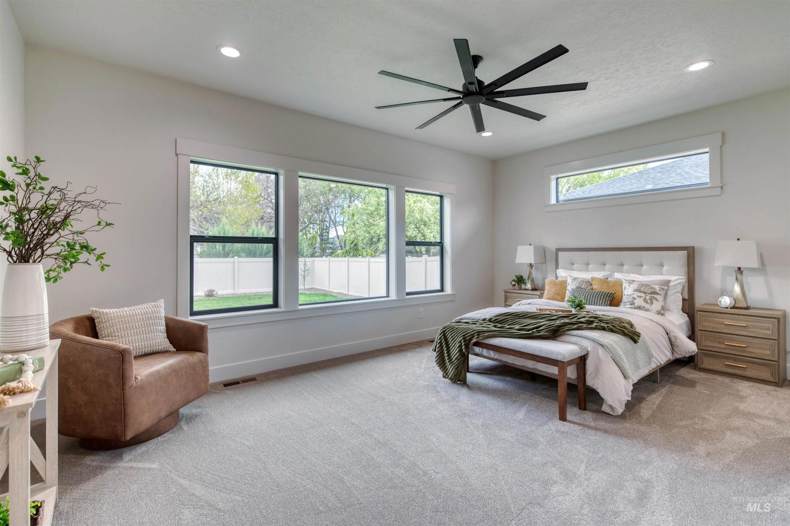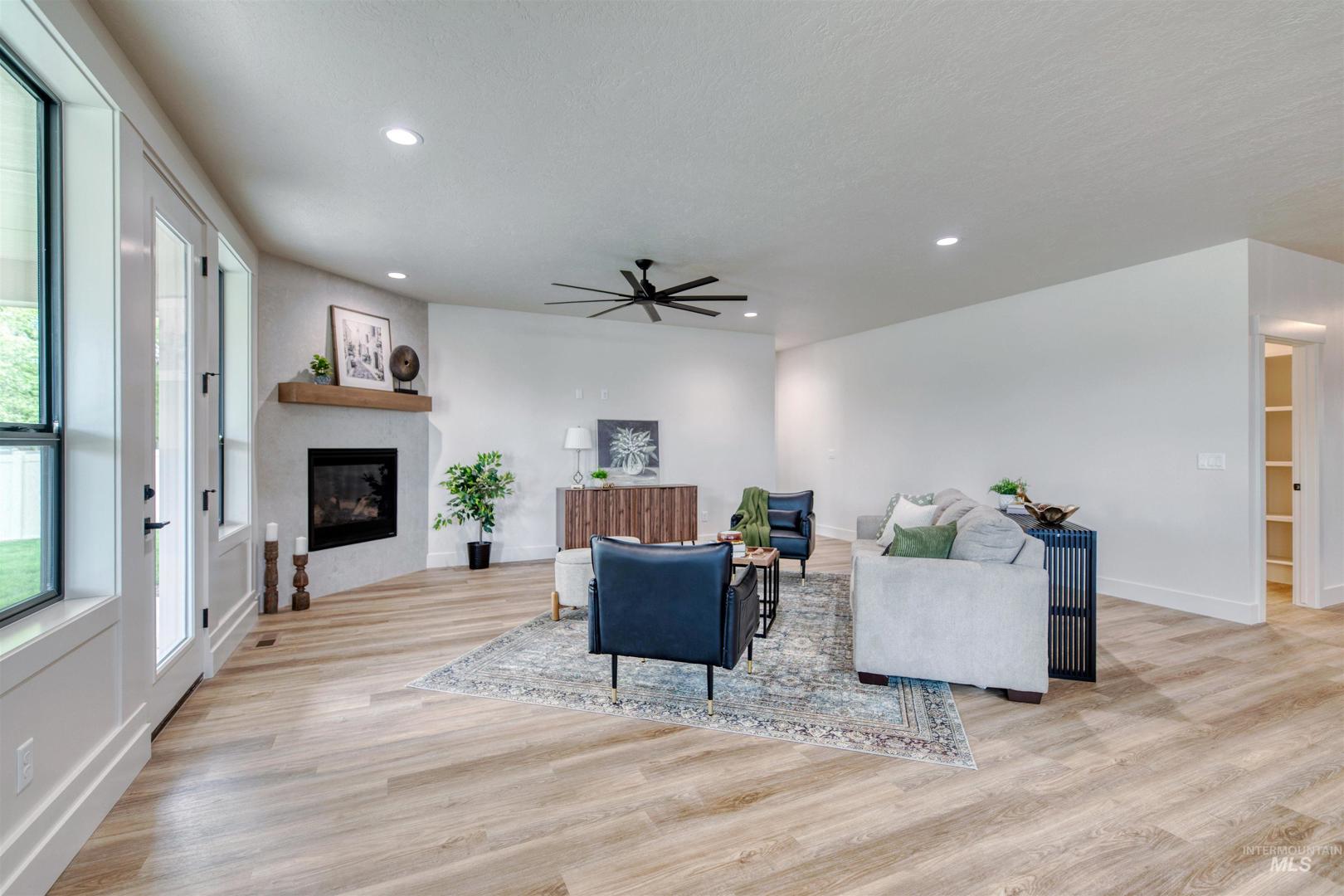 Welcome to this stunning 3 bedroom, 1 office, 2.5 bathroom home, pictures finally finished! You`ll see the custom touches throughout this home. Quartz countertops, stained cabinets, large pantry with plumbed area for a secondary refrigerator, Thermador appliances in the kitchen, floor to ceiling textured vanity tile in primary bath, freestanding tub, and walk in tile shower. Spare bath is a Jack and Jill bathroom. Large back patio has great space for entertaining; the back yard could have a garden or just space for tranquility. The garage RV bay is 45 foot in length, pre-plumbed for garage heater, and hot/cold water spigot. Enclosed mechanical room with tankless water heater. Upgraded spray foam insulation. This cul-de-sac with the close proximity to downtown Eagle, the Boise River, Eagle Island State Park, and multiple shopping venues, is a must see! Community includes pool, sports court, playground and walking paths. Buyers to verify all information.