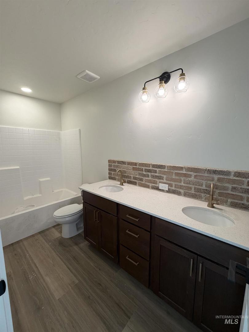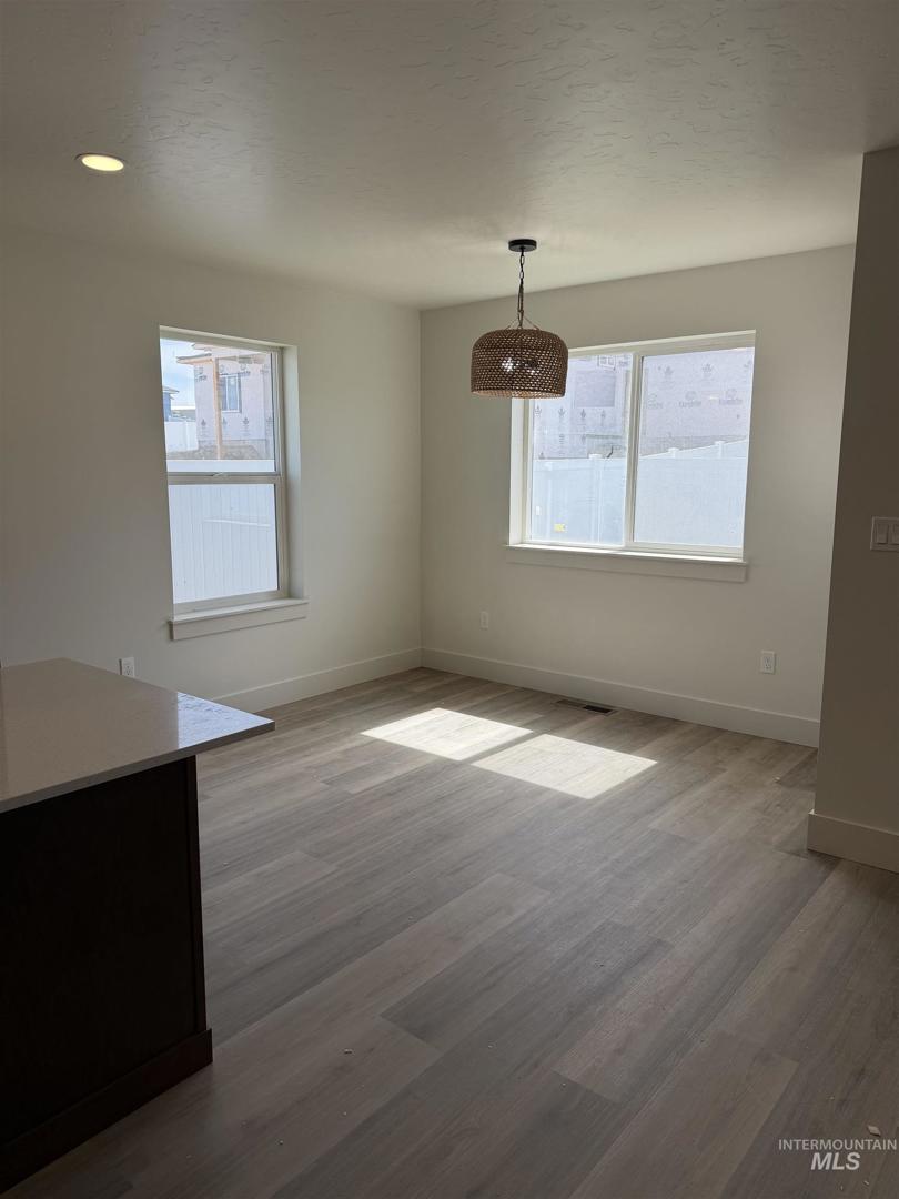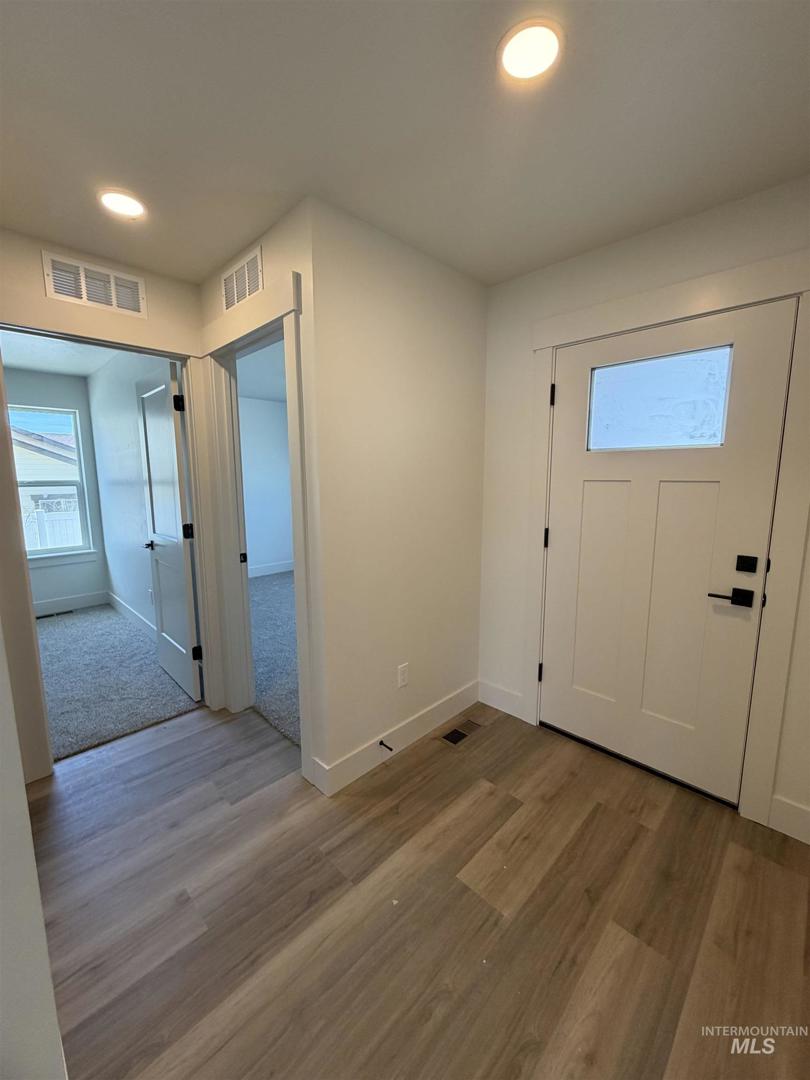Brand new construction in Pipers Glen Subdivision in Payette! This thoughtfully designed 3 bed, 2 bath home offers quality finishes and a functional layout you’ll love. Step inside to a true entryway—no walking straight into the living room—creating a warm and welcoming first impression. The open kitchen features beautiful off white cabinetry with a contrasting darker wood island, beautiful gold finishes, quartz countertops throughout the entire home, brick backsplash, a large island perfect for gathering, stainless appliance package, and a spacious walk-in pantry with plugs for appliances. Laminate wood flooring runs through the main living areas, with carpet in the bedrooms. The primary suite is generously sized, and the en-suite bath includes dual vanities. Enjoy a fully fenced backyard that faces south for abundant sunshine—ideal for BBQs and outdoor entertaining. Both front & back yards are fully landscaped/ backyard has fire pit and is fenced. Complete with a 2-car garage, this home combines style, comfort, and convenience in a great location!
