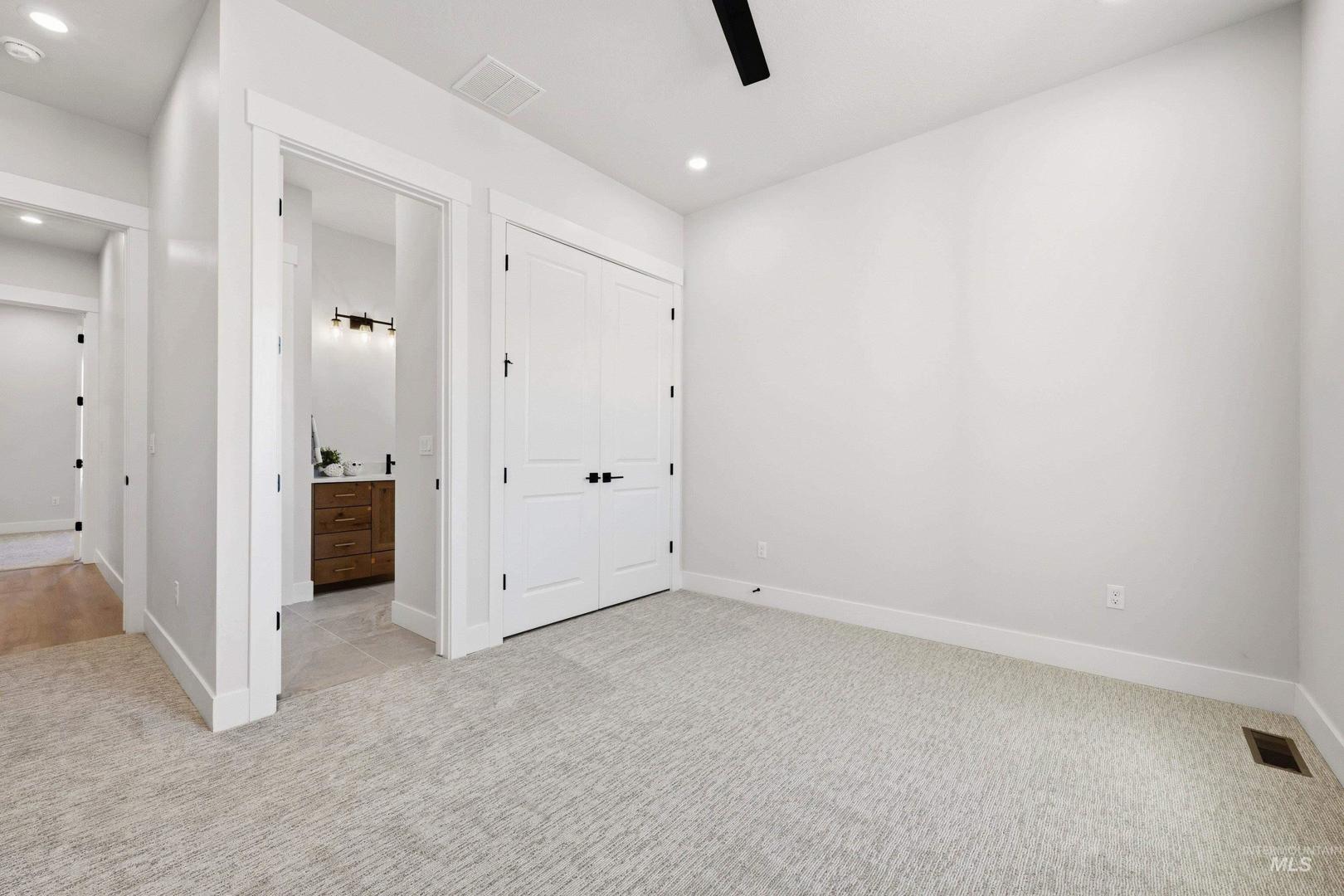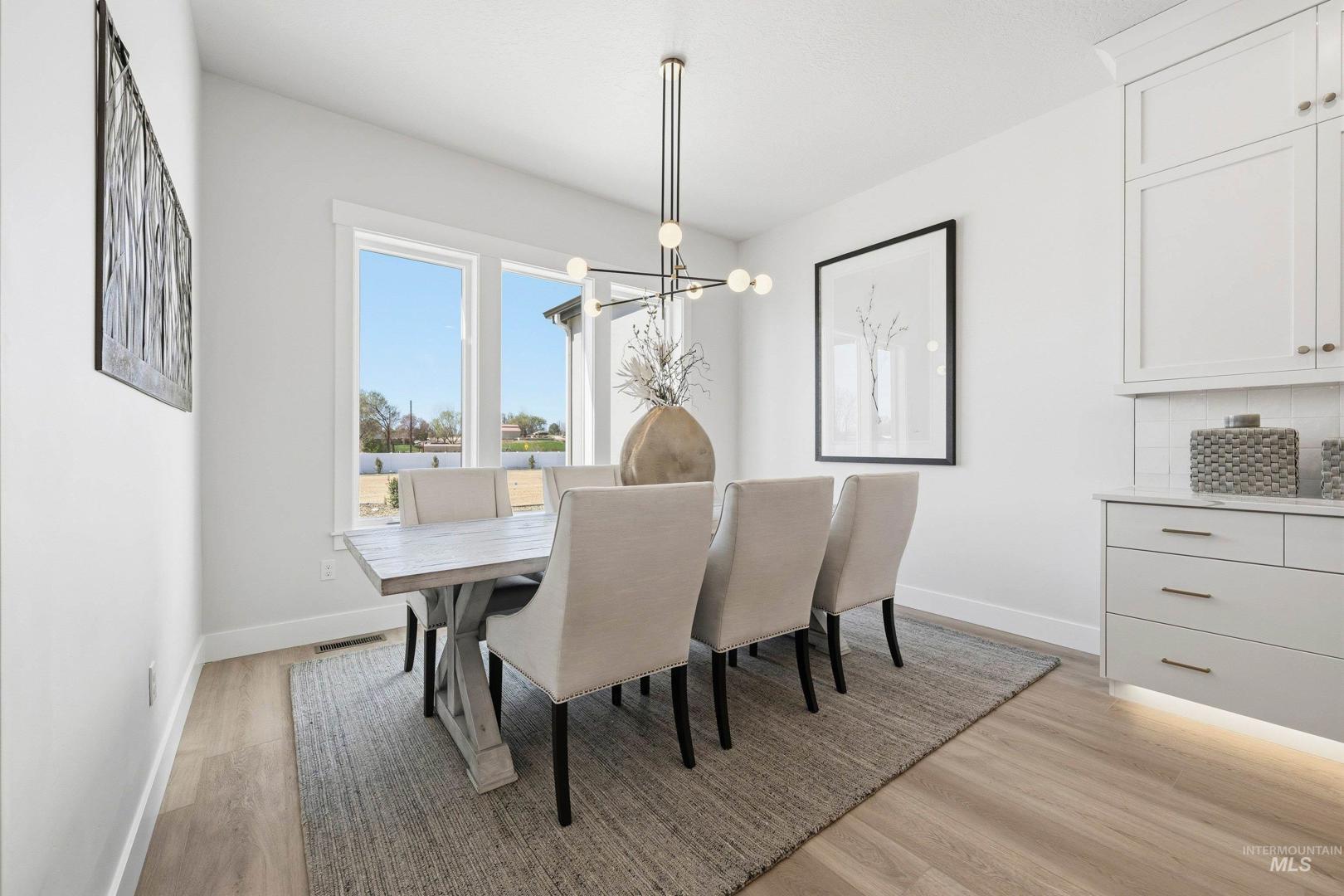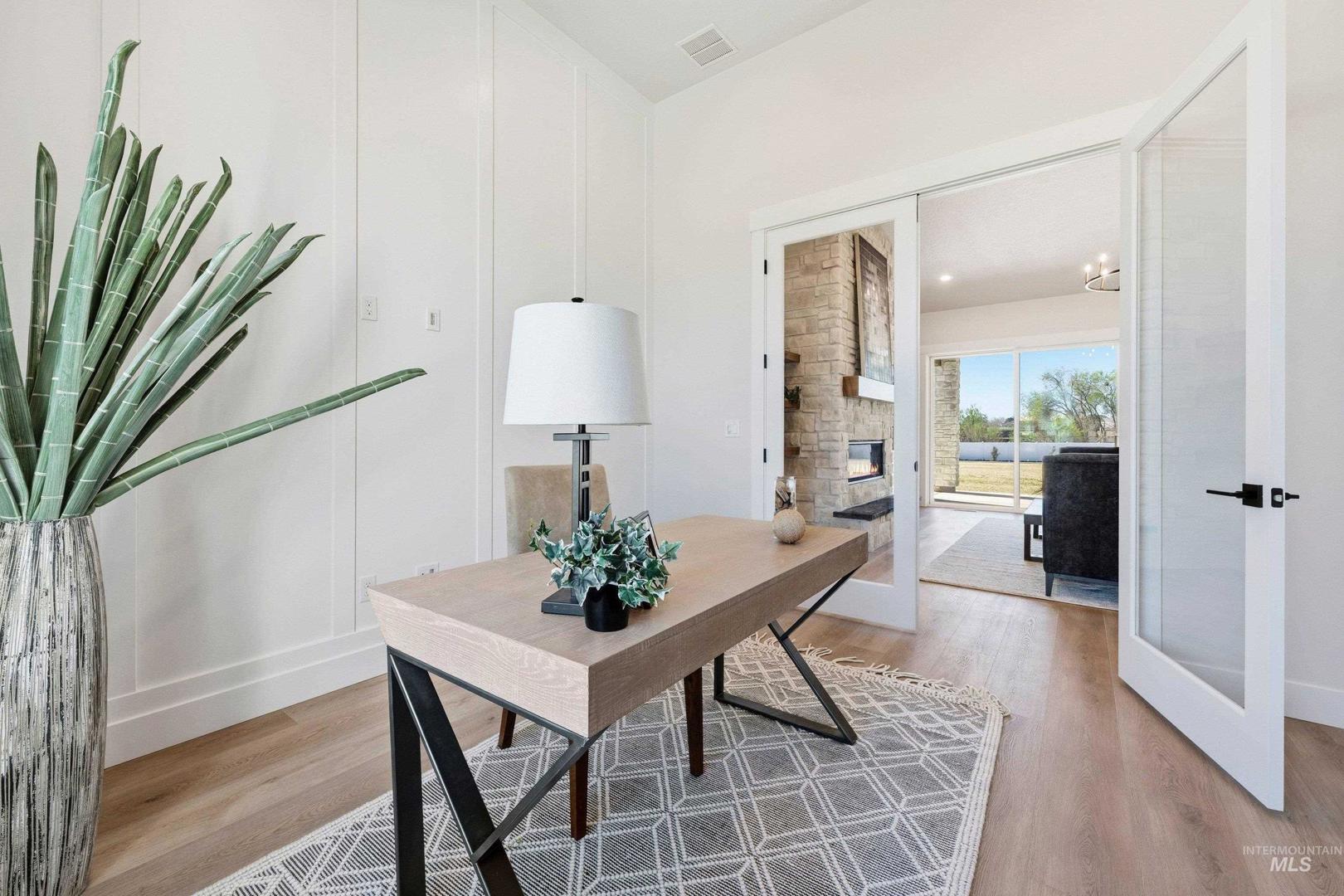 Come Enjoy the Idaho Experience Living in the sought-after Spring Hill Ranch Community! This stunning new construction home sits on a full acre with incredible views, blending luxury with everyday functionality. Featuring 3 bedrooms, 3.5 baths, office and an 8-car insulated, painted garage with a 54’ RV bay, there’s plenty of room for all your vehicles and storage. Inside, you’ll find quartz countertops, matte black fixtures, and LVT flooring, all highlighted by soaring 10’+ ceilings. The gourmet kitchen boasts stainless steel appliances, a gas range, double ovens, and a butler’s pantry. The open-concept great room showcases a vaulted ceiling and stone fireplace, with direct access to a covered patio for indoor-outdoor living. Great for entertaining! The primary suite offers coffered ceilings, a walk-in tiled shower, soaking tub, dual vanities and dual walk-in closets. Located minutes to Exit 25, Purple Sage Golf Course, and down downtown Middleton!