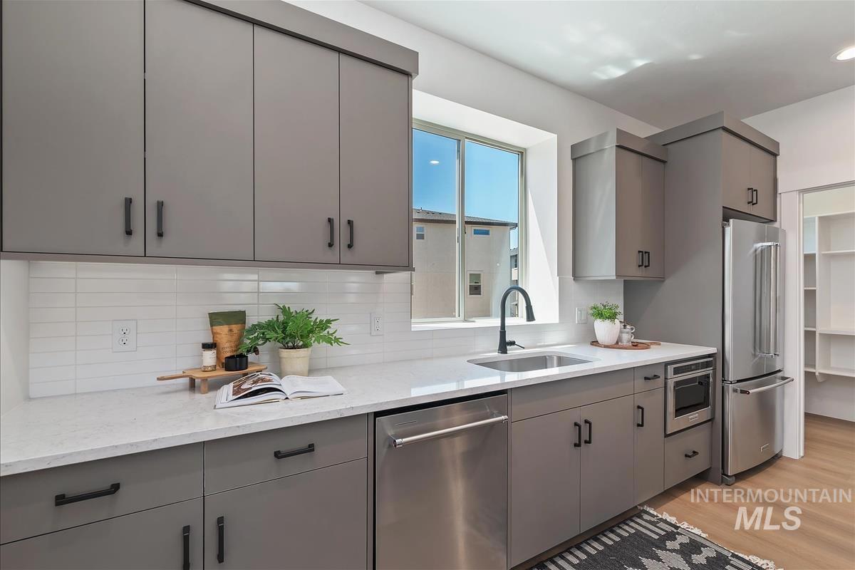 Designer Curated Boise Townhome with Table Rock Views | Prime Location & High-End Finishes! This sleek, stylish, and primely located — this modern Boise townhome combines contemporary design with urban convenience. Just minutes from downtown Boise, the Boise River, Boise State University, the Boise Airport and Micron, this 3-story home offers the best of city living with refined comfort. Featuring 3 bedrooms, 3.5 bathrooms, and a 2-car garage, this thoughtfully designed layout blends functionality with modern simplicity. Enjoy quartz countertops, premium KitchenAid appliances, and two upper-level en suite bedrooms that provide comfort and privacy. The main level includes a versatile bedroom and full bath—perfect for a quiet home office or private guest suite. With low-maintenance living and easy access to Boise’s vibrant amenities, this townhome is ideal for those who appreciate style, convenience, and quality.