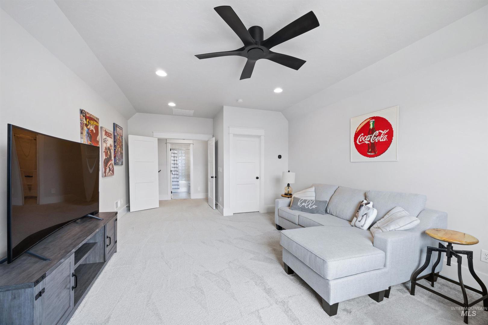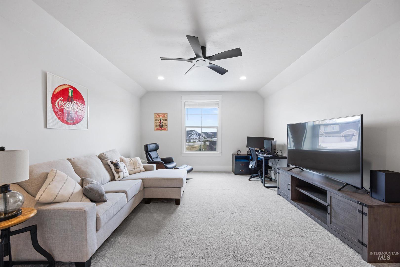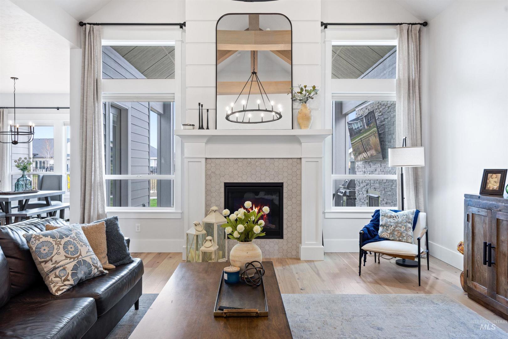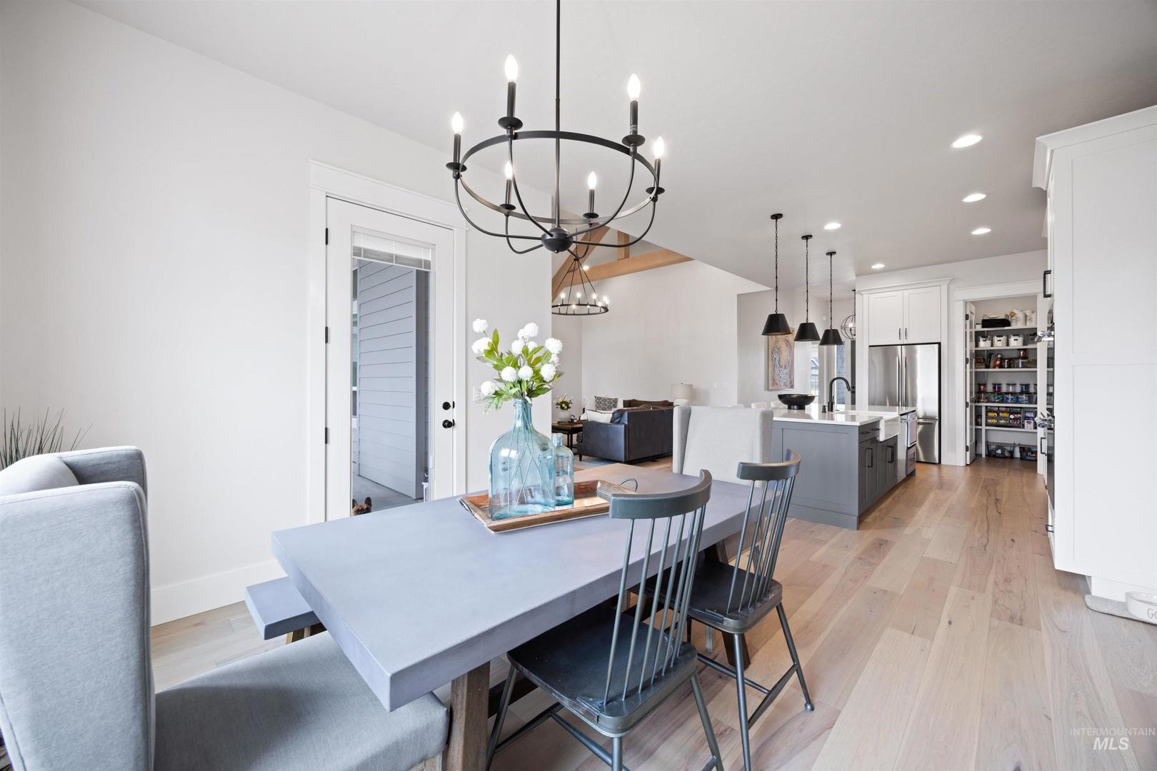 A James Clyde home from the original owners in the coveted Quartet community in Meridian. This home features a deluxe kitchen with all Thermador appliances, quartz counters, and dual ovens. Upstairs, enjoy a bonus room with 9ft ceilings, a full bathroom, and a second thermostat. Vaulted living room ceilings create an open atmosphere while insulated interior walls throughout the home promote a quiet and relaxing feel. Enjoy enhanced privacy on your covered patio with no immediate rear neighbors. BTVAI.