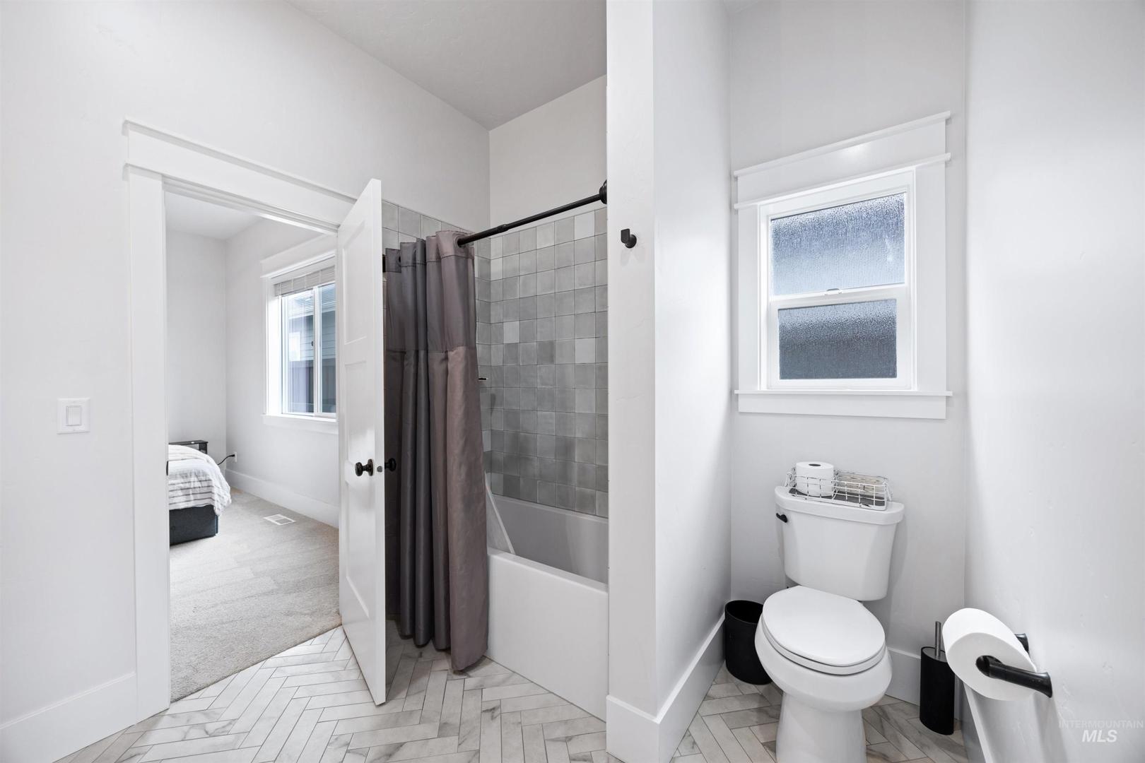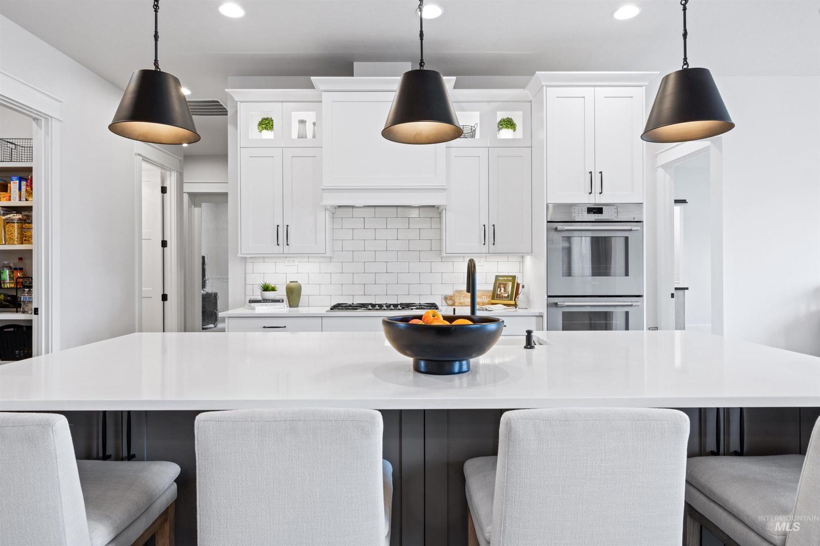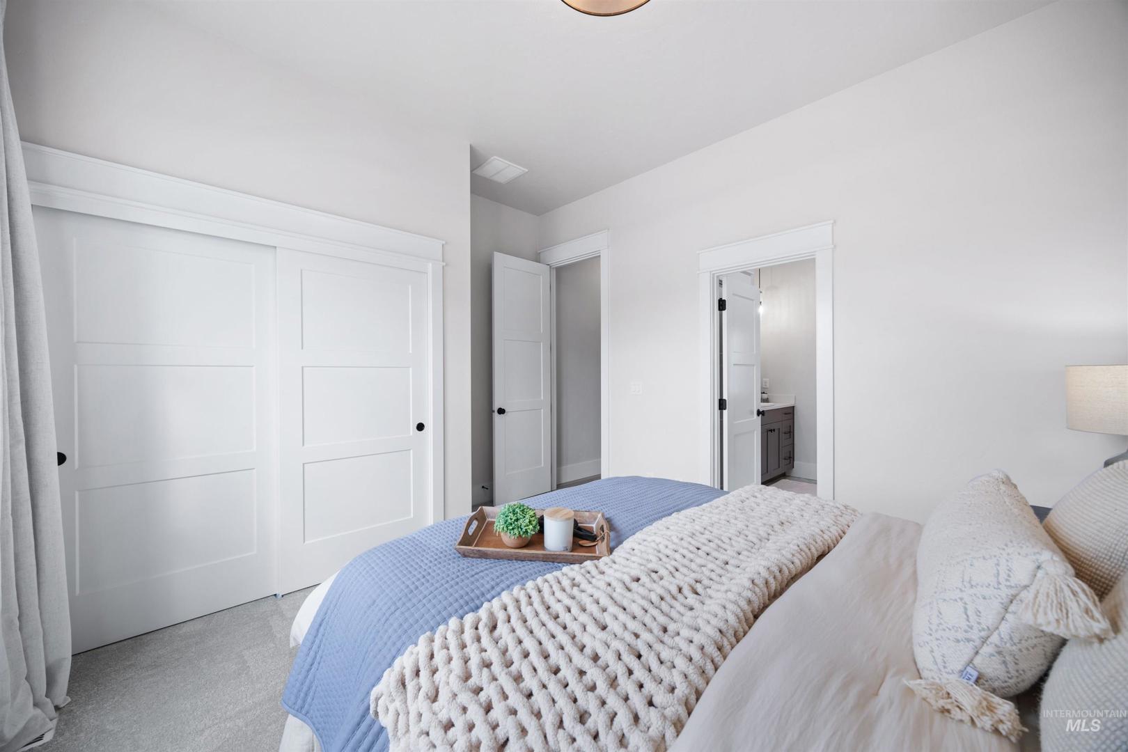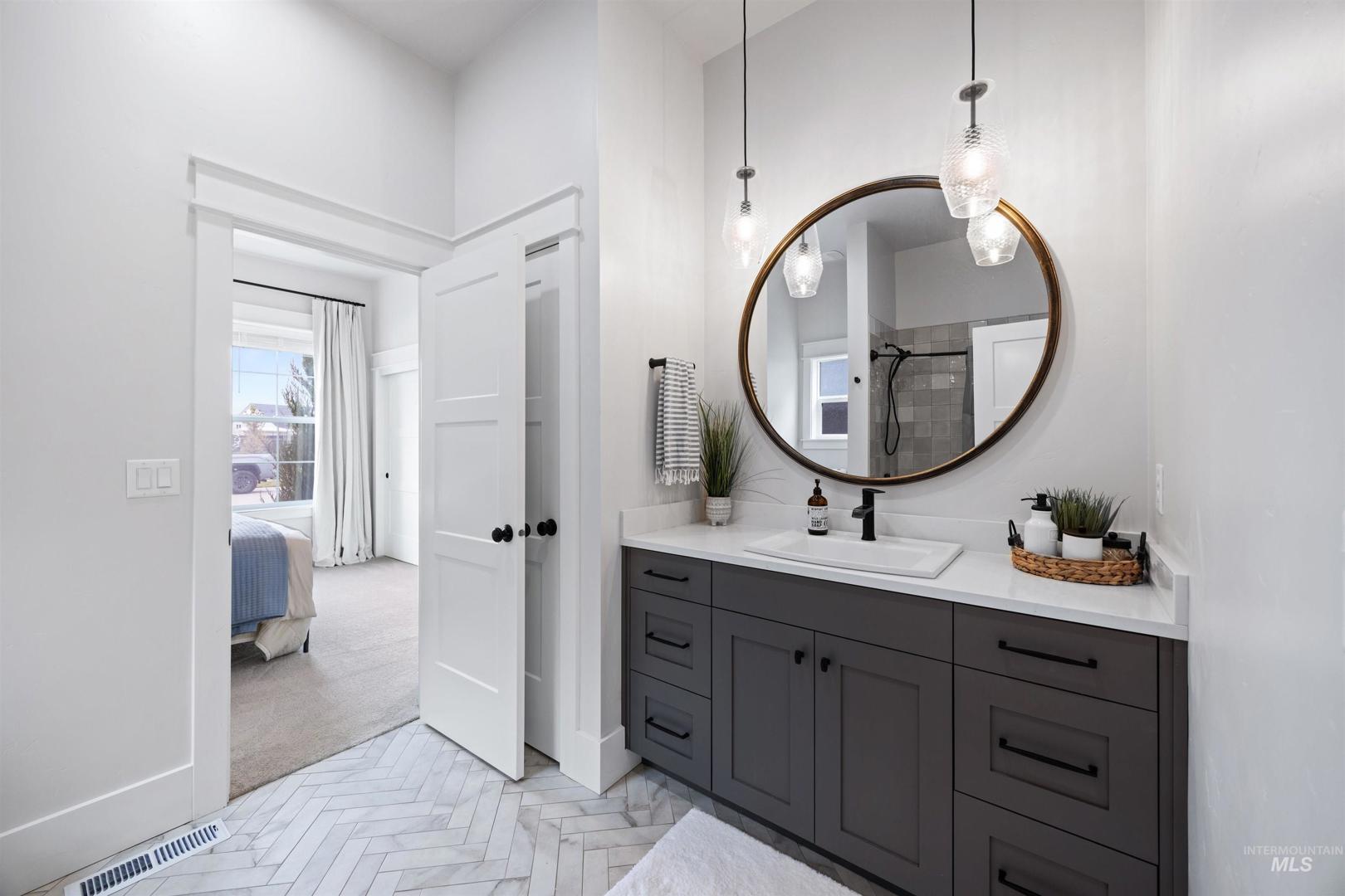 A James Clyde home from the original owners in the coveted Quartet community in Meridian. This home features a deluxe kitchen with all Thermador appliances, quartz counters, and dual ovens. Upstairs, enjoy a bonus room with 9ft ceilings, a full bathroom, and a second thermostat. Vaulted living room ceilings create an open atmosphere while insulated interior walls throughout the home promote a quiet and relaxing feel. Enjoy enhanced privacy on your covered patio with no immediate rear neighbors. BTVAI.