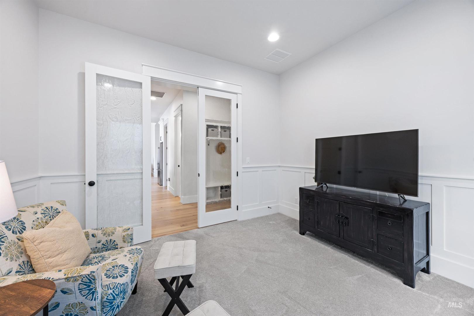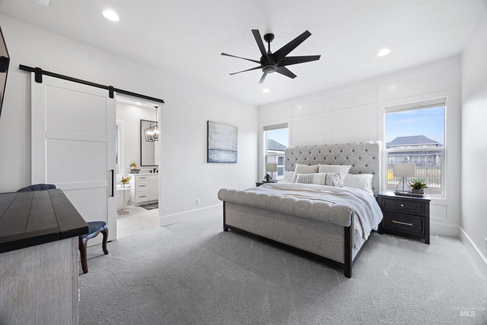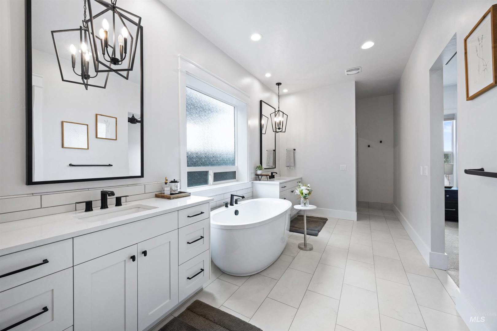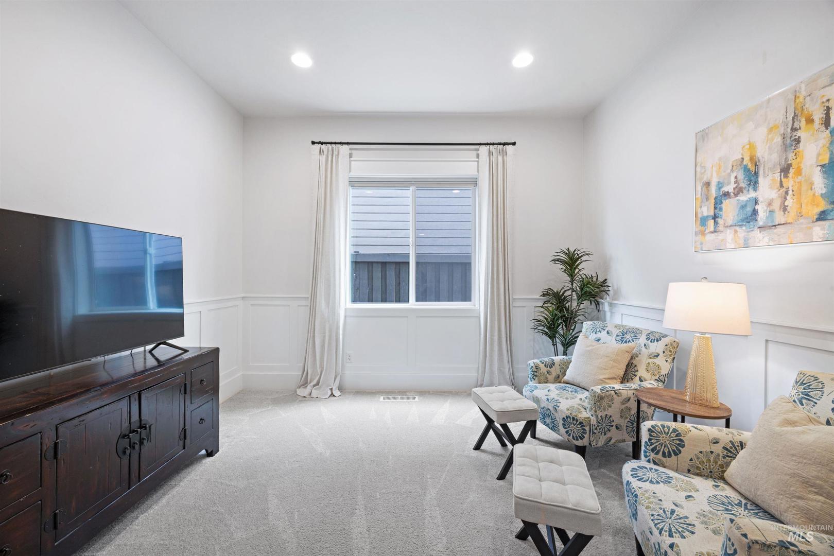 A James Clyde home from the original owners in the coveted Quartet community in Meridian. This home features a deluxe kitchen with all Thermador appliances, quartz counters, and dual ovens. Upstairs, enjoy a bonus room with 9ft ceilings, a full bathroom, and a second thermostat. Vaulted living room ceilings create an open atmosphere while insulated interior walls throughout the home promote a quiet and relaxing feel. Enjoy enhanced privacy on your covered patio with no immediate rear neighbors. BTVAI.