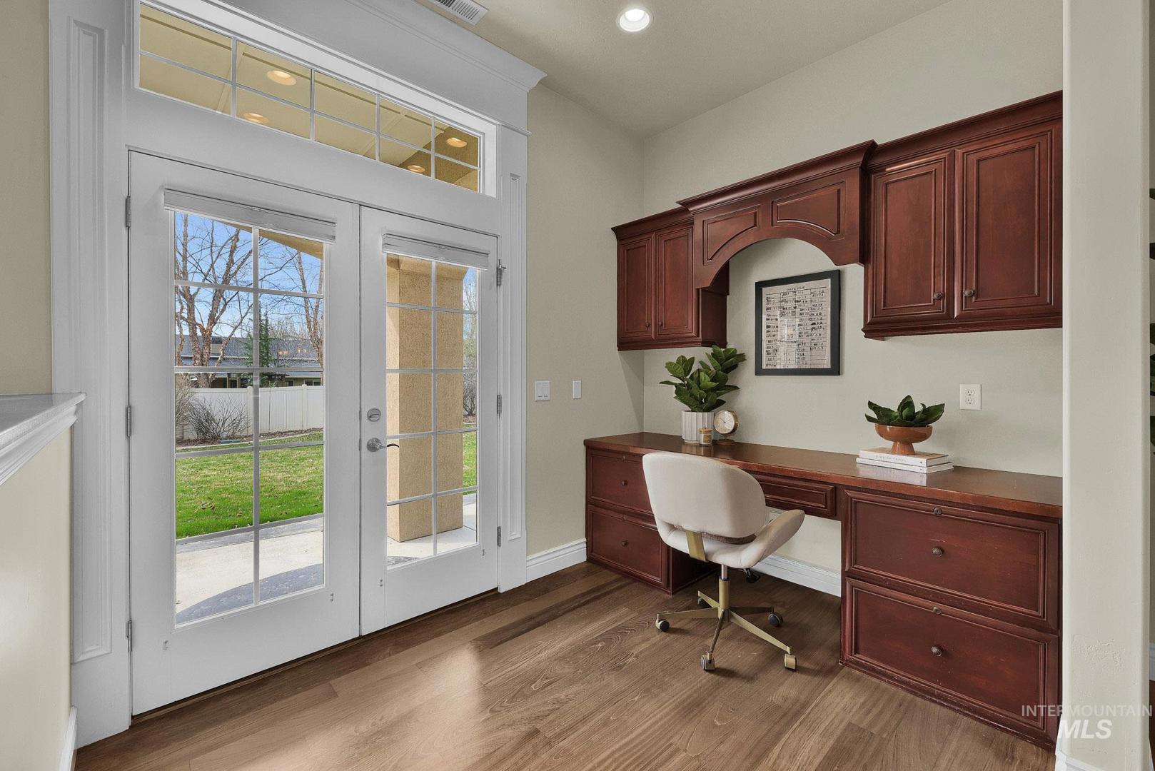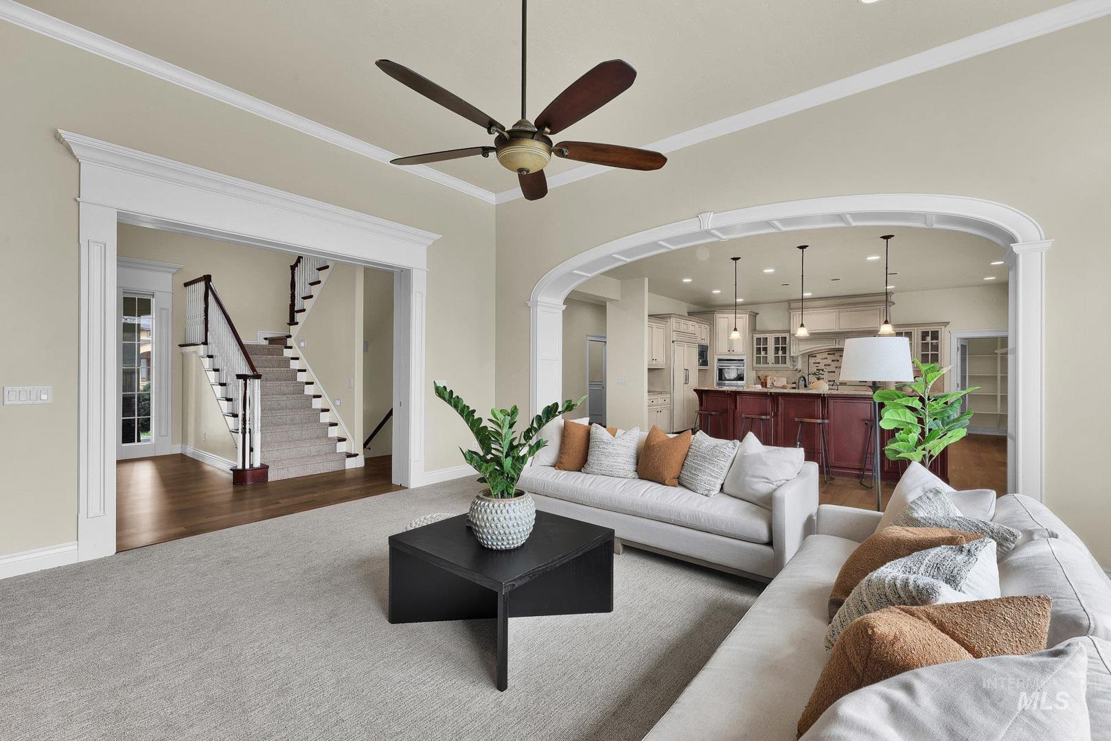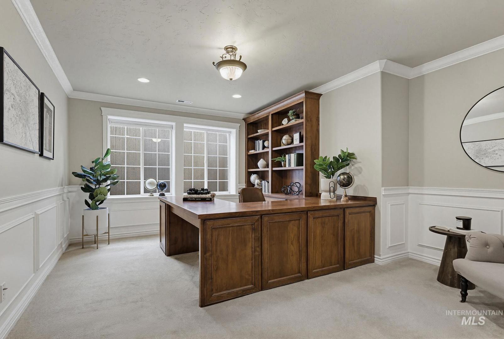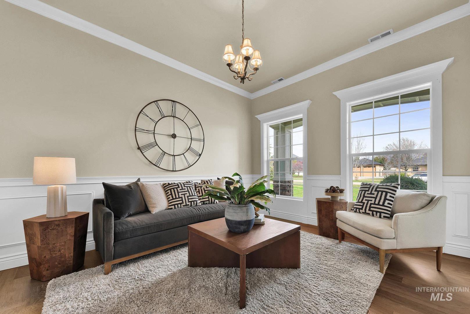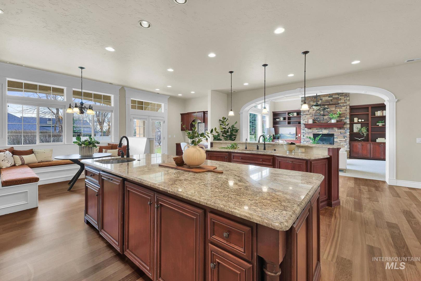 Welcome home to Covenant Hill - where space, craftsmanship, and lifestyle meet on nearly an acre in one of Eagle’s most sought-after neighborhoods. This custom 3-level home is designed for those who value both comfort and capability. The main-level primary suite offers a private retreat with dual vanities, dual walk-in closets, a walk-in shower, and a jetted tub. Thoughtfully designed for everyday living and entertaining, the gourmet kitchen features granite countertops, a large center island, built-in refrigerator, double ovens, Wolf appliances, dual dishwashers, and an oversized pantry. Throughout the home, you’ll find custom millwork, refinished Brazilian Cherry hardwood floors, new carpet, and fresh interior paint. The upper level includes two spacious bedrooms, each with en-suite bathrooms and walk-in closets, plus a versatile flex space. The main level features a formal dining room, casual eating nook, built-in workspace, an inviting living room with a floor-to-ceiling stone fireplace, an additional bedroom with attached bath, and a generously sized mudroom and utility space. Downstairs, the lower level expands your options with a large recreation area, kitchenette, full bathroom, dedicated gym space, theater room, craft room, and a fifth bedroom currently used as an office-plus abundant storage. And for all the extras: a 1,500+ sq ft garage with epoxy floors and an RV bay!