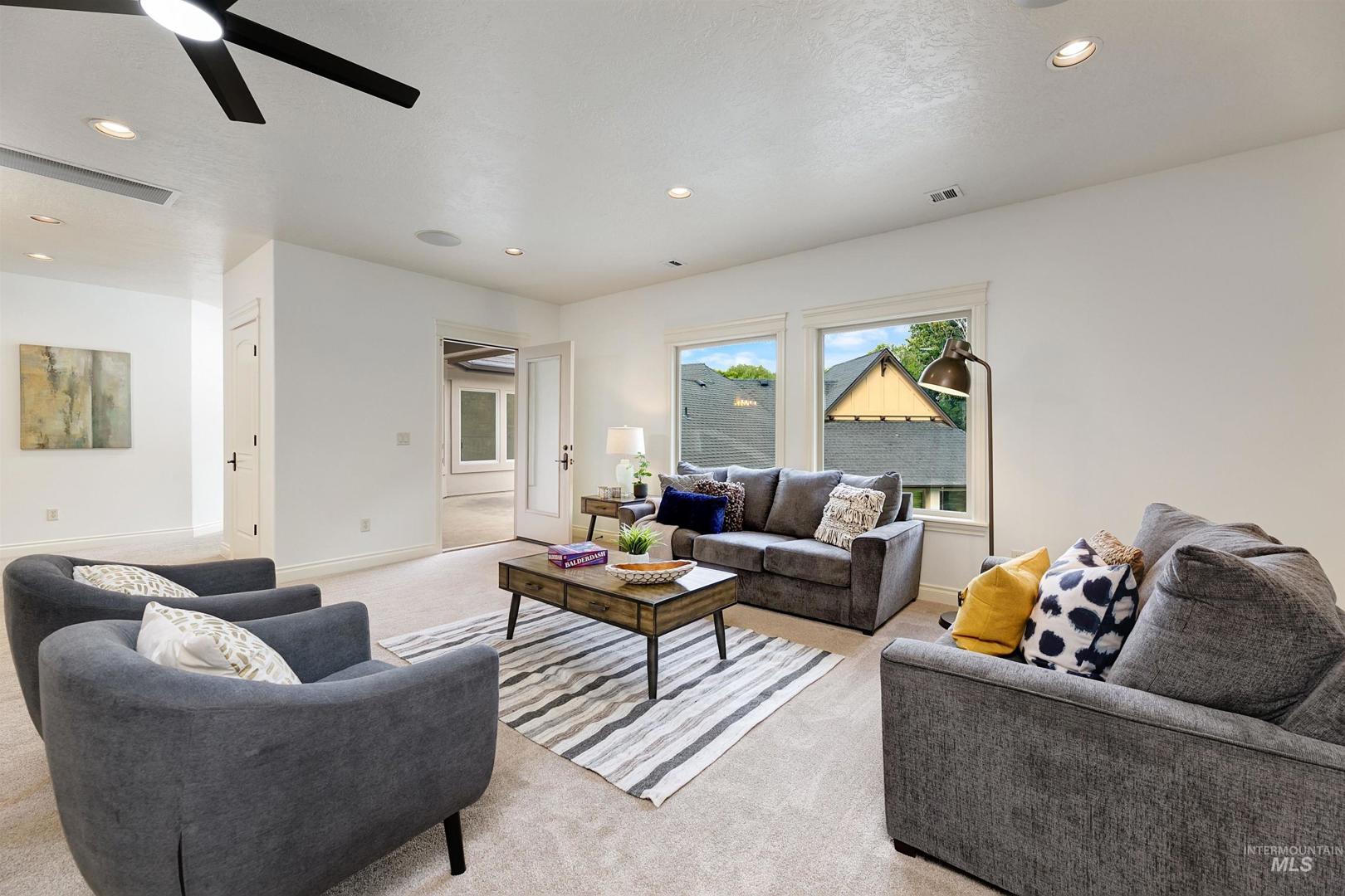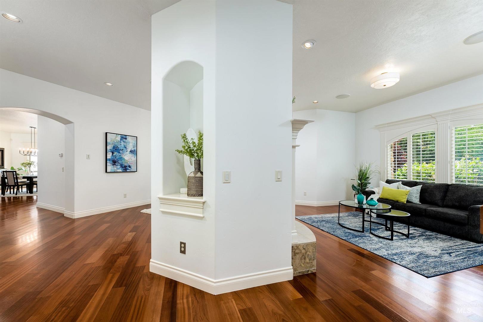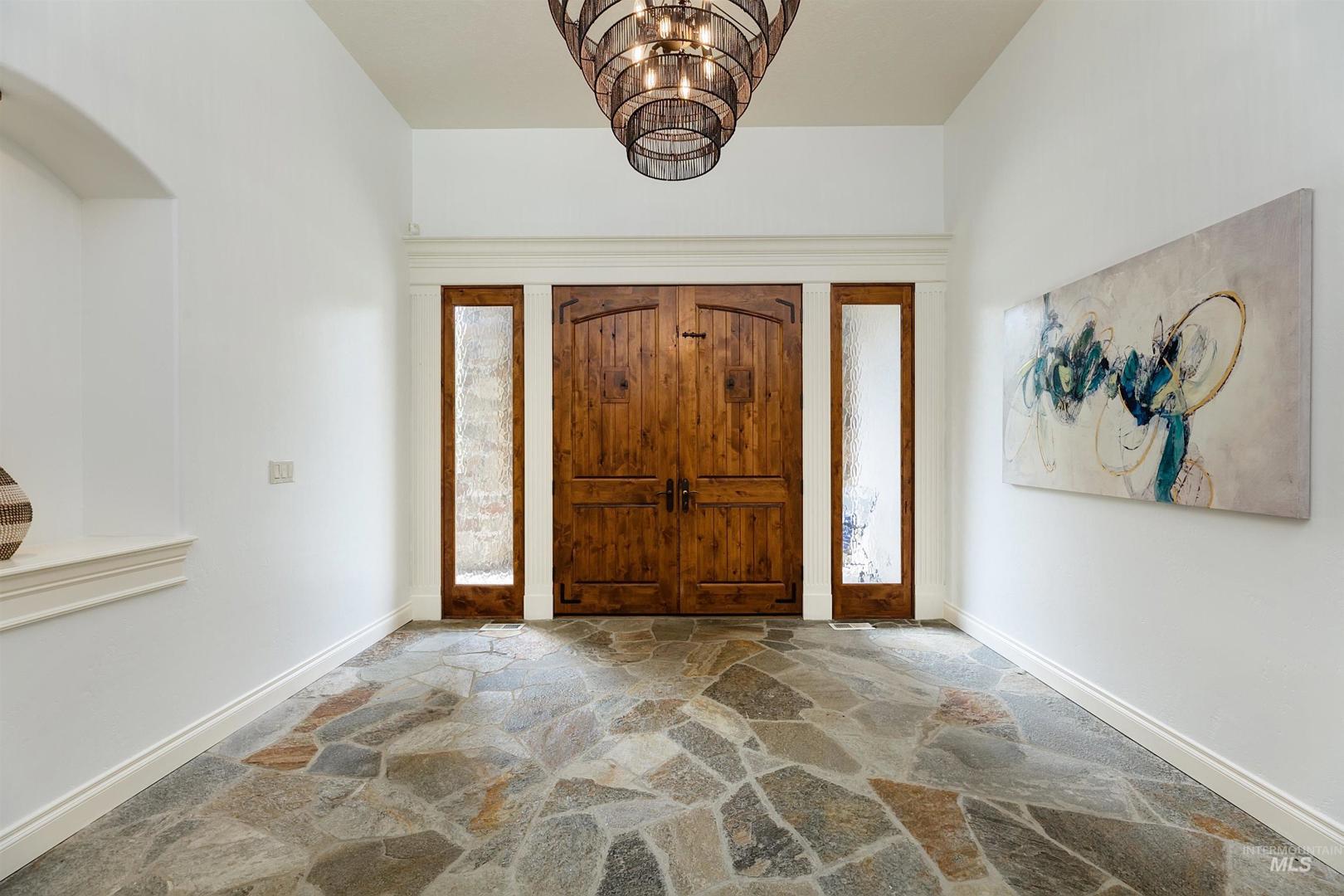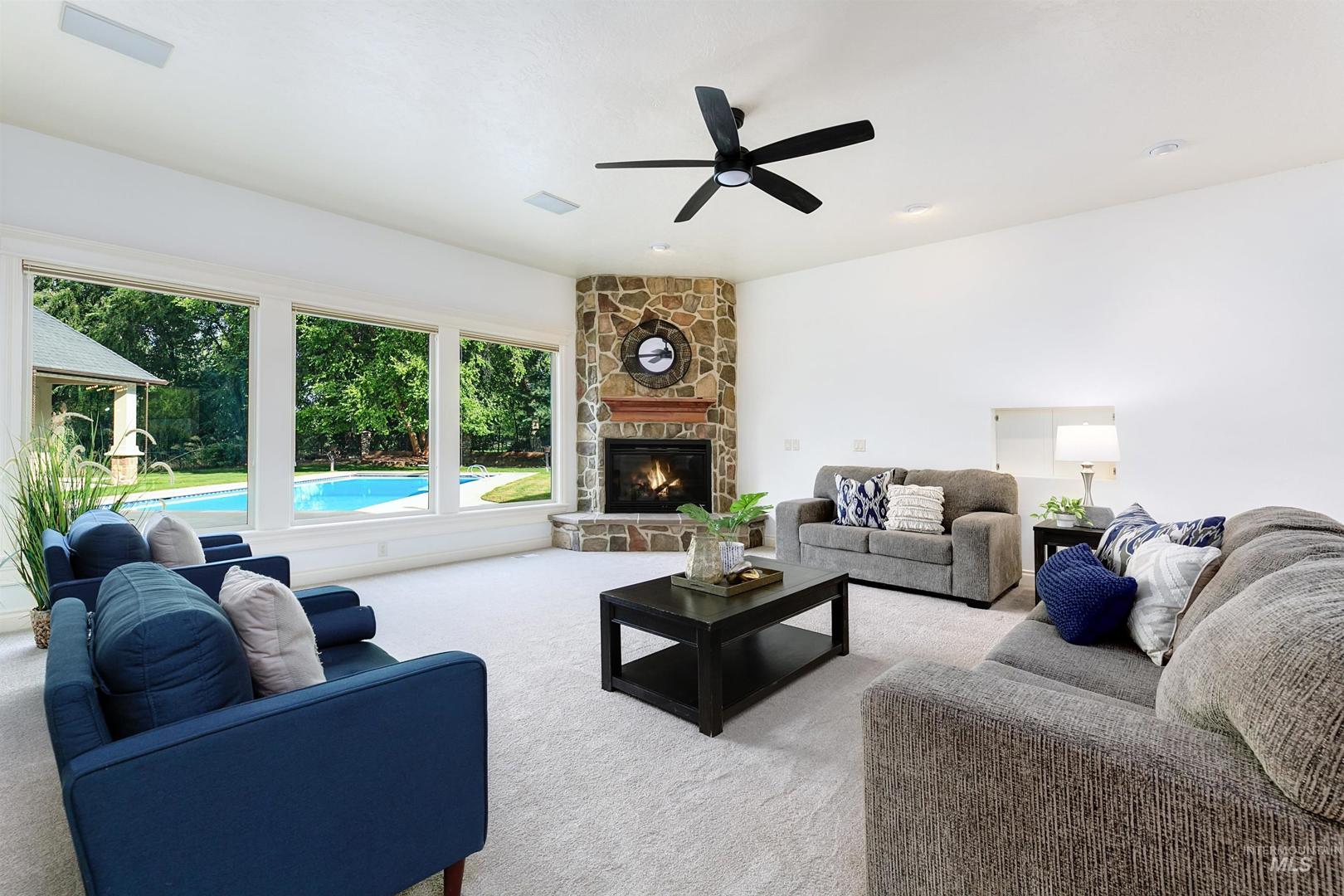 With its rare setting, expansive design, and irreplaceable construction quality, this home stands apart in today’s market. At the end of a quiet cul-de-sac, a 100% custom home built by Tradewinds offers privacy, sophistication, and timeless design. Situated on 0.68 acres, backing to a creek, the 6,228 SF home combines stately architecture with a one-of-a-kind floor plan designed for extraordinary living. A home of this caliber could not be reproduced at today’s construction costs. Step through the grand entry to soaring ceilings, cherry floors, distinctive geometry, and expansive windows. The main level offers elegant formal and casual living spaces anchored by three fireplaces, along with a kitchen featuring high-end appliances, new dual dishwashers, and custom amenities. California shutters, two staircases, and hard-to-replicate finishes elevate the experience. Thoughtful design includes a media room, workout room, office, two laundry areas, en suite bedrooms, and storage areas. The spacious primary suite is tucked away w/ direct access to the pool and an oversized walk-in closet. Outside, enjoy mature landscaping, a gated driveway, and multiple patios around the pool ready for outdoor entertaining. Only minutes to downtown Eagle and all schools.
