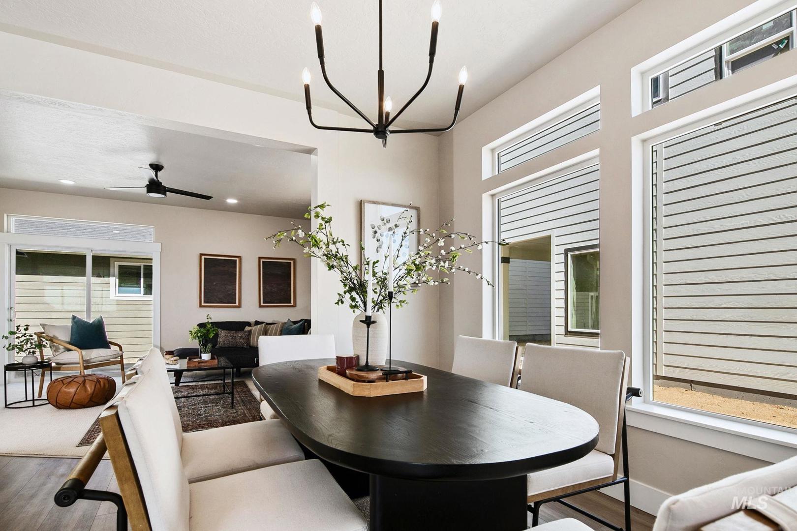 Brand new patio-style home in the up and coming Mayfield Springs community! This 3 bed, 2.5 bath home offers 1,688 sq ft with a functional open-concept layout, plus a second living space perfect for a home office or flex room. Upstairs features all bedrooms, including a private primary suite with walk-in closet and en-suite bath. Enjoy low-maintenance living with a detached 2-car garage and an east-facing orientation for beautiful morning light. Located just 15 minutes from Micron in Boise, Mayfield Springs offers incredible amenities including a community pool, clubhouse, pickleball and basketball courts, soccer fields, future charter school, and miles of walking paths. (Landscaping and fencing will be installed prior to closing)