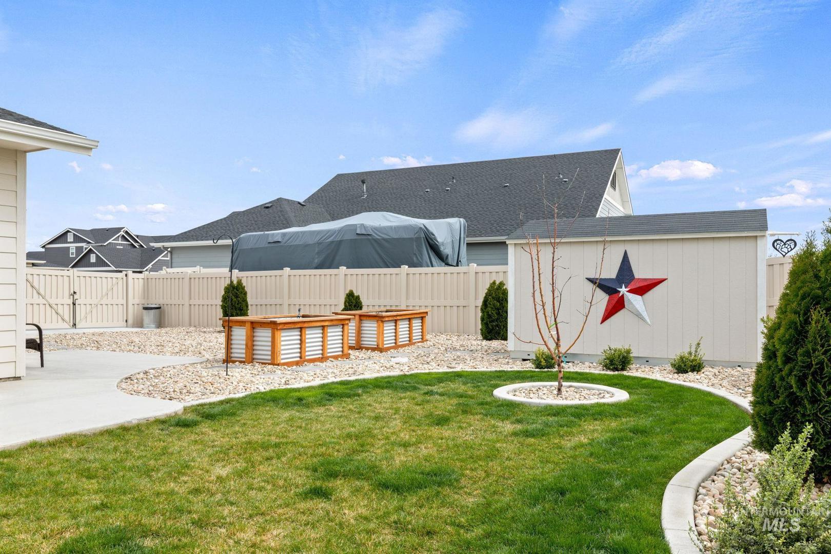 Beautifully upgraded home on a premium corner lot with no rear neighbors! This home offers a thoughtfully designed living space and exceptional curb appeal. Inside, you will find a bright open layout featuring a stunning kitchen with upgraded appliances, a large island, a large pantry, and high end custom shutters throughout. The spacious living area flows seamlessly for everyday living and entertaining. Step outside to a fully landscaped backyard with extended patio, custom concrete curbing, and plenty of space to relax or host. The large 8x12 shed adds extra storage, while the rare RV parking and 3-car garage provide room for all your toys. Enjoy added privacy and direct access to neighborhood walking paths. Located in Middleton’s only community offering resort-style amenities including a pool, pickleball courts, and multiple playgrounds. This home truly has been meticulously cared for. Seriously, move-in ready.