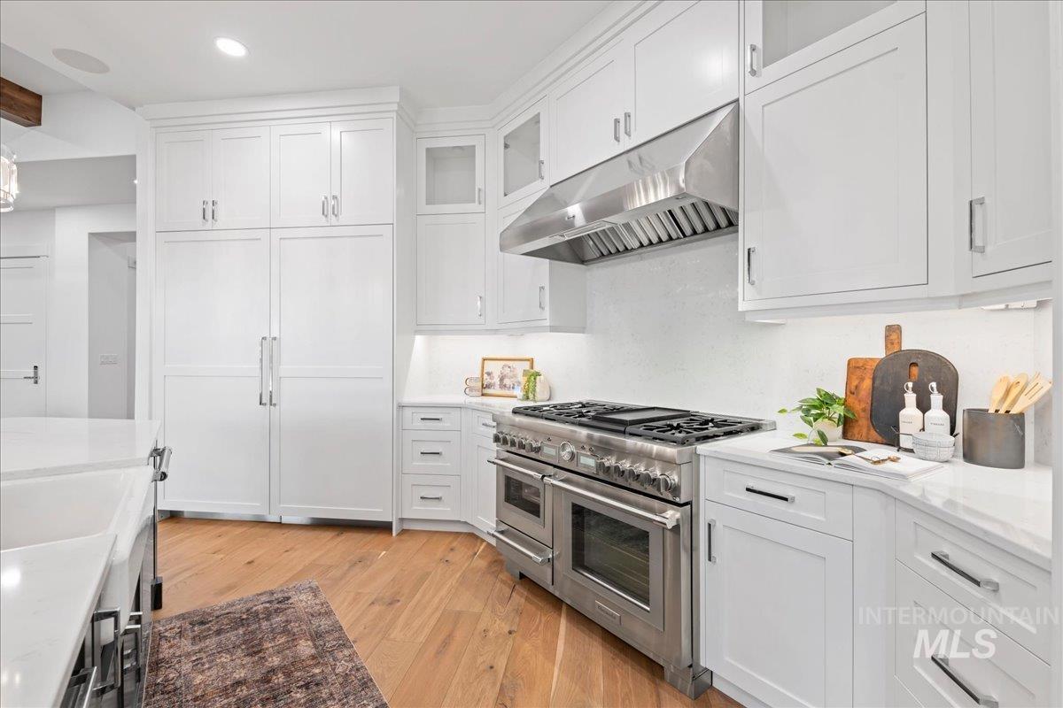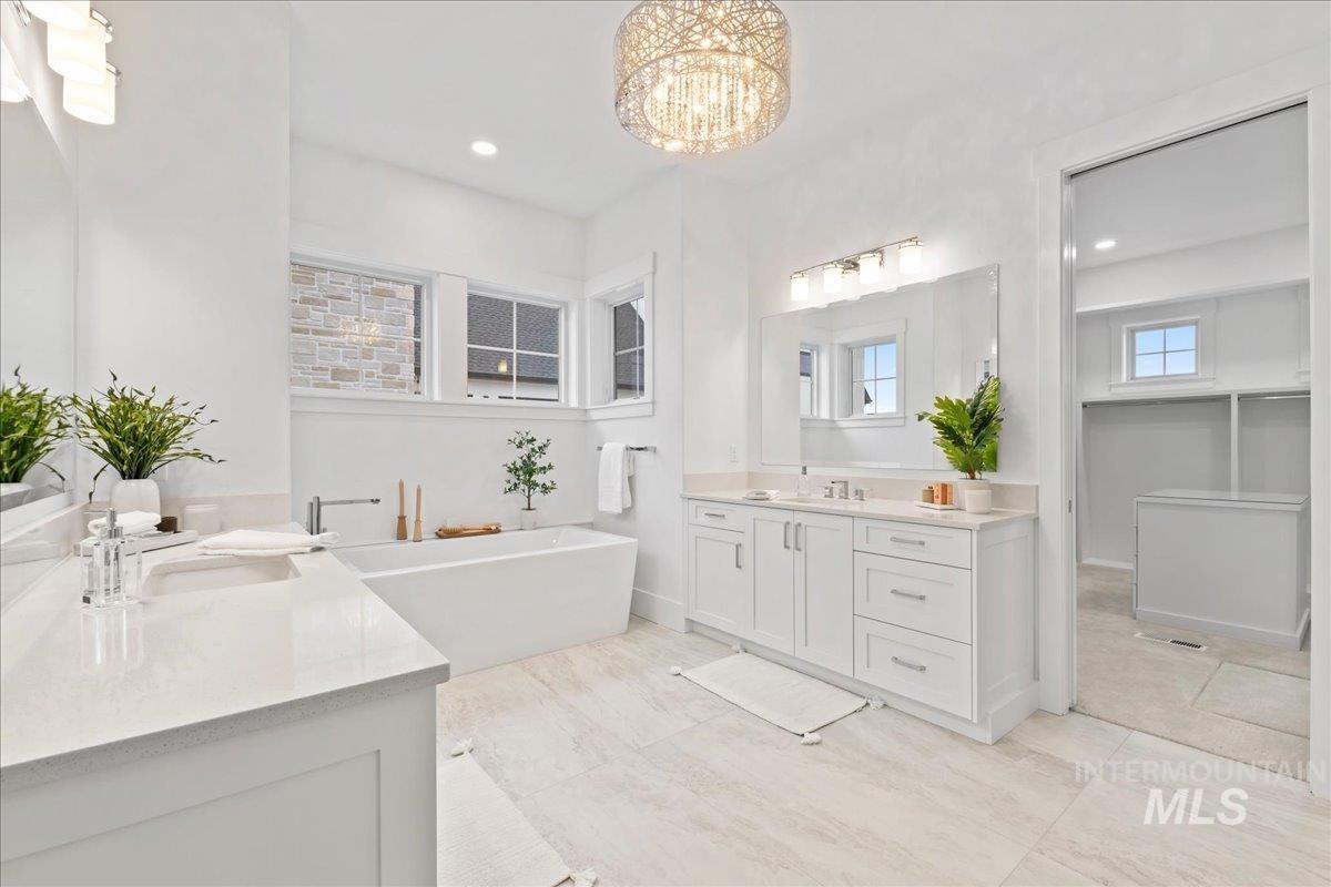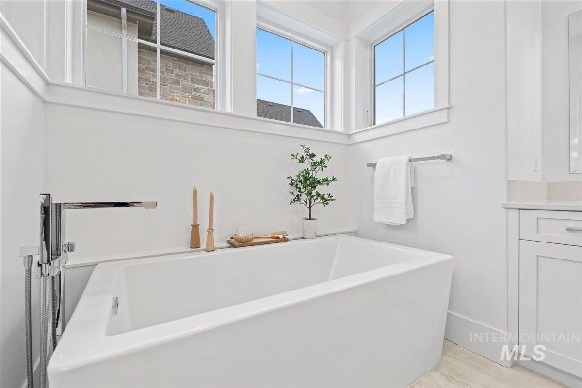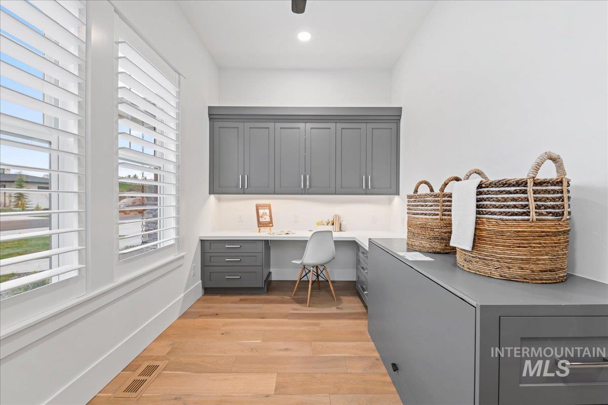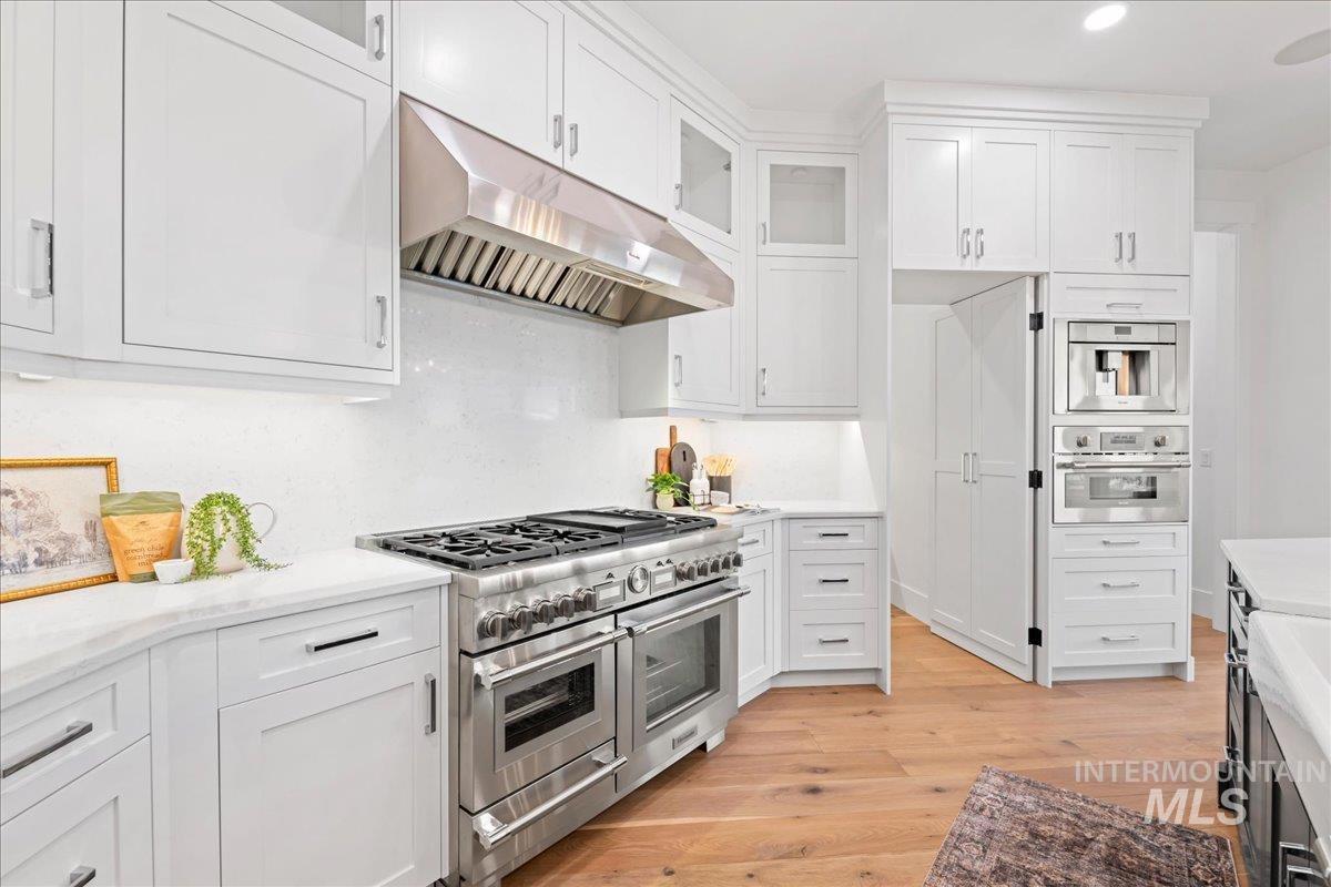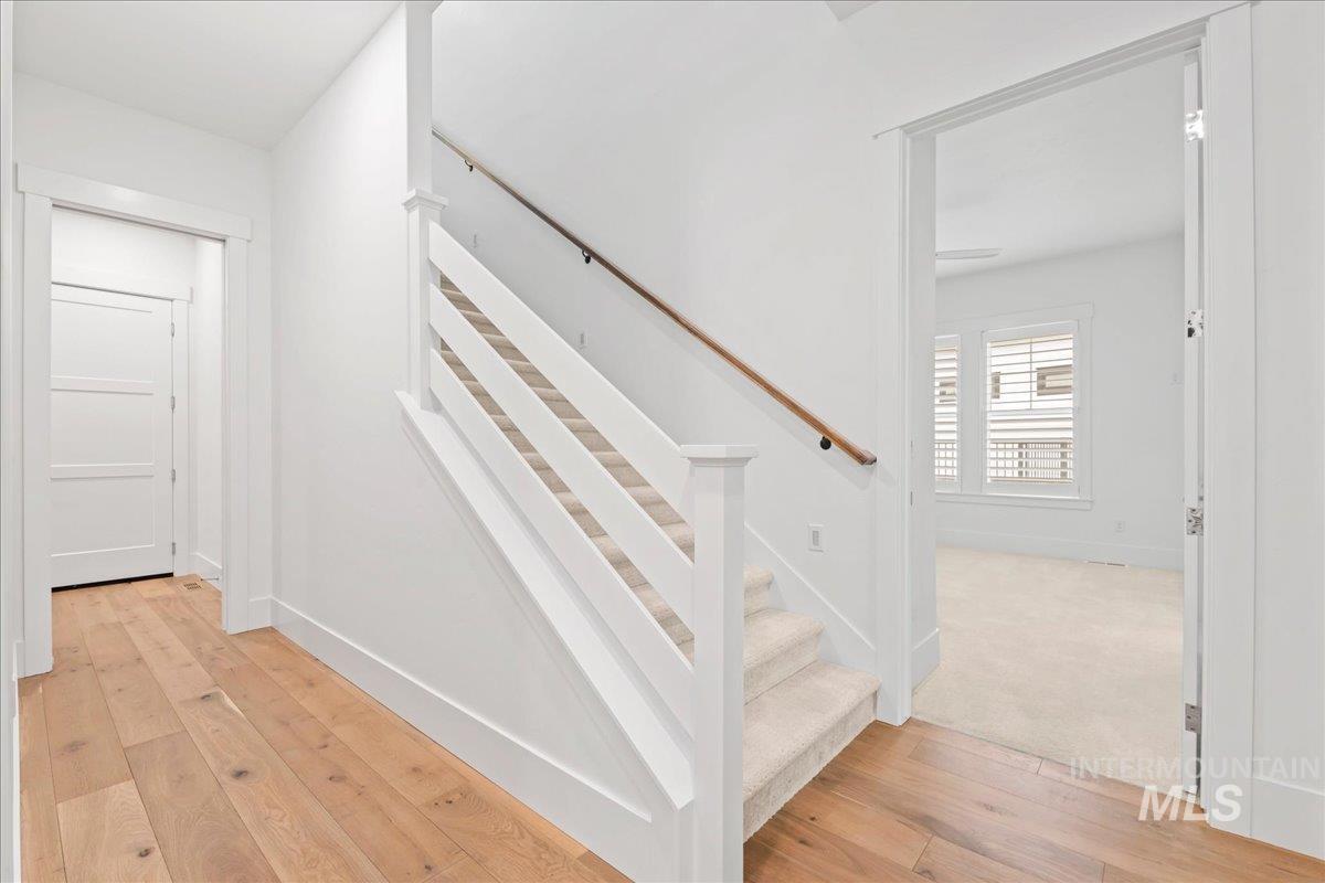Premier waterfront living in the highly sought-after Creighton Woods. Ideally located in the heart of the Eagle Island corridor, this custom-built residence blends timeless design, refined finishes, and peaceful pond views. Rich hardwood floors carry through the open-concept main living area, where expansive windows fill the home with natural light and frame the serene setting. The chef’s kitchen is outfitted with high-end Thermador appliances, including a professional 48-inch range, built-in speed oven, coffee maker, and quartz countertops. The thoughtfully designed layout features a luxurious primary suite with built-in shelving and a cozy reading nook overlooking the water, complemented by a spa-inspired bath with oversized tile, dual vanities, and a meticulously designed walk-in closet. Two additional ensuite bedrooms, an office, and a flexible laundry/craft room complete the main level. Upstairs offers an oversized bonus room and dedicated gym space, creating the ideal retreat for relaxation or recreation. Outdoor living shines with a built-in BBQ, firepit area, and an inviting waterfront setting designed for effortless entertaining. Multiple access points to Eagle Rd & Chinden - great for dining and shopping!