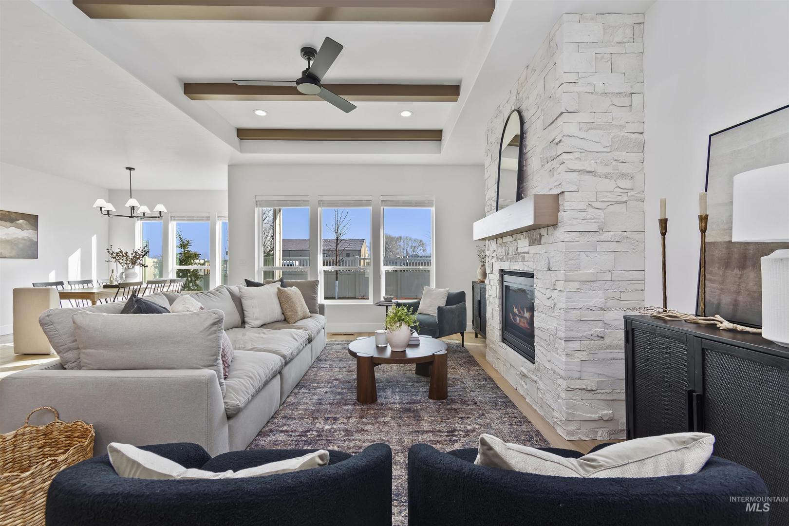 Welcome to the beautifully designed HAZEL floorplan by Tresidio Homes, located in the desirable Autumn Creek community in Nampa. This thoughtfully crafted single level home offers 3 bed, 2 bath and 1901 sq ft of functional and stylish living space. The open concept layout features a spacious great room that flows seamlessly into the dining area and kitchen, perfect for both everyday living and entertaining. The kitchen is designed with convenience in mind, offering ample counter space, modern finishes, and a central island. The private primary is tucked away for added privacy and comfort. Two additional bedrooms are located near the front of the home. Enjoy outdoor living with a covered patio, ideal for relaxing or hosting gatherings. The 2 car garage provides plenty of room for vehicles & storage. Located in Autumn Creek, this home offers easy access to nearby amenities, schools, parks & commuter routes. Don`t miss the opportunity to own this beautifully built home by Tresidio Homes - Where quality craftsmanship meets modern design.