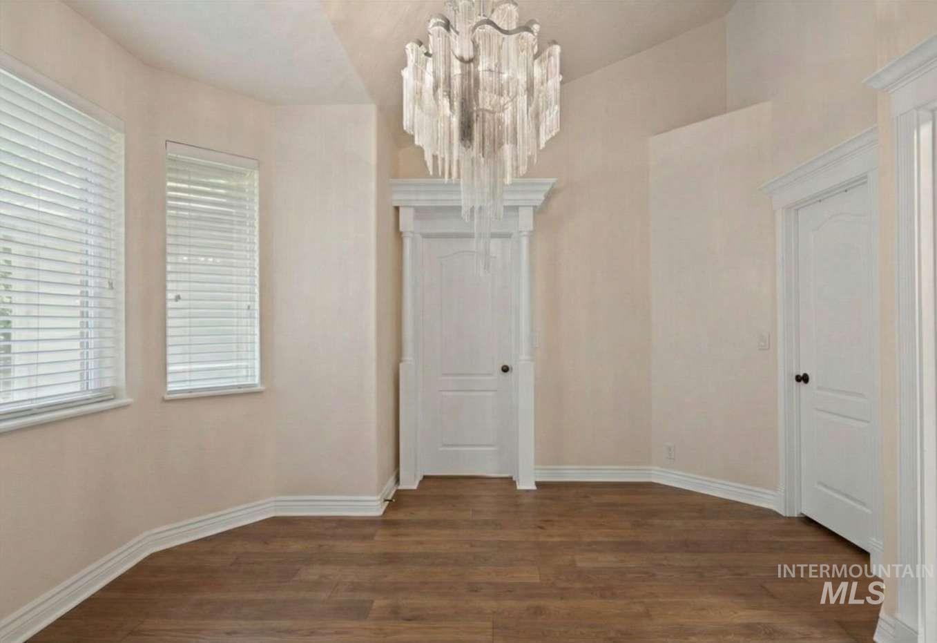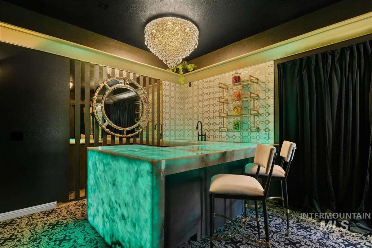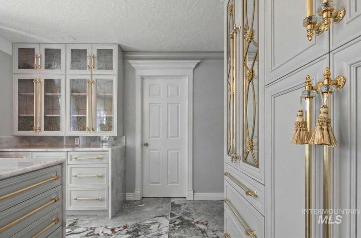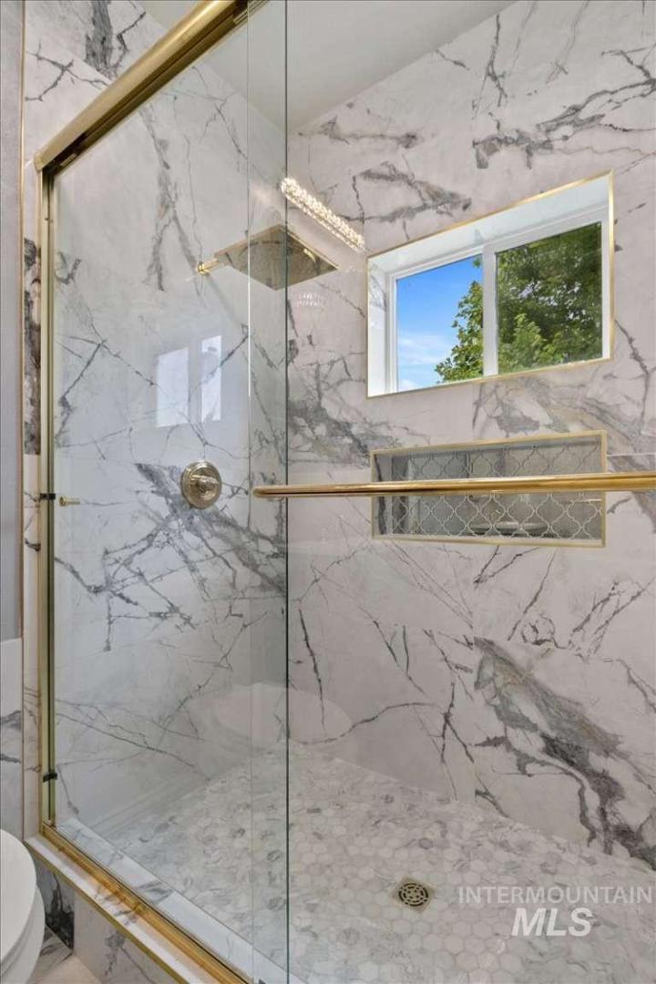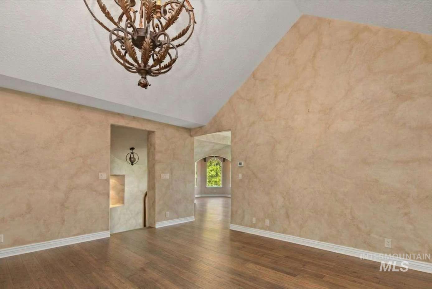 Nothing in the Treasure Valley compares. Wind down a cherry blossom-lined private drive to this award-winning-designed luxury compound. The 6,200 sf residence features a sunken lattice-weave marble living room, 2,000 lb European marble fireplace, crystal chandeliers throughout, and zero carpet, wide-plank hardwood in every room. Two primary wing suites each offer a fireplace, 2-person jet tub & dedicated closet. Building 2: theater room, 9-car climate-controlled garage, private gym, infrared & steam sauna, grand loft & library. Building 3: 48x48 insulated warehouse, dual 50-amp RV bays, 2-stall horse barn & finished office with fireplace and chandelier. Outside: stamped concrete terrace, outdoor jacuzzi, wood-burning gazebo & 3 acres of private pasture. Vacant and move-in ready.