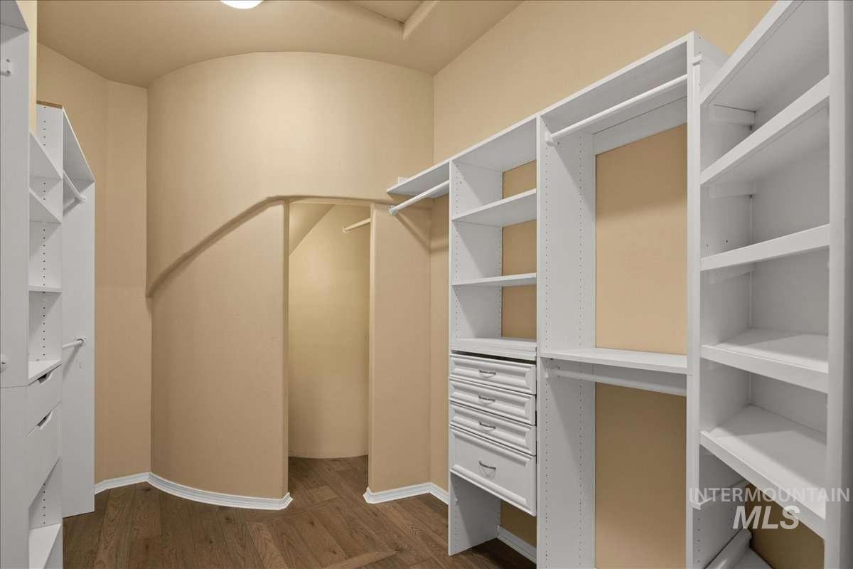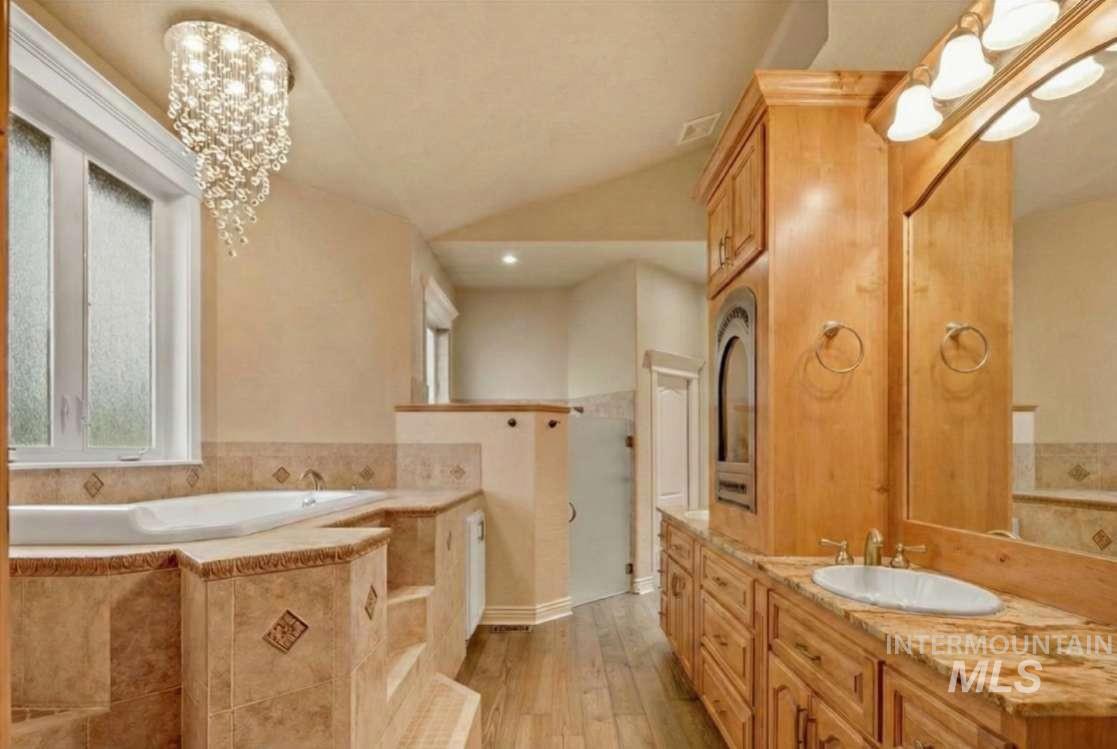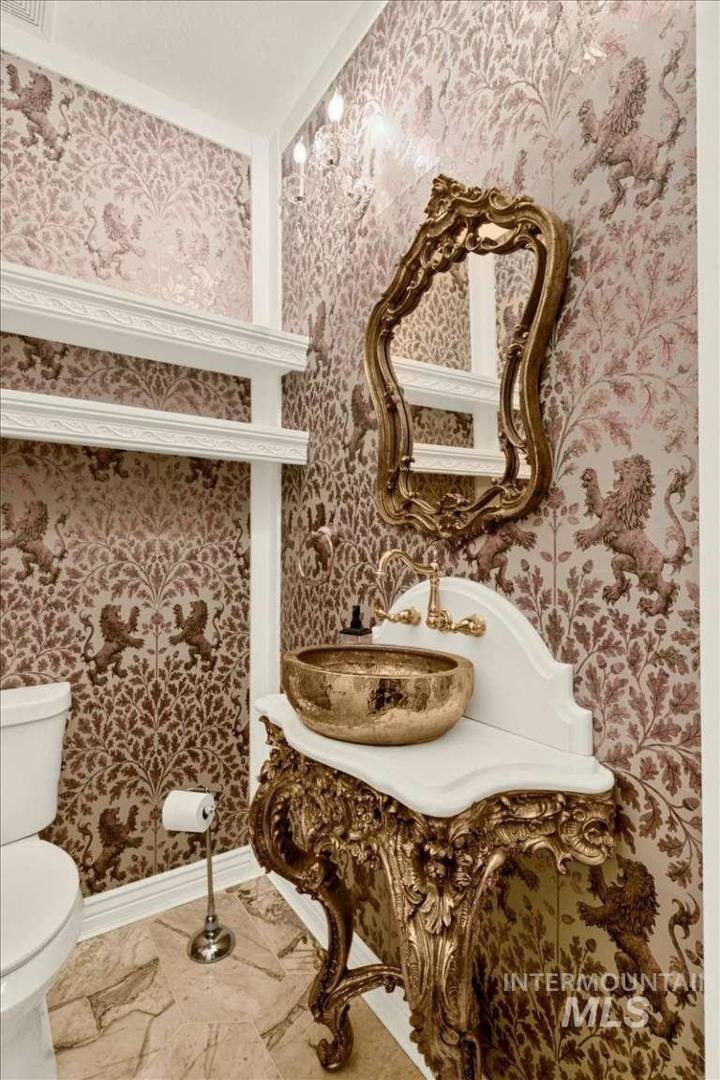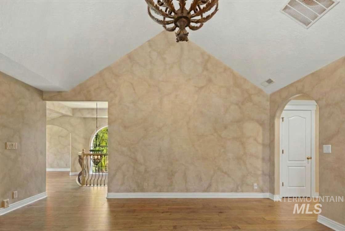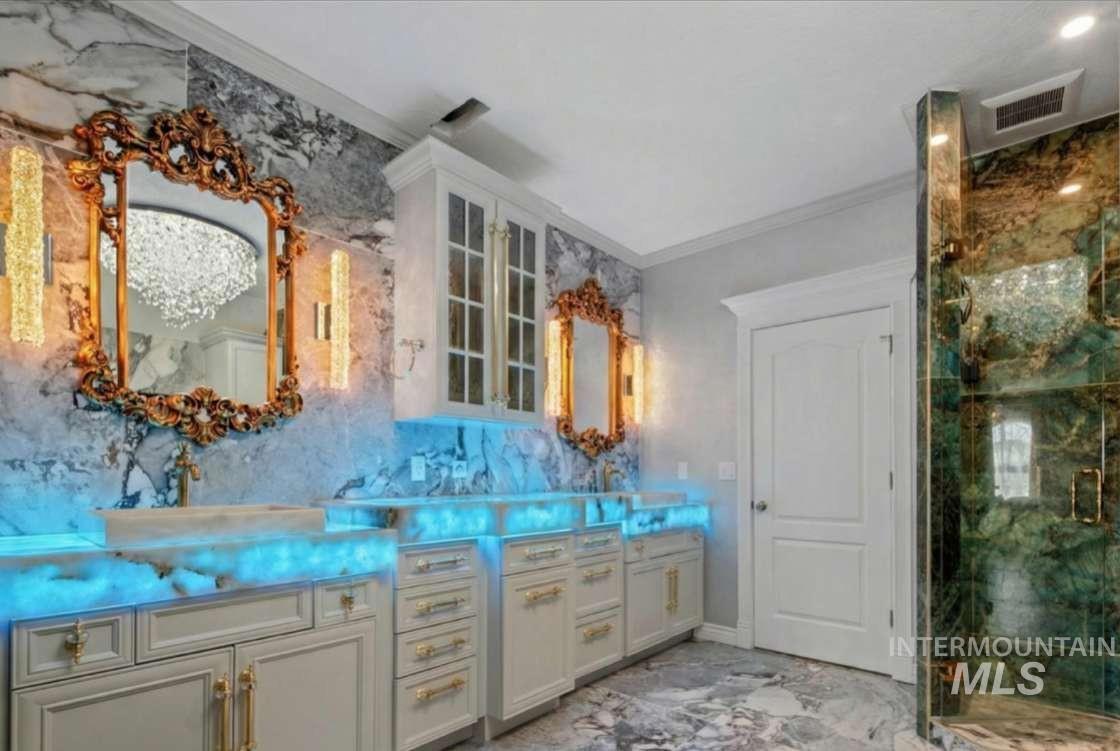 Nothing in the Treasure Valley compares. Wind down a cherry blossom-lined private drive to this award-winning-designed luxury compound. The 6,200 sf residence features a sunken lattice-weave marble living room, 2,000 lb European marble fireplace, crystal chandeliers throughout, and zero carpet, wide-plank hardwood in every room. Two primary wing suites each offer a fireplace, 2-person jet tub & dedicated closet. Building 2: theater room, 9-car climate-controlled garage, private gym, infrared & steam sauna, grand loft & library. Building 3: 48x48 insulated warehouse, dual 50-amp RV bays, 2-stall horse barn & finished office with fireplace and chandelier. Outside: stamped concrete terrace, outdoor jacuzzi, wood-burning gazebo & 3 acres of private pasture. Vacant and move-in ready.