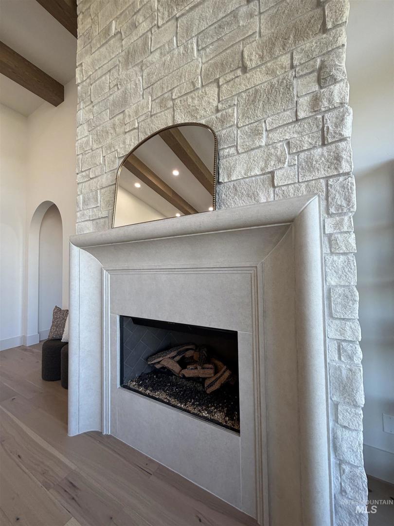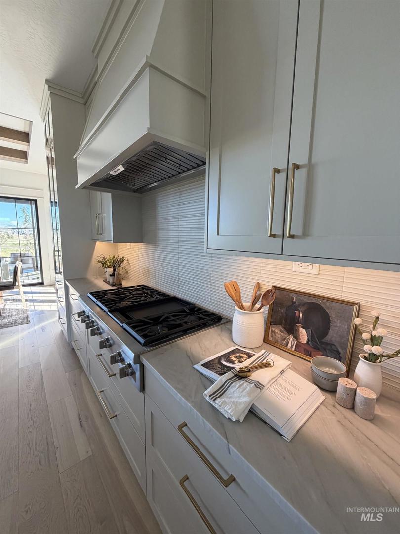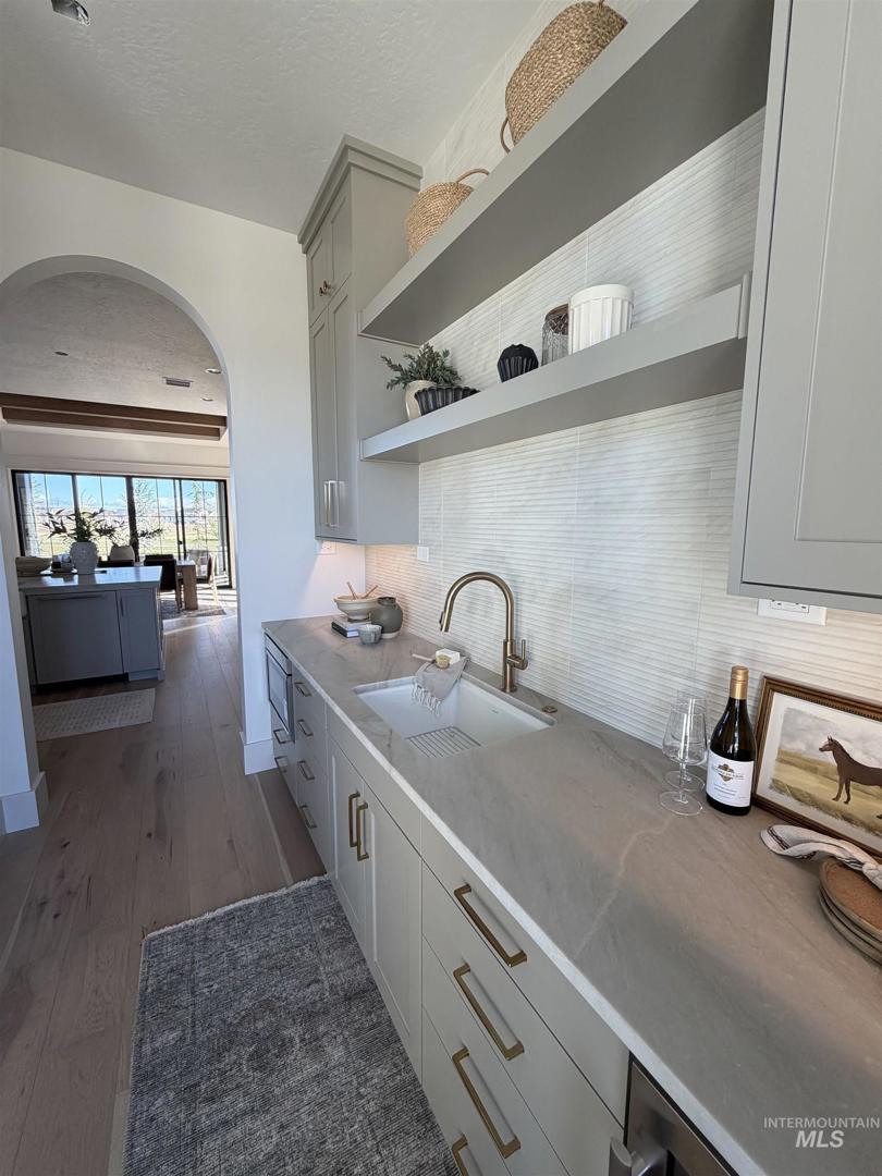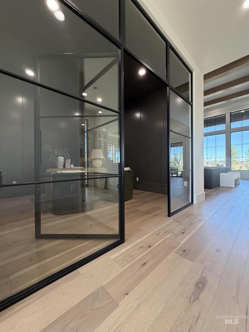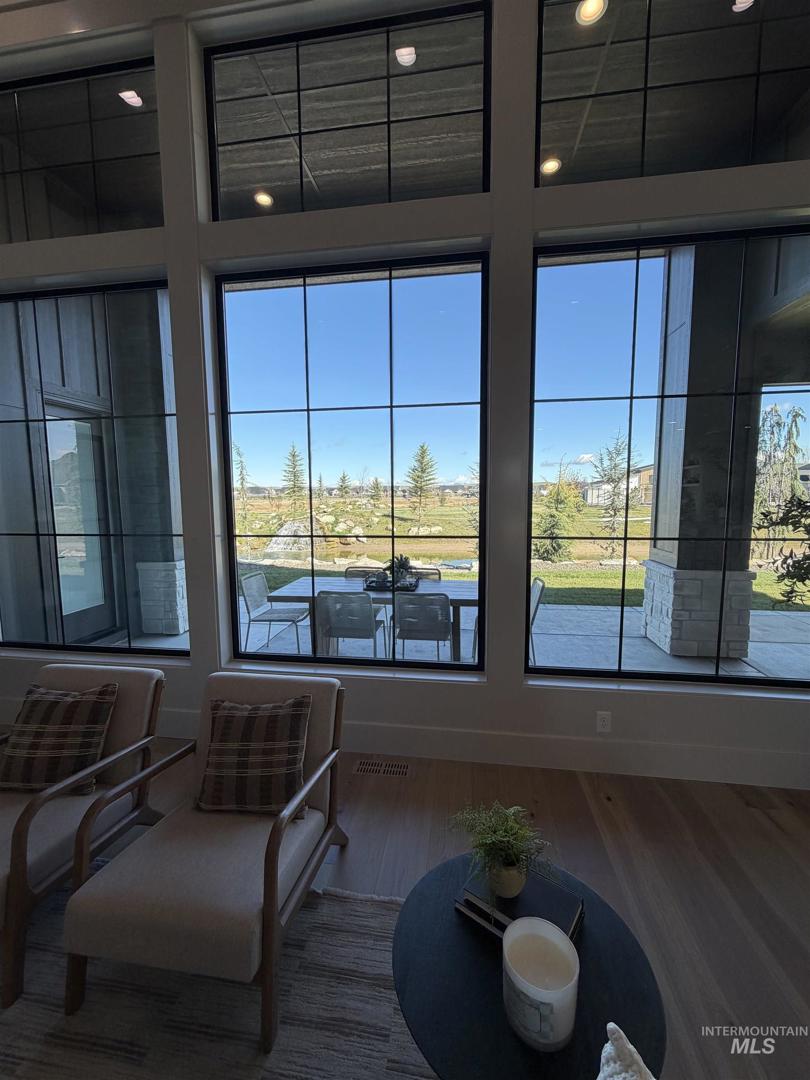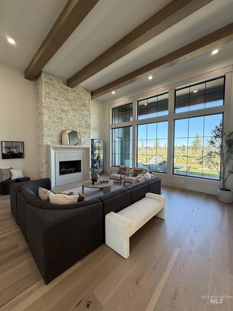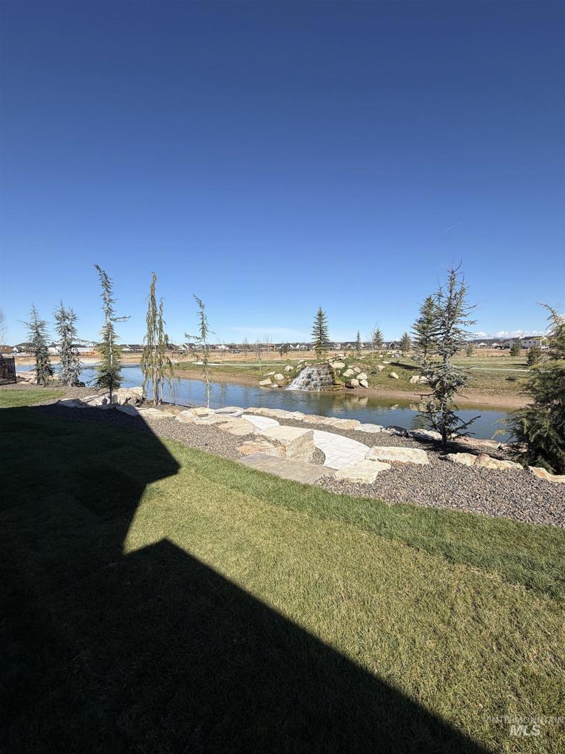Welcome to an extraordinary waterfront estate where luxury, design, & lifestyle converge in one breathtaking setting. Perfectly positioned along a serene pond with cascading waterfalls, this residence offers a rare blend of architectural sophistication. From the moment you enter, you’re greeted by a dramatic open-to-above foyer highlighted by a stunning floating staircase—an unforgettable first impression that sets the tone for the entire home. A striking glass-walled office with full glass front and doors creates a modern, light-filled workspace on the main level. The heart of the home is a true chef’s kitchen, featuring a grand center island, top-of-the-line appliances, double ovens, built-in range, and an impressive butler’s pantry complete with wine refrigeration & custom cabinetry. Extensive engineered hardwood flooring flows throughout, enhancing the home’s warmth & elegance. Designed to capture the beauty of its surroundings, the living room, kitchen, & luxurious primary suite all overlook the tranquil waterfront & cascading waterfalls—creating a seamless connection between indoor & outdoor living. The primary suite is a private retreat, complete with a stunning stone fireplace, dual vanities, dedicated makeup station, heated tile floors, & a spa-inspired walk-in shower wrapped in full tile. Step outside to your own personal oasis where extensive landscaping, massive
