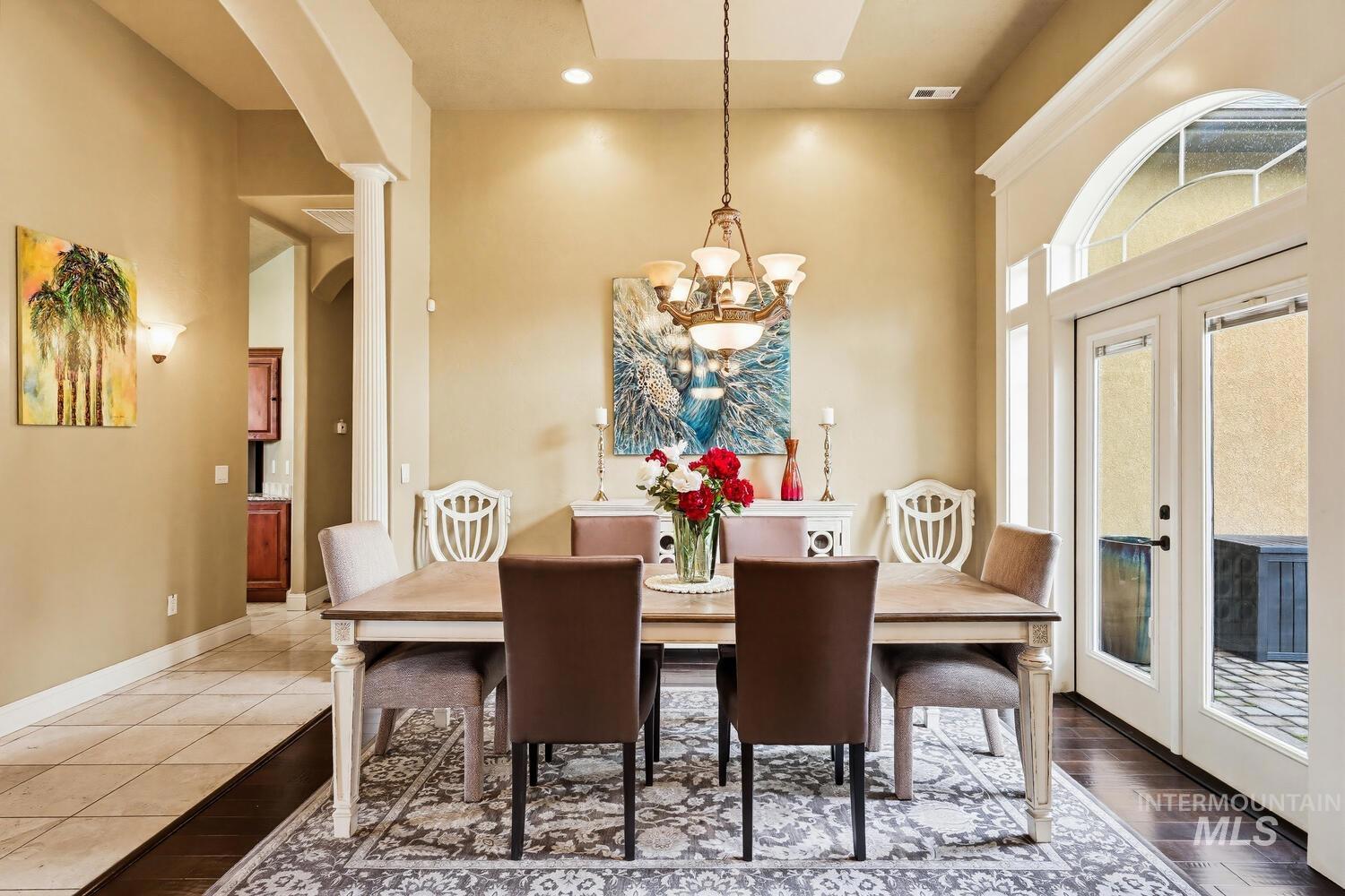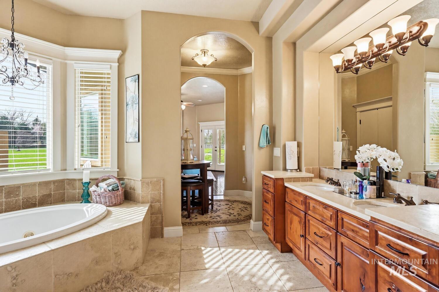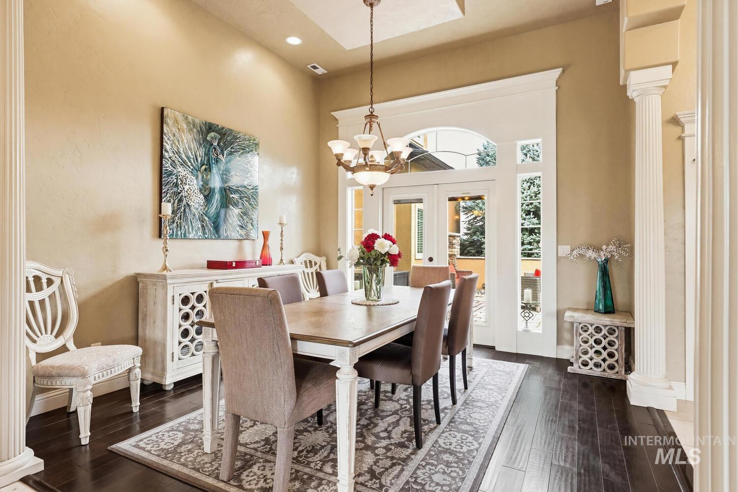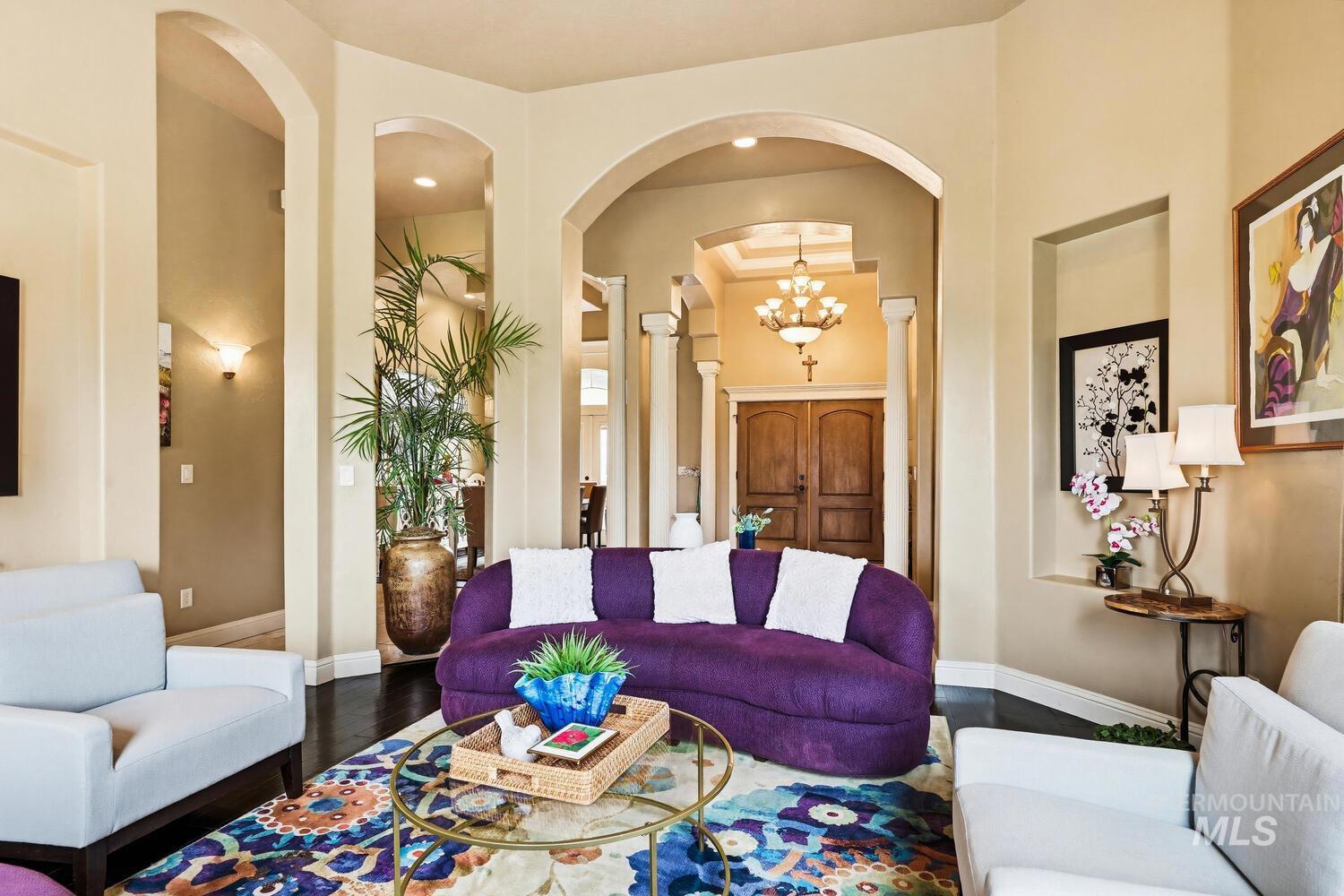 Experience the ultimate blend of luxury and tranquility in a stunning estate nestled on nearly two pristine acres in the heart of Eagle. This rare property offers the perfect balance of expansive outdoor space and refined indoor living, designed specifically for those who value privacy, comfort, and accessibility. One standout feature of this residence is its true single-level design. Spanning almost 3500 square feet the home allows for complete living on one floor, eliminating the hassle of stairs while maintaining an airy, open-concept feel. The thoughtful split-bedroom floor plan ensures a private retreat for the primary suite, which boasts a spa-like bath with a garden tub and elegant travertine tile work. Step inside to find high-end finishes throughout, including soaring ceilings, rich hardwood flooring, and a gourmet chef’s kitchen featuring granite countertops and stainless steel appliances. Outside, the 1.94-acre lot provides a massive canvas for gardening, recreation, or simply enjoying the peaceful views. Whether you’re hosting guests on the covered patio or relaxing in the front courtyard, this home is built for entertaining. Complete with a three-car garage and dedicated RV parking, this estate offers the space you need and the lifestyle you’ve been looking for.