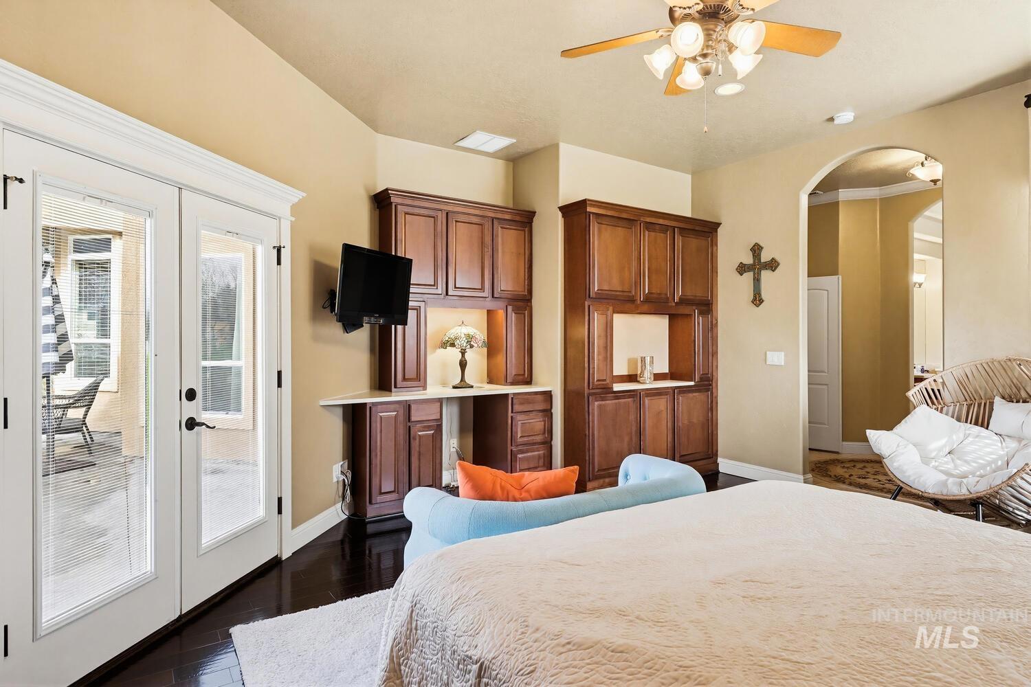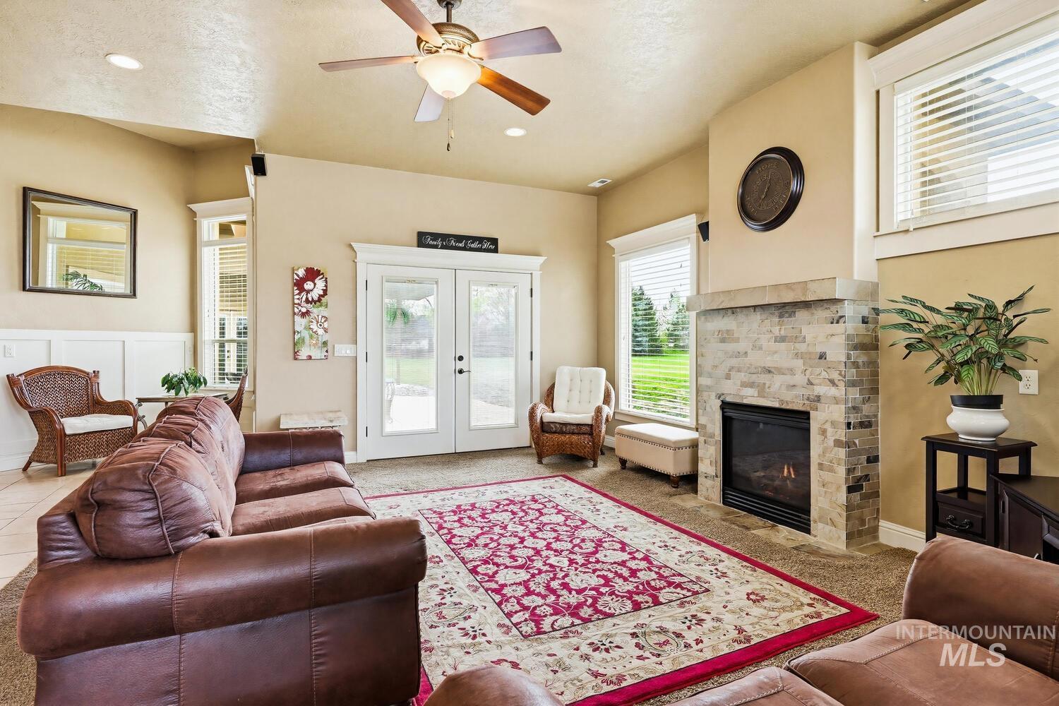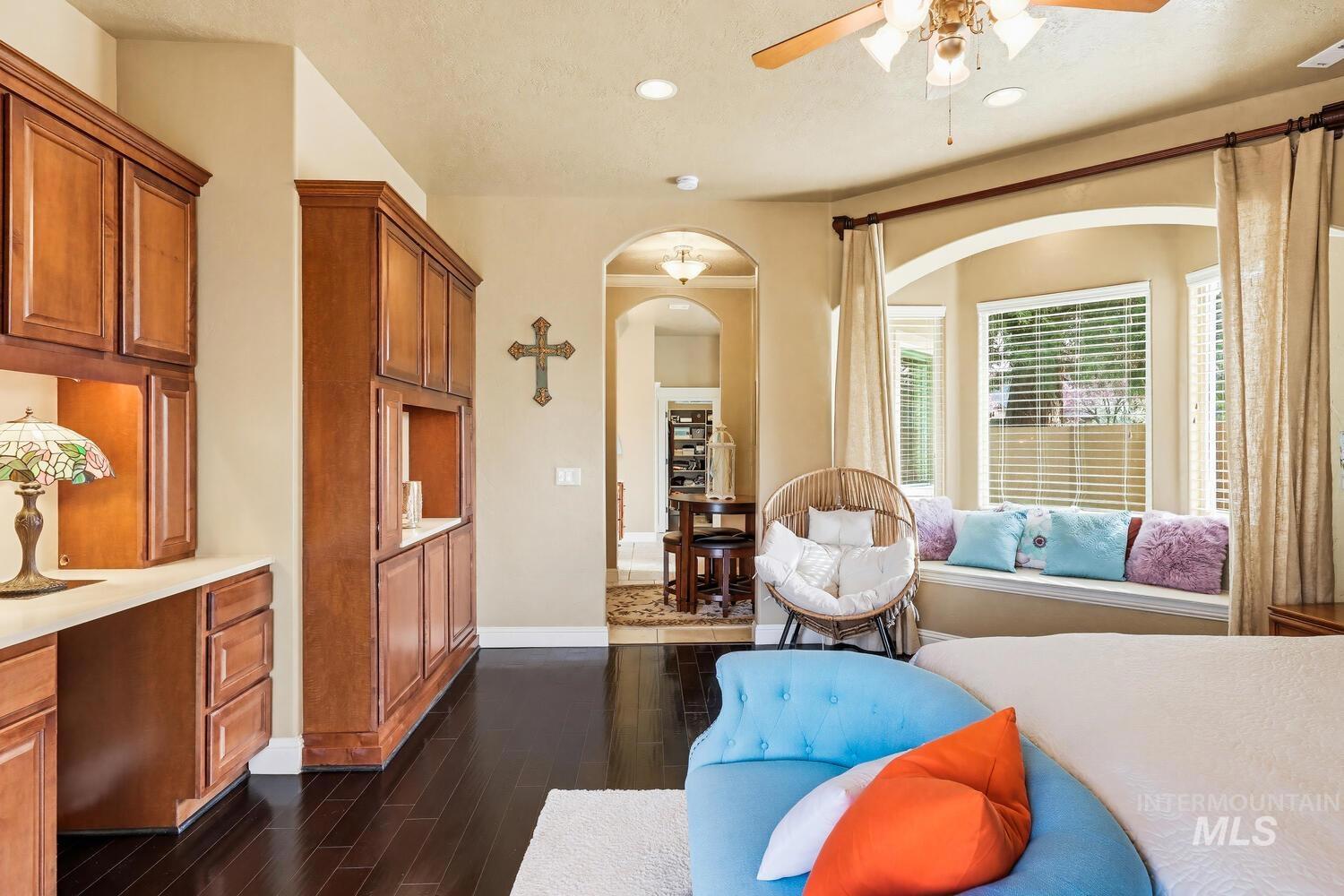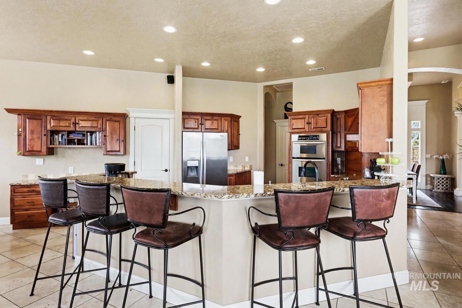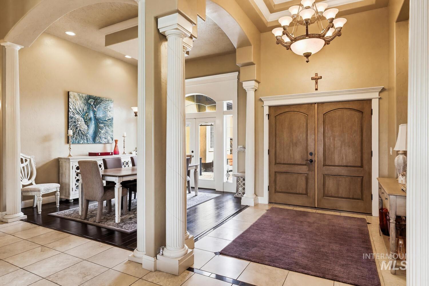 Experience the ultimate blend of luxury and tranquility in a stunning estate nestled on nearly two pristine acres in the heart of Eagle. This rare property offers the perfect balance of expansive outdoor space and refined indoor living, designed specifically for those who value privacy, comfort, and accessibility. One standout feature of this residence is its true single-level design. Spanning almost 3500 square feet the home allows for complete living on one floor, eliminating the hassle of stairs while maintaining an airy, open-concept feel. The thoughtful split-bedroom floor plan ensures a private retreat for the primary suite, which boasts a spa-like bath with a garden tub and elegant travertine tile work. Step inside to find high-end finishes throughout, including soaring ceilings, rich hardwood flooring, and a gourmet chef’s kitchen featuring granite countertops and stainless steel appliances. Outside, the 1.94-acre lot provides a massive canvas for gardening, recreation, or simply enjoying the peaceful views. Whether you’re hosting guests on the covered patio or relaxing in the front courtyard, this home is built for entertaining. Complete with a three-car garage and dedicated RV parking, this estate offers the space you need and the lifestyle you’ve been looking for.