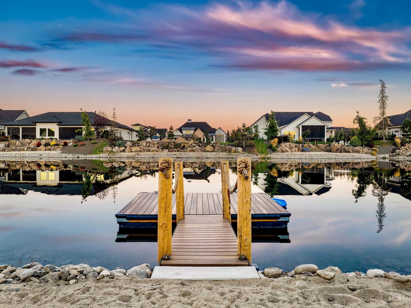 Don’t miss this rare opportunity to own a waterfront home in the Lakeside Retreats of Eagle’s coveted Legacy community! This exceptional property offers an East-facing backyard with private beach & dock, in-ground hot tub, and paver patio with built-in gas firepit—perfect for relaxing or entertaining with tranquil water views. The open-concept design is filled with natural light and crafted to enhance indoor-outdoor living through expansive windows & sliders. Paddleboard, fish, or kayak right from your backyard oasis. The versatile layout features an upper bonus room, main-level game room, office, butler’s pantry & true RV bay. Main-level primary suite includes a spa-like bath with water views & dedicated washer/dryer in the closet. Legacy boasts resort-style amenities: pools, tennis & pickleball courts, walking paths, parks, and a 3-hole golf course. Ideally located near Eagle Island State Park, Freedom Park, downtown Eagle, and top-ranked schools. A true Idaho lifestyle home!