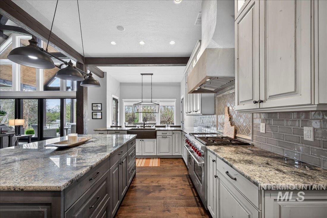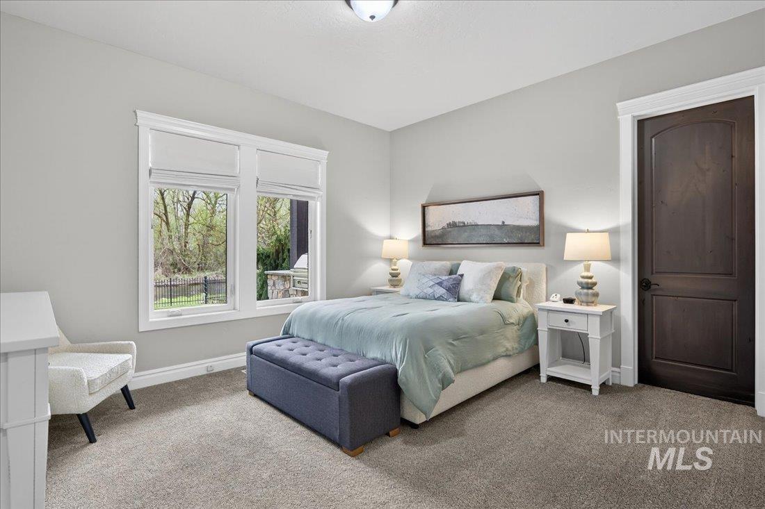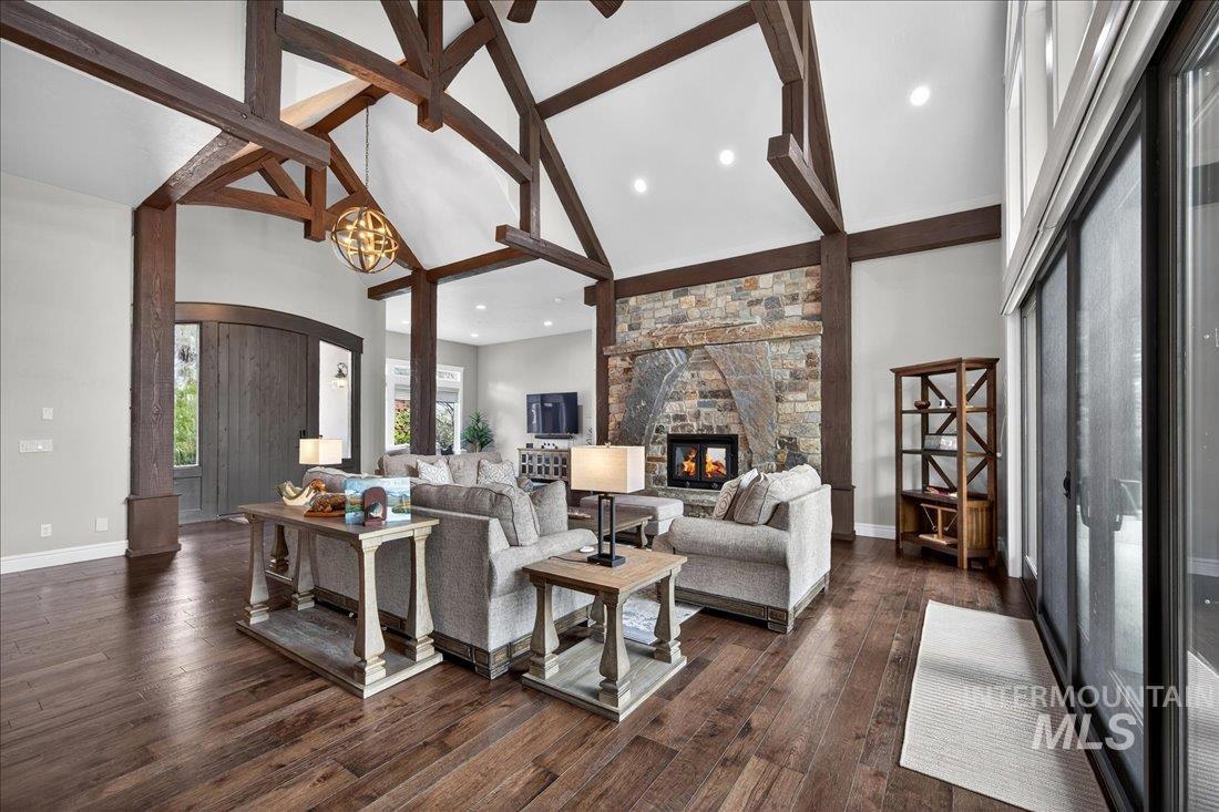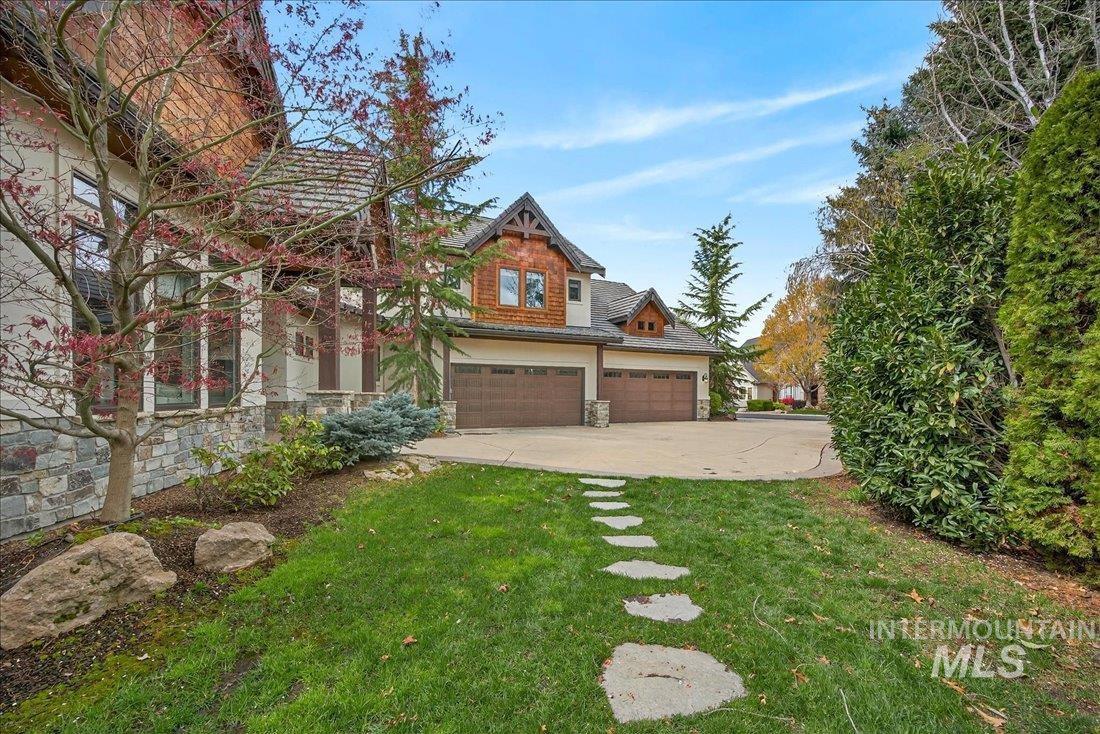 Timeless RIVERFRONT estate...w/ unforgettable views...FULLY FURNISHED! Large 7 car / RV garage ! Set along the Boise River in the heart of Eagle, boasting luxury, privacy, & natural beauty. Pristine 122 FT water frontage; your own private beach. Imagine experiencing world-class fly fishing literally in your backyard, inviting a deeper connection to the outdoors. The moment you enter, you’re met w/ a breathtaking, uninterrupted river-view that instantly captivates. Soaring cathedral ceilings, custom wood beams that create an inviting atmosphere. Double-sided wood-burning fireplace crafted from handpicked native stone. Tall natural wood doors & rich custom finishes elevate the home’s timelessness. Wake each morning in the main-level primary & secondary suites to tranquil river views & a daily reminder of the setting’s unmatched beauty. The gourmet kitchen is a masterpiece featuring solid knotty wood cabinetry, WOLF built-in appliances, & designer finishes, all thoughtfully designed. Featuring a custom recessed wine storage room that your guests won’t stop talking about & expansive outdoor entertaining spaces where you’ll find yourself wanting to linger. Enjoy your private spa to relax & unwind, along w/ a fully equipped outdoor kitchen - perfect for even the most experienced chefs. Upstairs, a dedicated movie room w/ a river-view off private balcony + 2BR & 1BA. A MUST SEE in person!