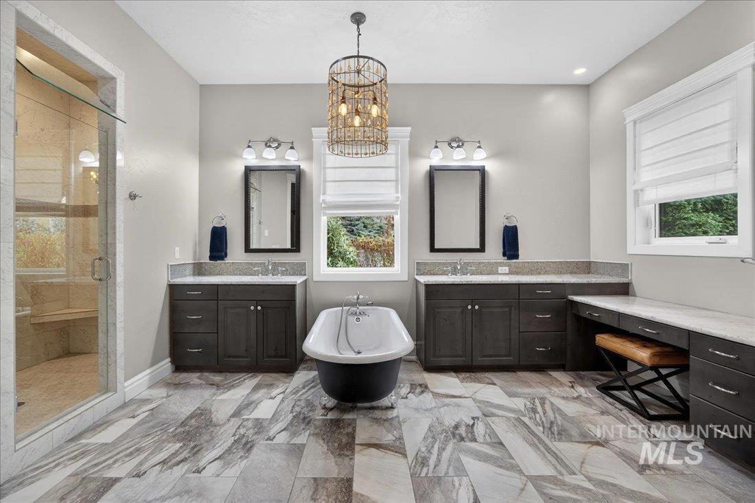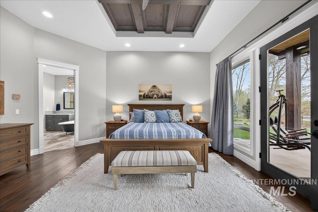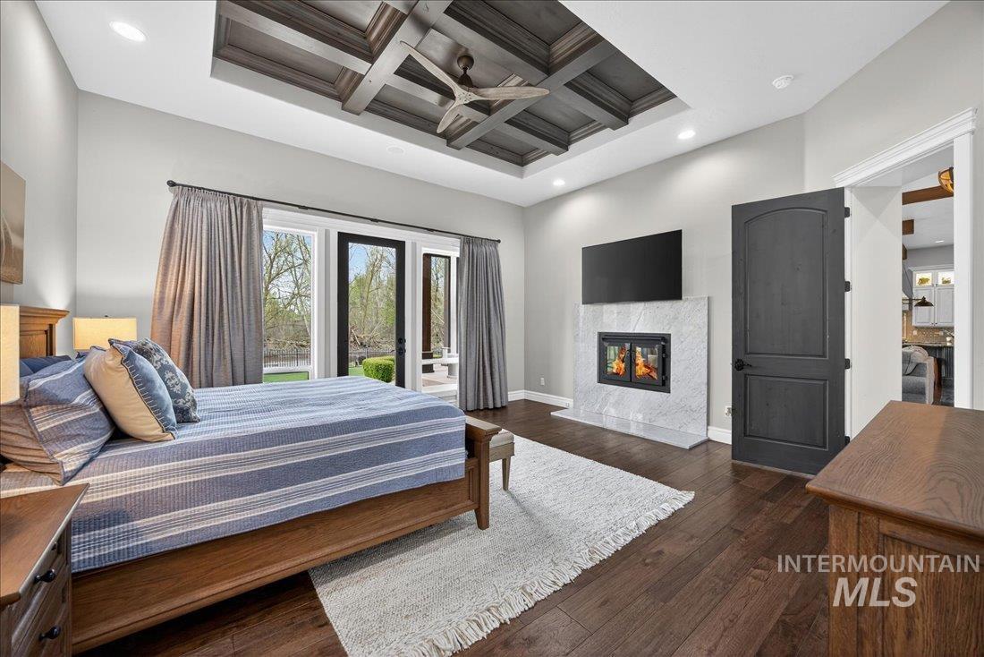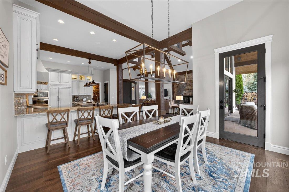 Timeless RIVERFRONT estate...w/ unforgettable views...FULLY FURNISHED! Large 7 car / RV garage ! Set along the Boise River in the heart of Eagle, boasting luxury, privacy, & natural beauty. Pristine 122 FT water frontage; your own private beach. Imagine experiencing world-class fly fishing literally in your backyard, inviting a deeper connection to the outdoors. The moment you enter, you’re met w/ a breathtaking, uninterrupted river-view that instantly captivates. Soaring cathedral ceilings, custom wood beams that create an inviting atmosphere. Double-sided wood-burning fireplace crafted from handpicked native stone. Tall natural wood doors & rich custom finishes elevate the home’s timelessness. Wake each morning in the main-level primary & secondary suites to tranquil river views & a daily reminder of the setting’s unmatched beauty. The gourmet kitchen is a masterpiece featuring solid knotty wood cabinetry, WOLF built-in appliances, & designer finishes, all thoughtfully designed. Featuring a custom recessed wine storage room that your guests won’t stop talking about & expansive outdoor entertaining spaces where you’ll find yourself wanting to linger. Enjoy your private spa to relax & unwind, along w/ a fully equipped outdoor kitchen - perfect for even the most experienced chefs. Upstairs, a dedicated movie room w/ a river-view off private balcony + 2BR & 1BA. A MUST SEE in person!