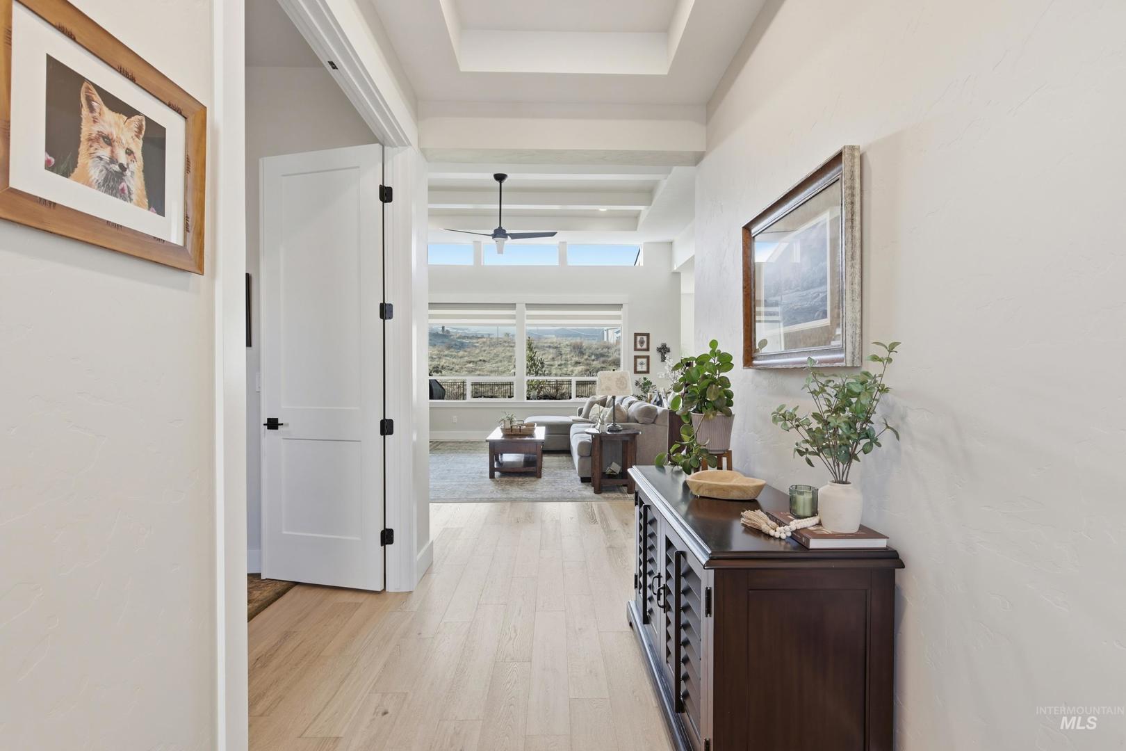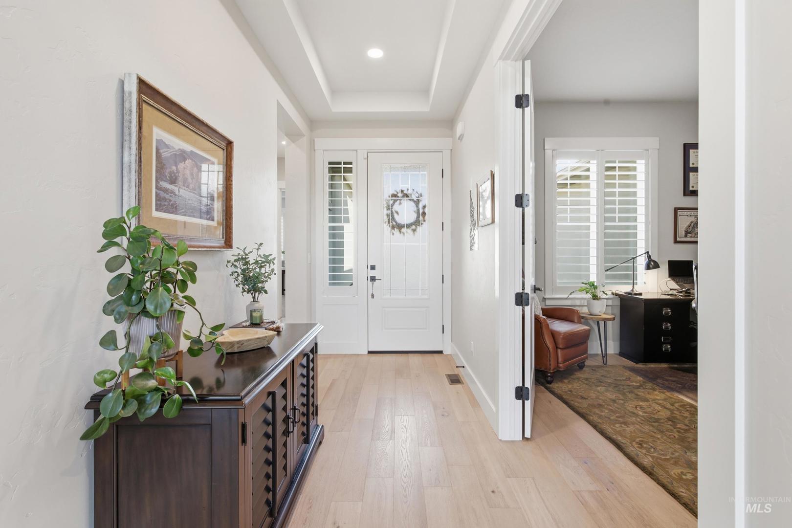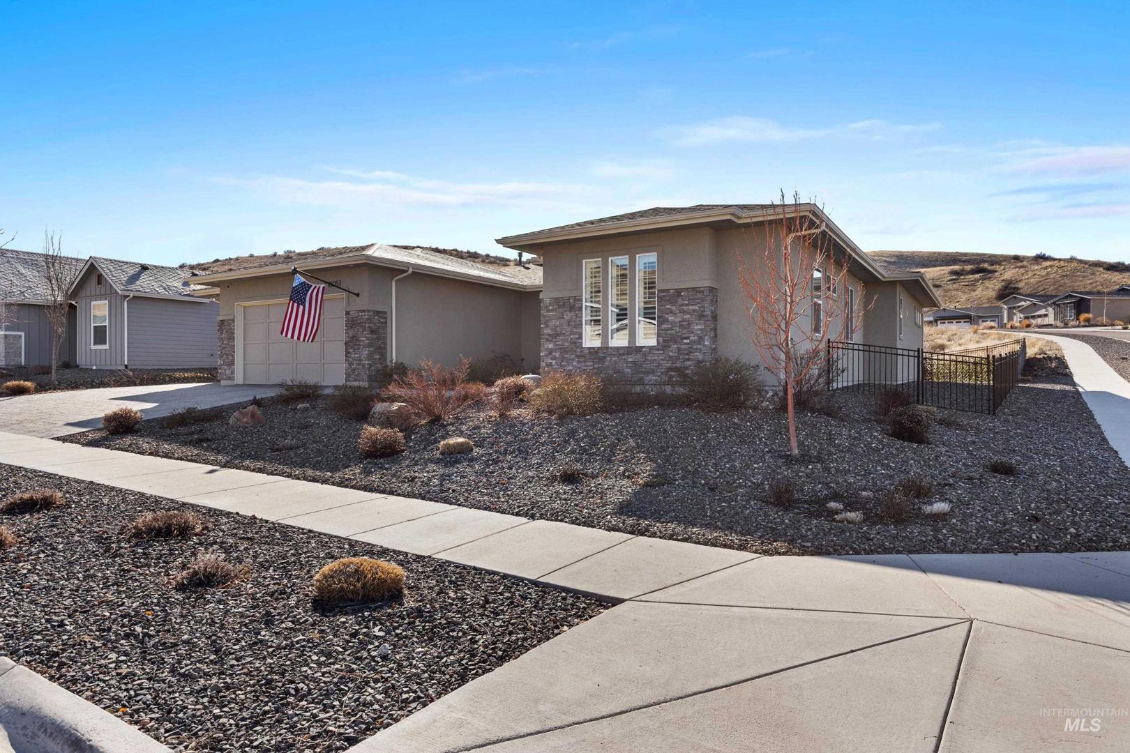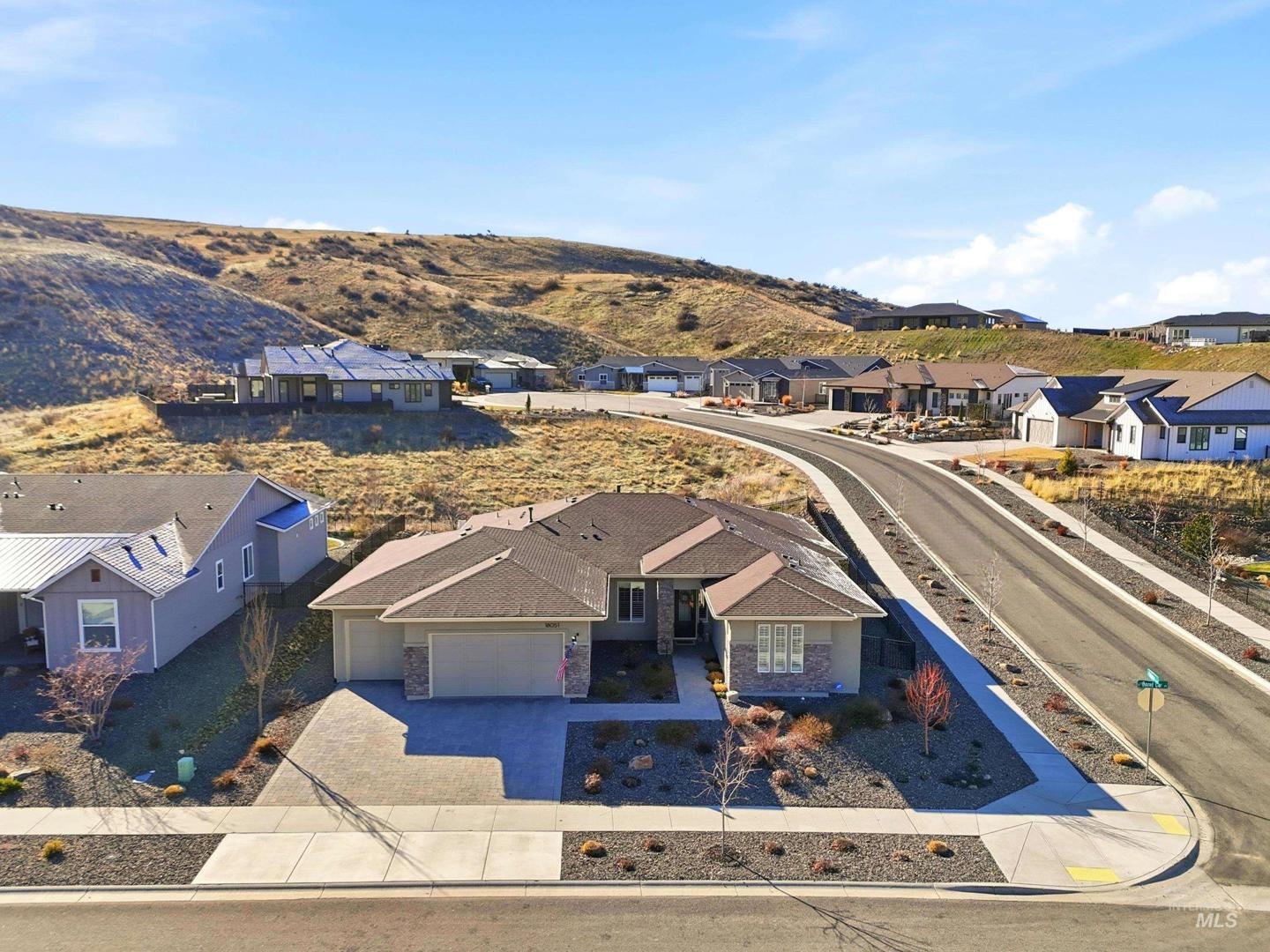 Tucked into the scenic foothills of Avimor, this exceptional home offers the perfect blend of function, comfort, and outdoor lifestyle. The open-concept floor plan features 3 bedrooms, 2.5 bathrooms, and a dedicated office. The chef-inspired kitchen impresses with quartz countertops, upgraded finishes, and a generous walk-in pantry, while the oversized 4-car garage provides abundant room for vehicles, storage, and all your adventure gear. Set on a desirable corner lot on Burnt Car, one of Avimor`s most sought-after streets, the home backs up to the foothills with no direct rear neighbors, offering rare privacy and unobstructed natural views. A trailhead sits right across the street, putting miles of hiking at your doorstep the moment you step outside. The home is loaded with thoughtful upgrades: a 10x12 custom shed, permanent exterior lighting, an ADT security system, and a water softener. Beyond your front door, Avimor delivers a resort-style lifestyle with 100+ miles of trails, indoor/outdoor pools, a fitness center, pickleball courts, and a vibrant village center complete with a coffee shop, brewery, and gas station. With 20+ weekly community activities; from hiking clubs to mahjong nights, the connections here run as deep as the trails. Come experience the peace, the nature, and the community that make Avimor one of a kind.