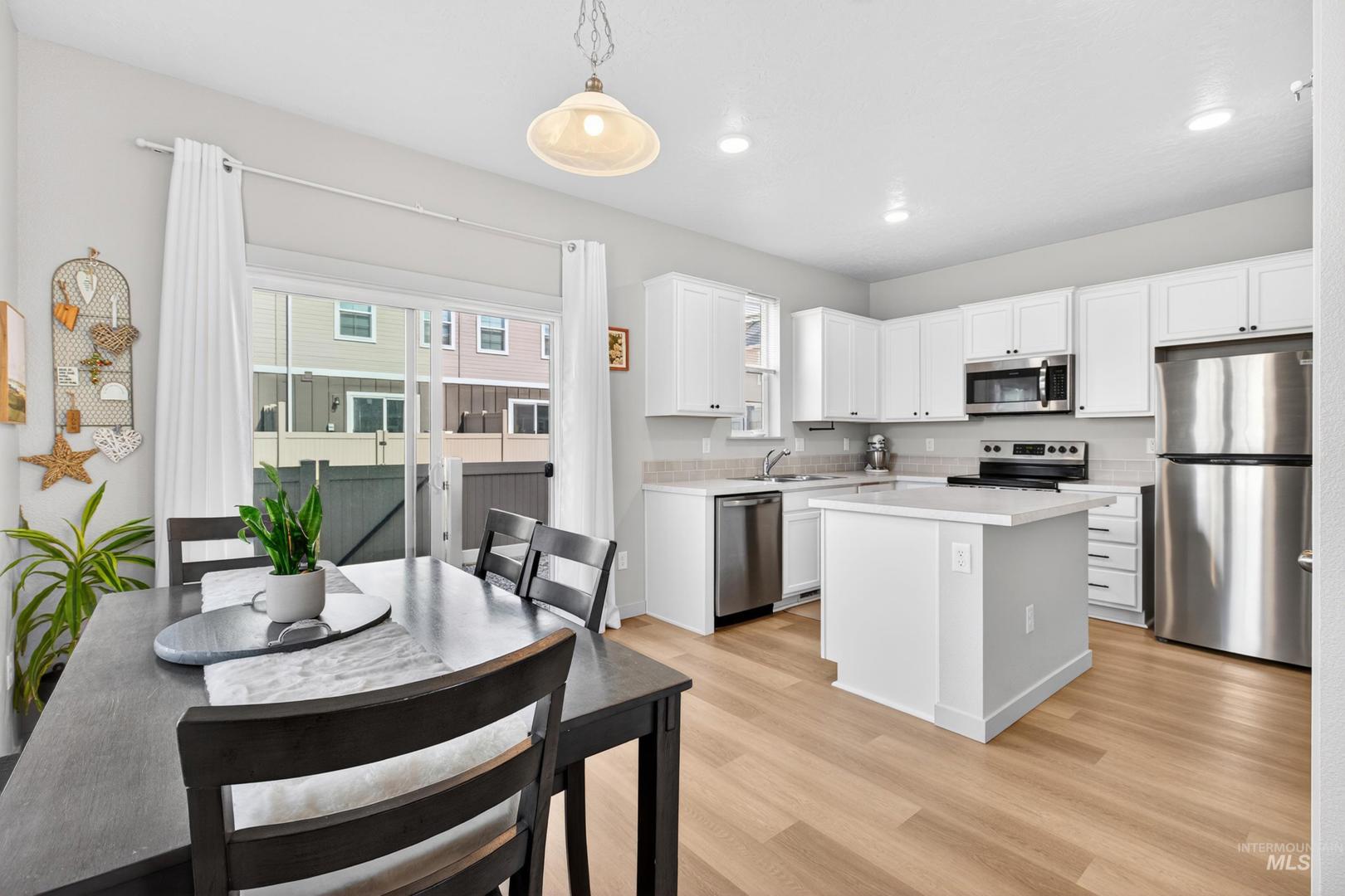 Open House Sat. 4/11 2:00-4:00. Come see! Like-new townhome in a prime SW Boise location, built in 2022 and thoughtfully situated as a desirable corner unit. With no homes directly in front and only one shared wall, this home enjoys a more open feel, plus a west-facing orientation that avoids harsh afternoon sun. Inside, the floor plan is both functional and inviting, featuring 3 bedrooms and 2.5 baths, a spacious kitchen, and modern finishes throughout. Luxury vinyl plank flooring runs throughout the main level, and all appliances including the washer, dryer, and refrigerator are included. The location is hard to beat, just 7 miles to downtown Boise, 5 miles to The Village, 1 mile to Boise Ranch Golf Club, and close to nearby schools. New shopping and dining options are directly across the street (including Dutch Bros, The Human Bean, and Albertsons!) Charlesworth amenities include a clubhouse with fitness center, office space, and gathering area, not to mention full outdoor basketball courts, a playground, and green space. Additional highlights include two designated parking spaces and a private, fenced back patio with a gate, perfect for relaxing or entertaining.