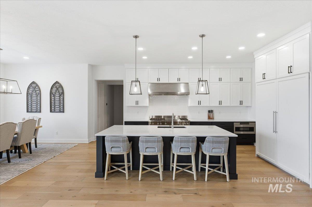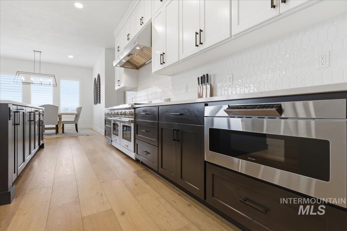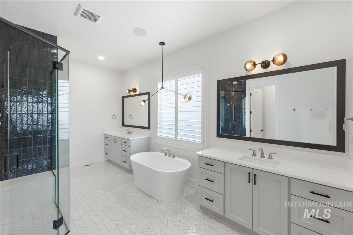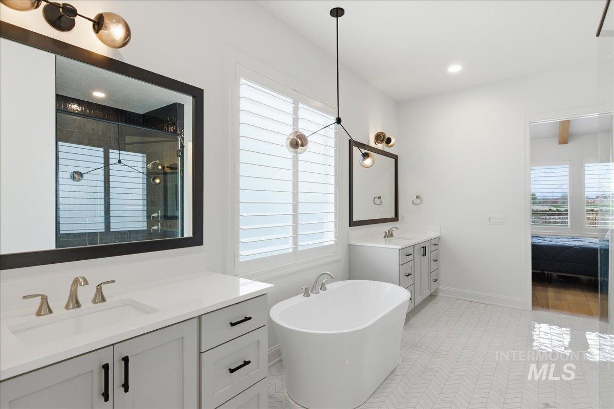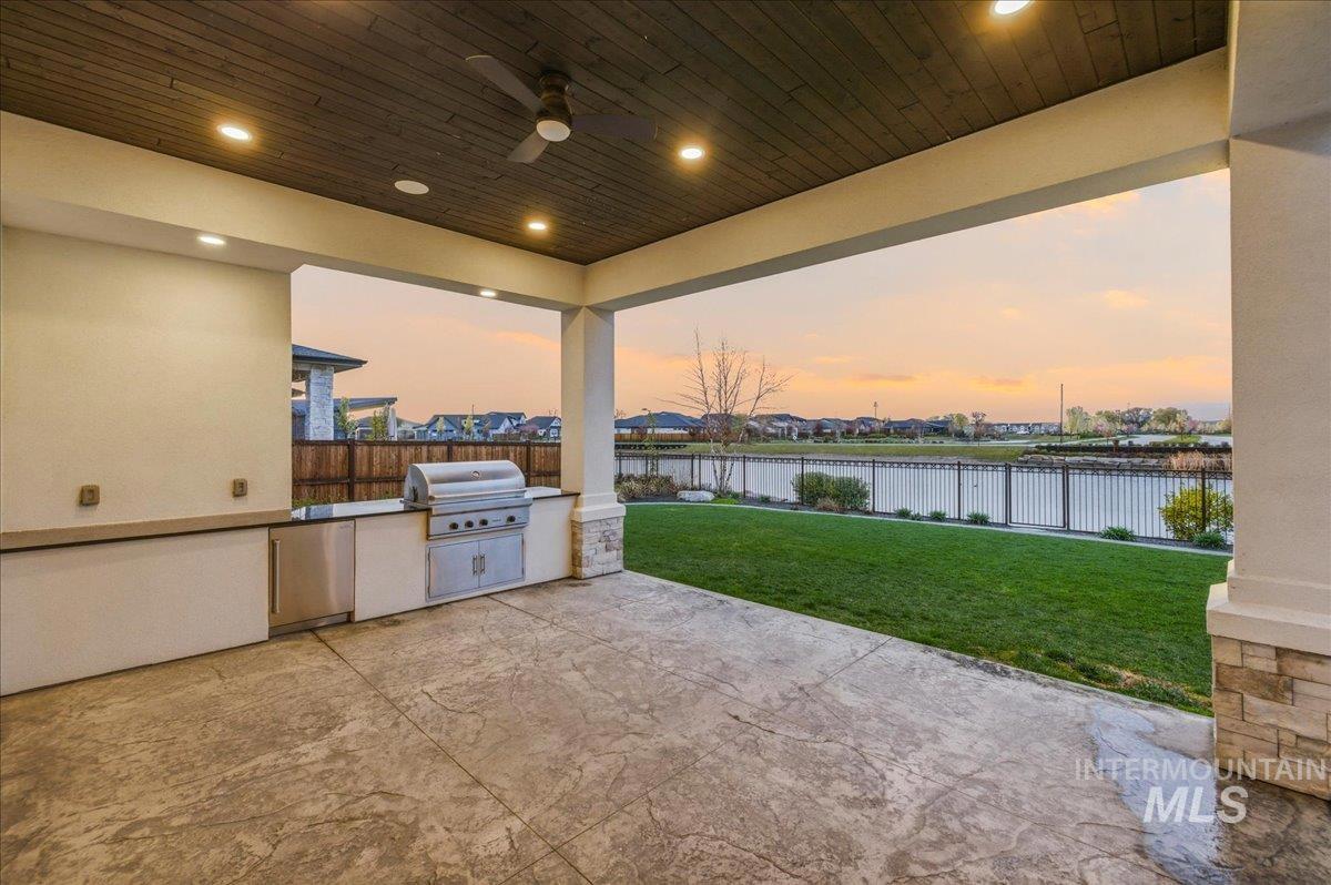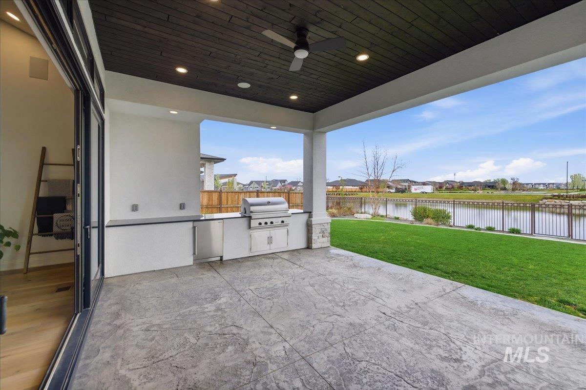 Set in a fantastic waterfront setting, this stunning modern farmhouse by Northern Construction blends timeless design with elevated, everyday living. From the moment you step inside, you’re greeted by soaring ceilings, exposed wood beams, and a striking floor-to-ceiling fireplace that anchors the main living space with warmth and character. The thoughtfully designed floorplan lives like a single level, offering both comfort and functionality with a luxurious primary suite and private guest suite on the main level, plus a dedicated main level office. The primary retreat is a true sanctuary, featuring heated floors, dual vanities, a walk-in glass shower, and a soaking tub designed for relaxation. At the heart of the home, the chef’s kitchen impresses with a premium Wolf range, custom finishes, and seamless flow into the dining and living areas—perfect for entertaining. Extend your living outdoors with an outdoor kitchen overlooking the peaceful waterfront setting. Upstairs, a spacious bonus room with a full bath offers the perfect flex space for guests, a media room, or additional living. Additional highlights include solid core doors, a built-in Sonos sound system, conditioned crawl space, dual furnaces and A/C units for optimal efficiency, and an oversized 1,234 sq ft garage offering ample space for storage, toys, or hobbies. Lightly lived in & in impeccable condition.