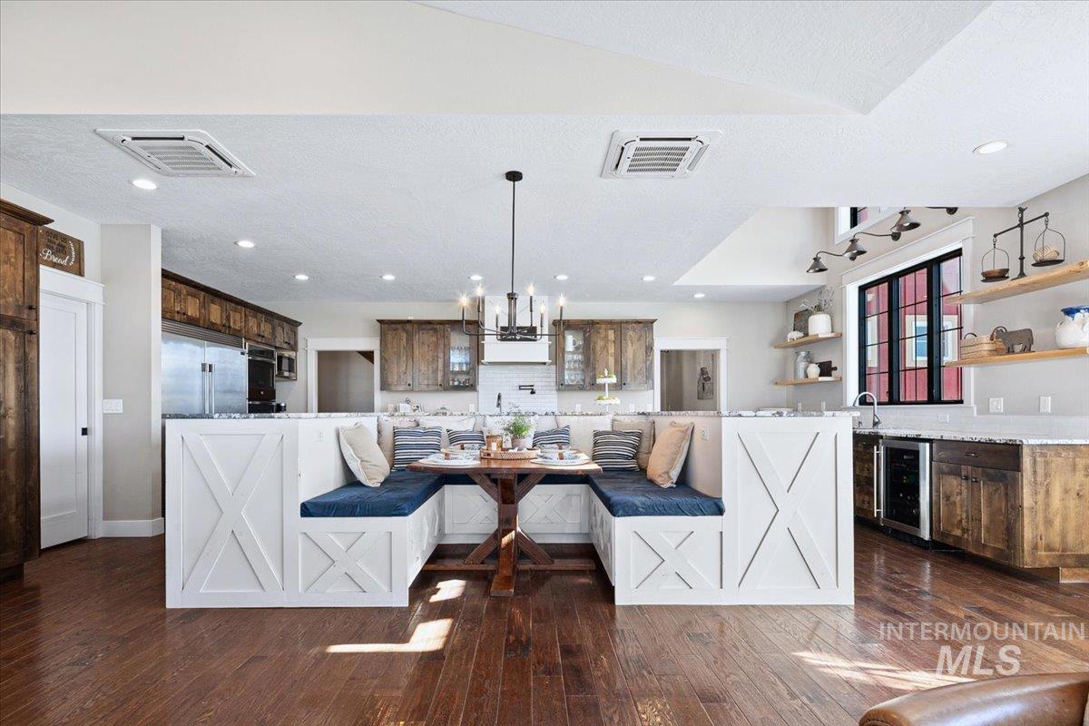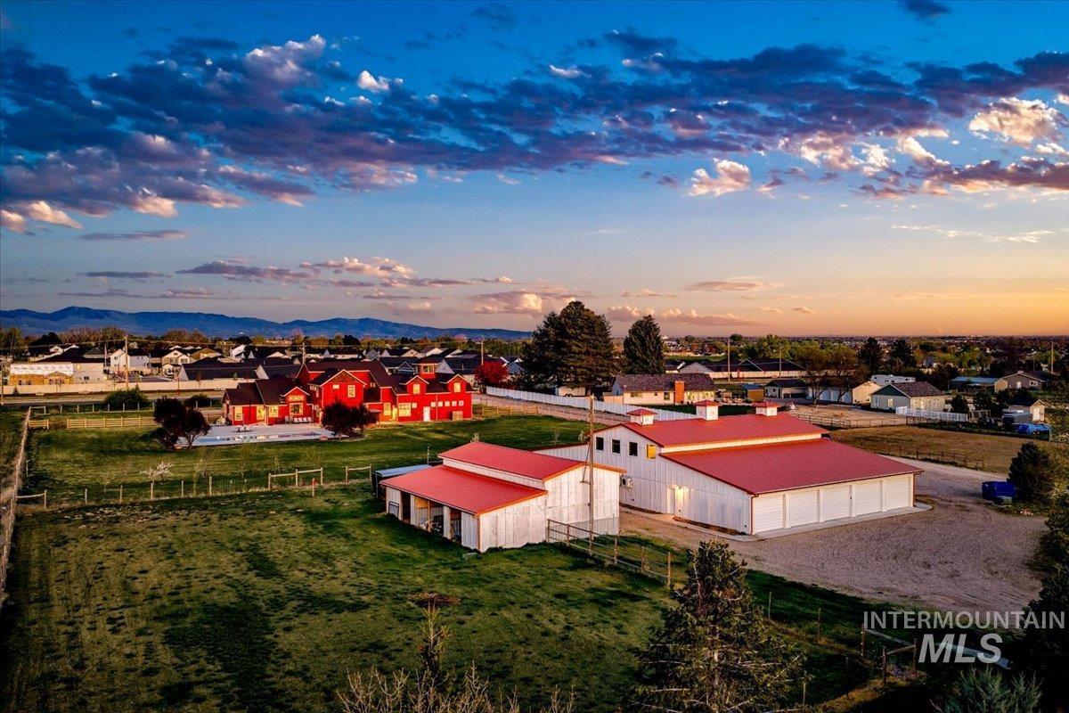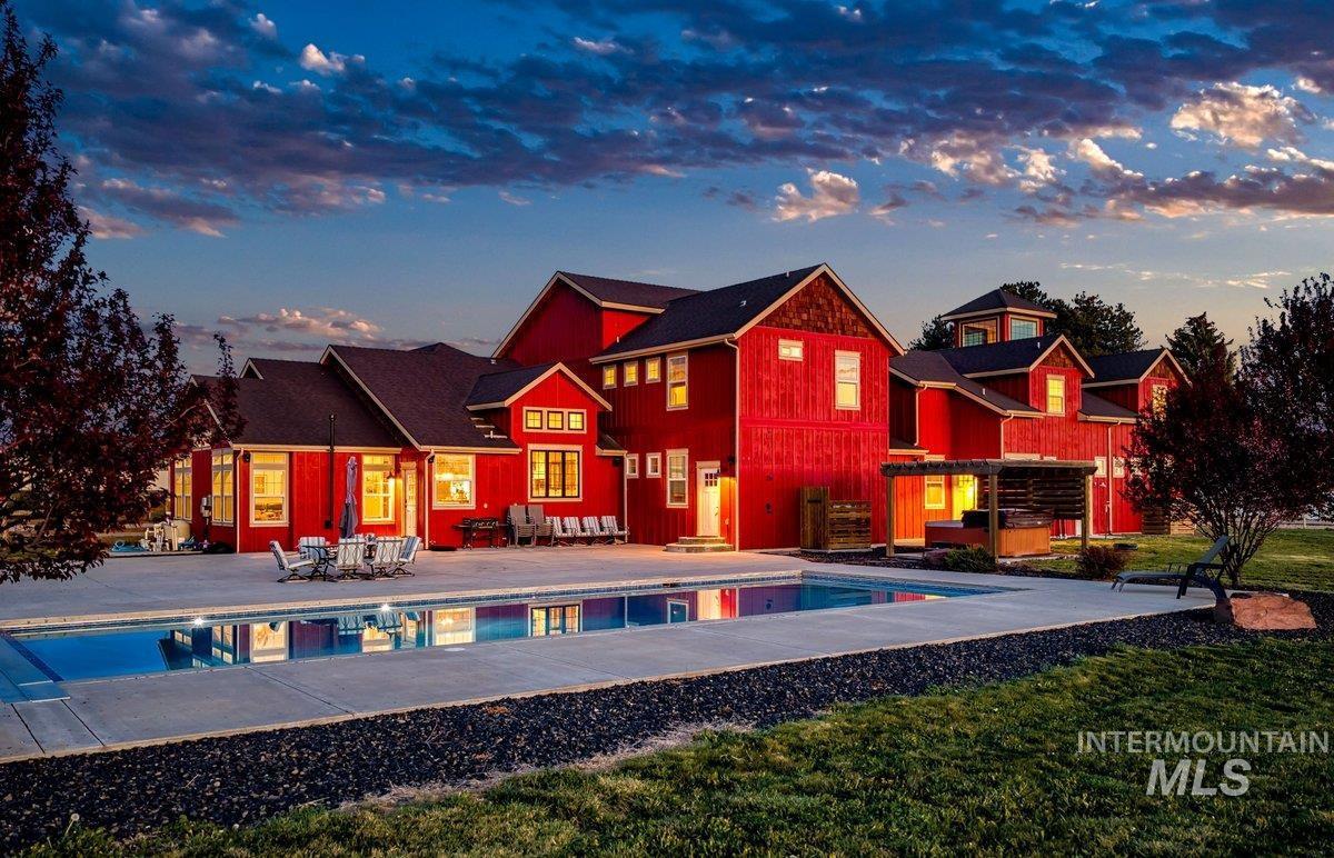 Welcome to this stunning modern farmhouse retreat in Star, Idaho, where refined living meets wide-open space and exceptional functionality. Situated on 6.8 pristine acres, this impressive 6,886-square-foot residence offers the perfect blend of luxury, comfort, and versatility. From the moment you arrive, you’ll be captivated by the beautiful setting, expansive views, and thoughtfully designed layout. Inside, the home features an open-concept living area filled with natural light, creating a warm and inviting atmosphere ideal for both everyday living and entertaining. The spacious great room flows seamlessly into a huge chef’s kitchen, complete with high-end finishes, ample counter space, and room for gathering. An elegantly appointed dining room provides the perfect setting for hosting memorable meals and special occasions. The private master suite is a true retreat, offering a serene escape with luxurious finishes, generous space, and spa-like amenities. Additional bedrooms provide comfort and flexibility for family or guests. An oversized 4-car garage ensures plenty of room for vehicles and storage. Step outside to enjoy the ultimate outdoor lifestyle with a beautiful pool and hot tub, perfect for relaxing or entertaining while taking in the gorgeous surrounding views. For those needing workspace or storage, the incredible 7,500 square feet of shop space offers endless options