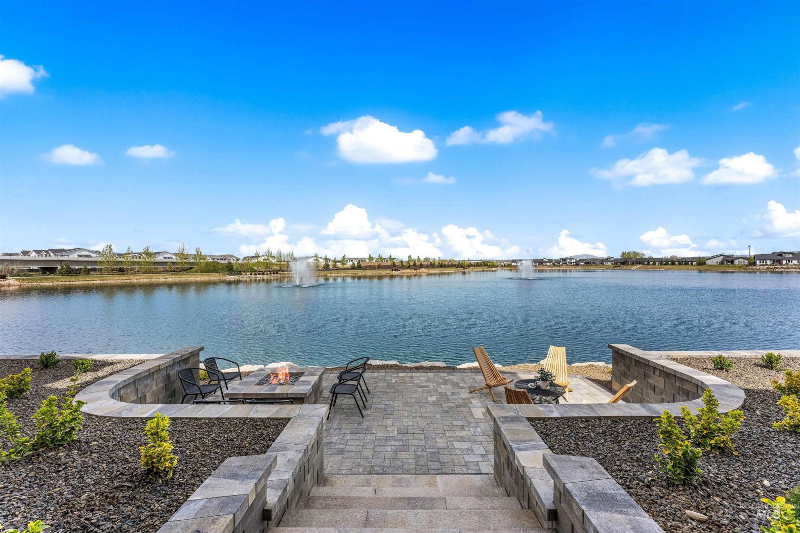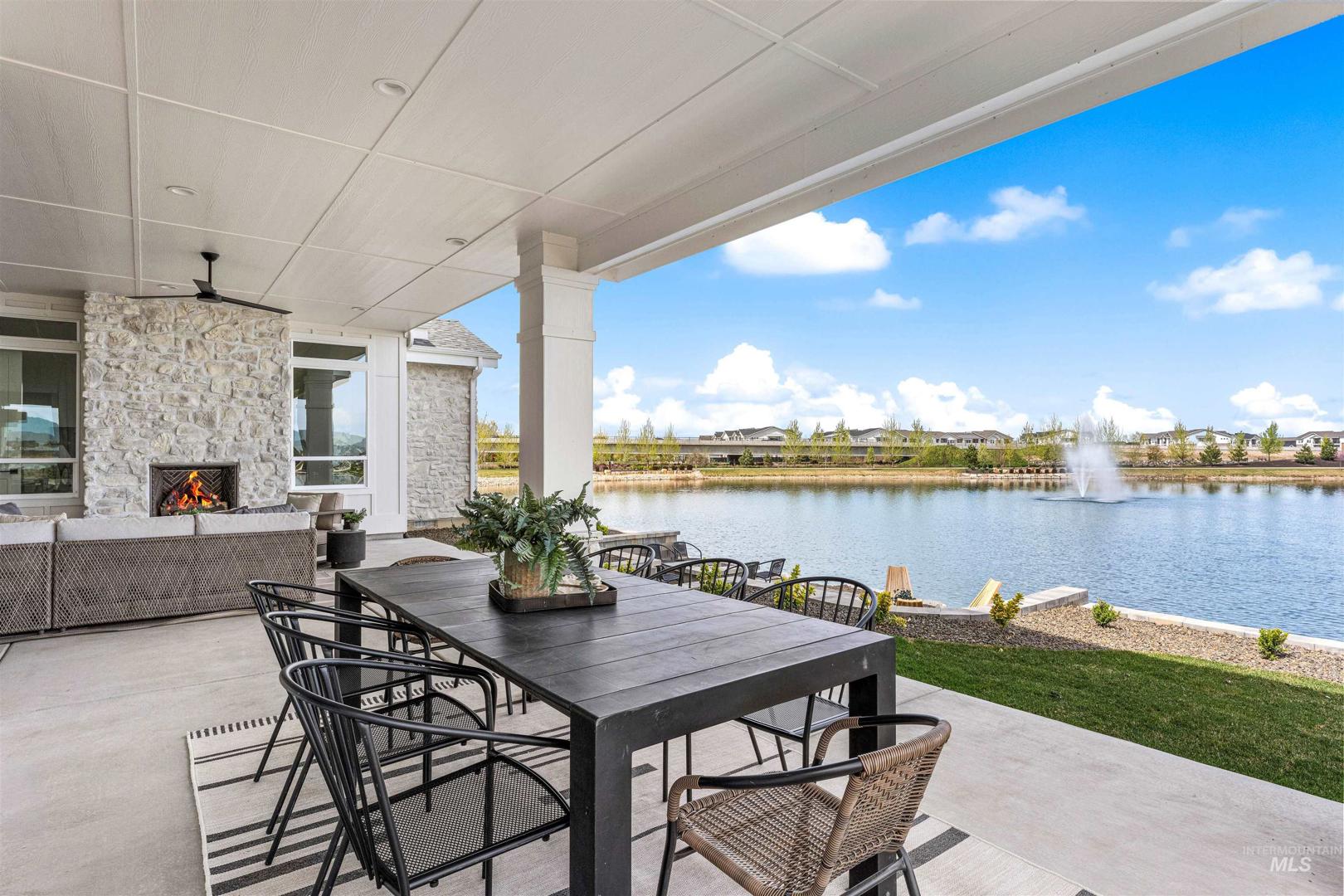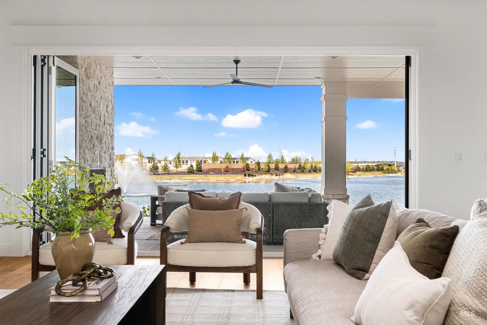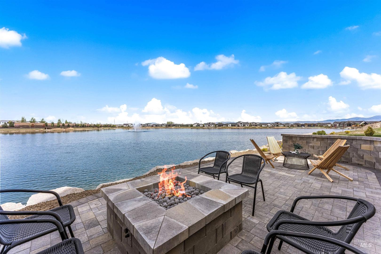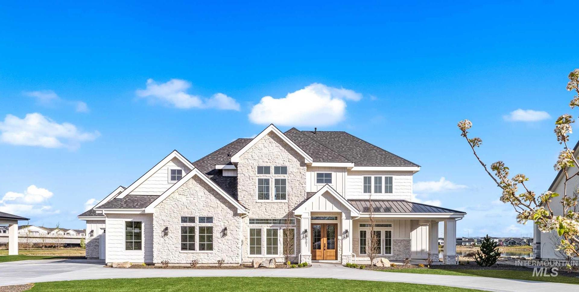 Welcome to the elevated Madison Floor Plan by Highland Homes, an exceptional two-level, waterfront home where thoughtful design meets luxury living. From the moment you enter, the layout blends comfort and sophistication, anchored by an expansive 12-foot kitchen island and a walk-through butler’s pantry that make this kitchen ideal for entertaining, complemented by a premier selection of Wolf and Sub-Zero appliances including a steam oven, built-in coffee maker, wine fridge, Sub-Zero refrigerator, and dual dishwashers. The private main-floor primary suite features a spa-inspired bathroom with direct access to the laundry room. Upstairs, you’ll find a spacious vaulted bonus room, two well-appointed bedrooms connected by a Jack-and-Jill bathroom, and a third bedroom with a private bath—perfect for guests. Enhancing the waterfront lifestyle, the planned upscale landscaping creates a private outdoor retreat with covered patio, ambient lighting, and direct water access, all set against unobstructed views of the Boise Foothills—perfect for both relaxation and entertaining.