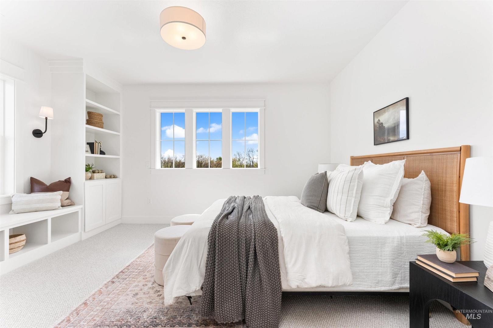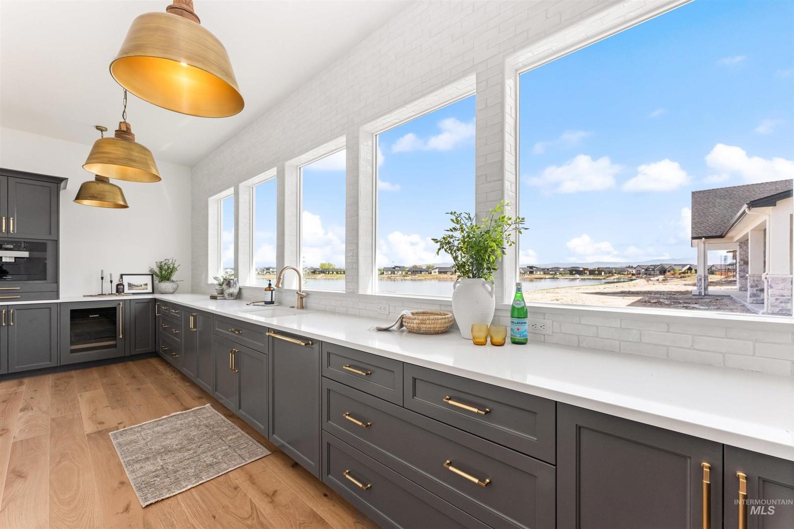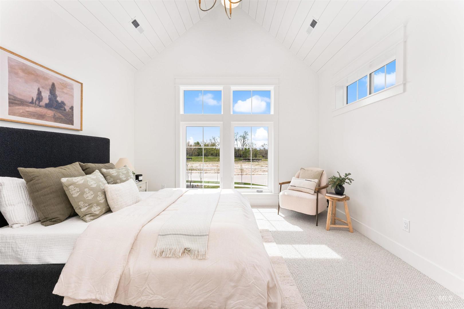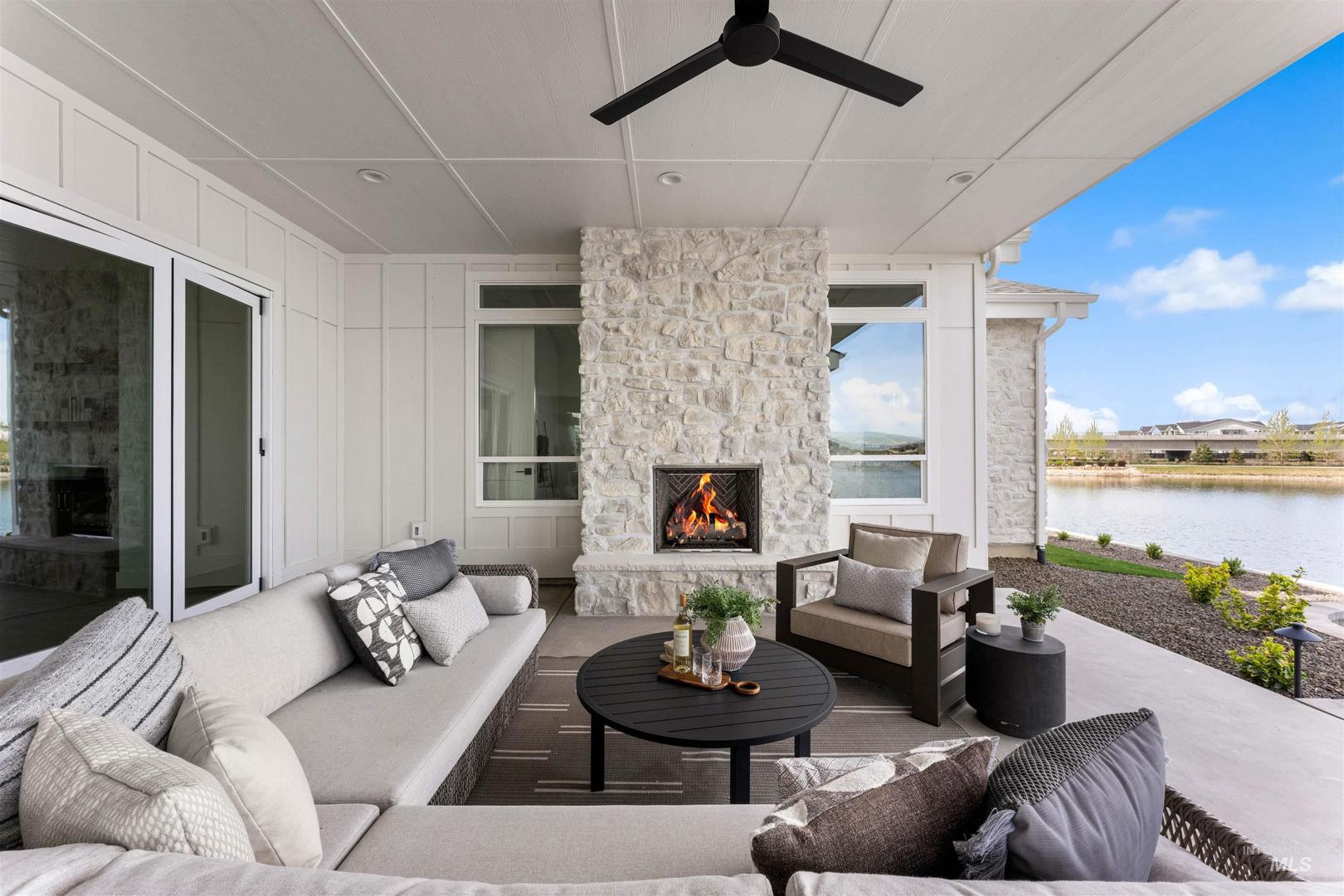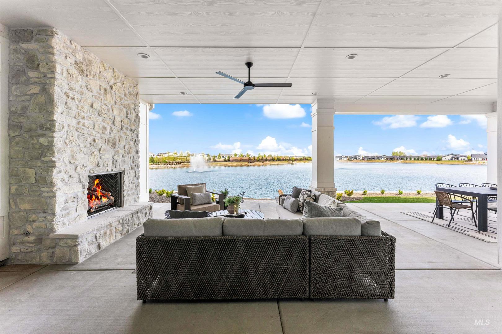 Welcome to the elevated Madison Floor Plan by Highland Homes, an exceptional two-level, waterfront home where thoughtful design meets luxury living. From the moment you enter, the layout blends comfort and sophistication, anchored by an expansive 12-foot kitchen island and a walk-through butler’s pantry that make this kitchen ideal for entertaining, complemented by a premier selection of Wolf and Sub-Zero appliances including a steam oven, built-in coffee maker, wine fridge, Sub-Zero refrigerator, and dual dishwashers. The private main-floor primary suite features a spa-inspired bathroom with direct access to the laundry room. Upstairs, you’ll find a spacious vaulted bonus room, two well-appointed bedrooms connected by a Jack-and-Jill bathroom, and a third bedroom with a private bath—perfect for guests. Enhancing the waterfront lifestyle, the planned upscale landscaping creates a private outdoor retreat with covered patio, ambient lighting, and direct water access, all set against unobstructed views of the Boise Foothills—perfect for both relaxation and entertaining.