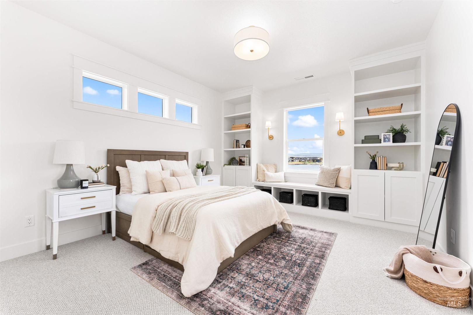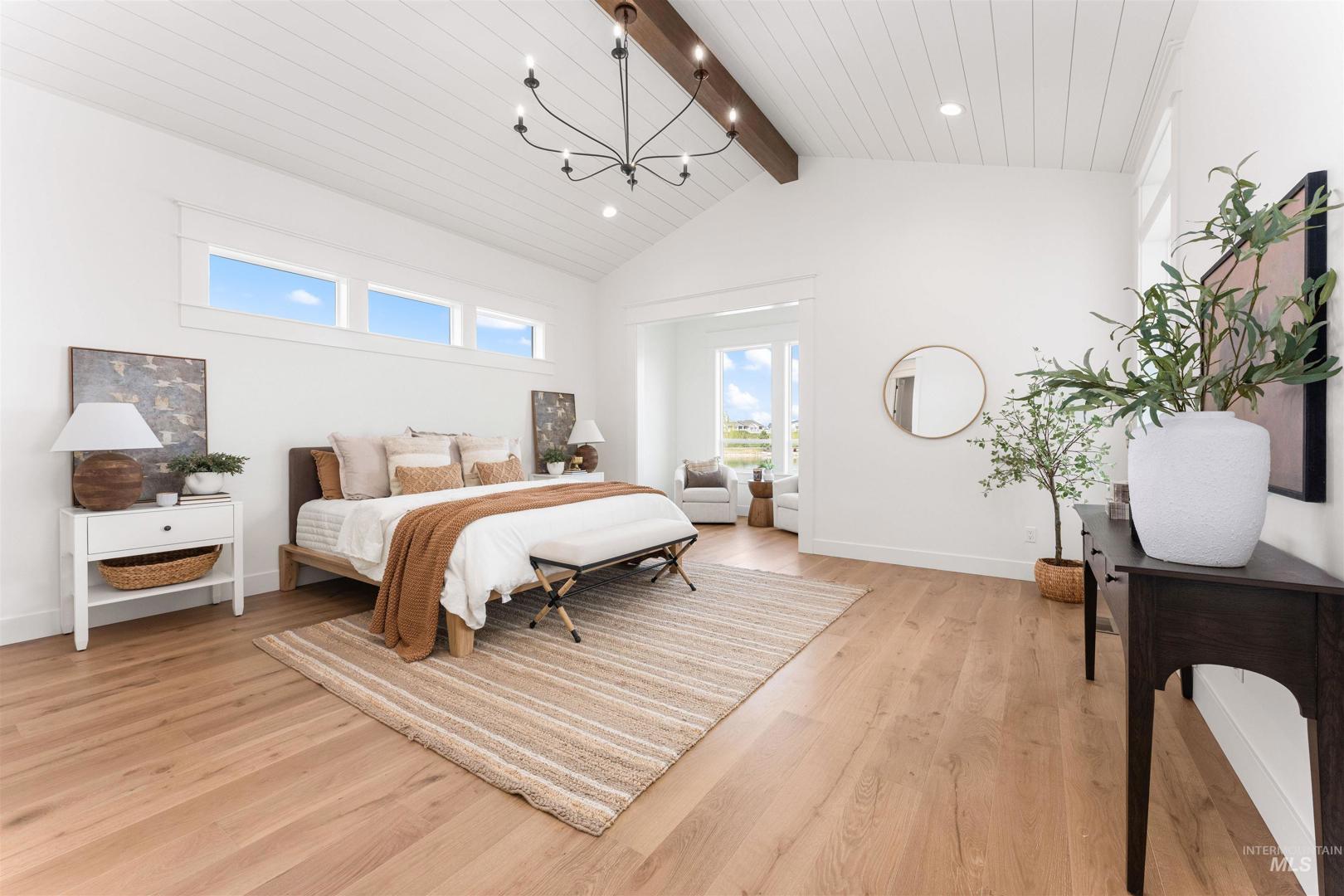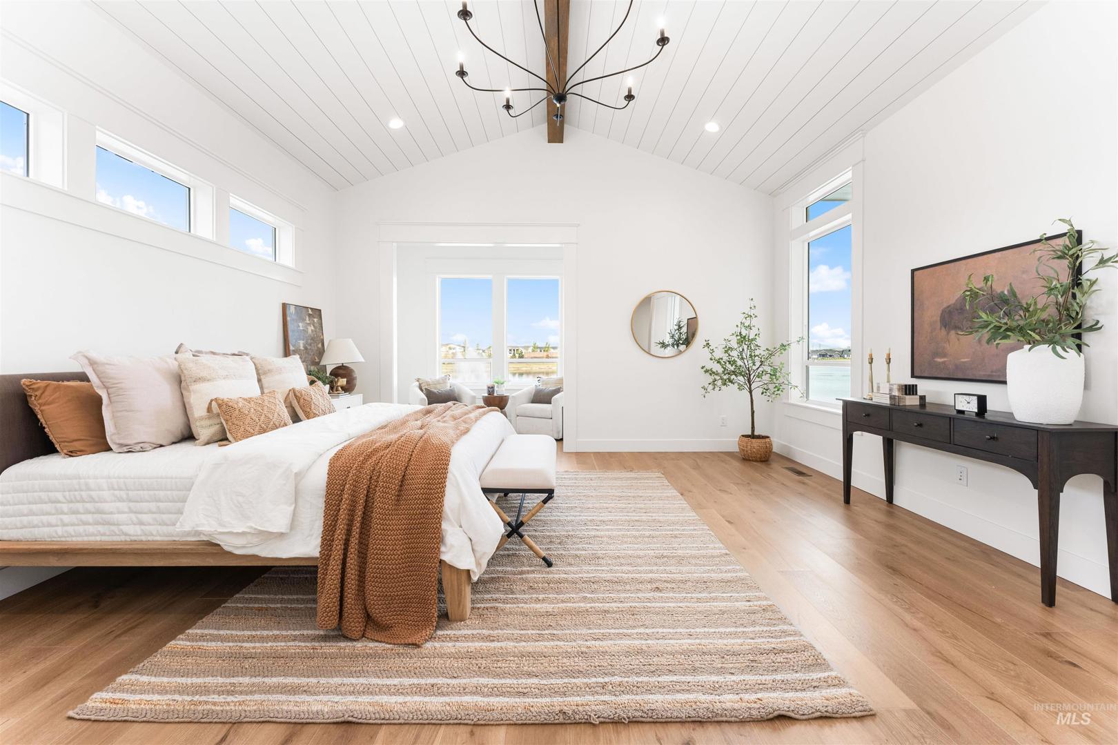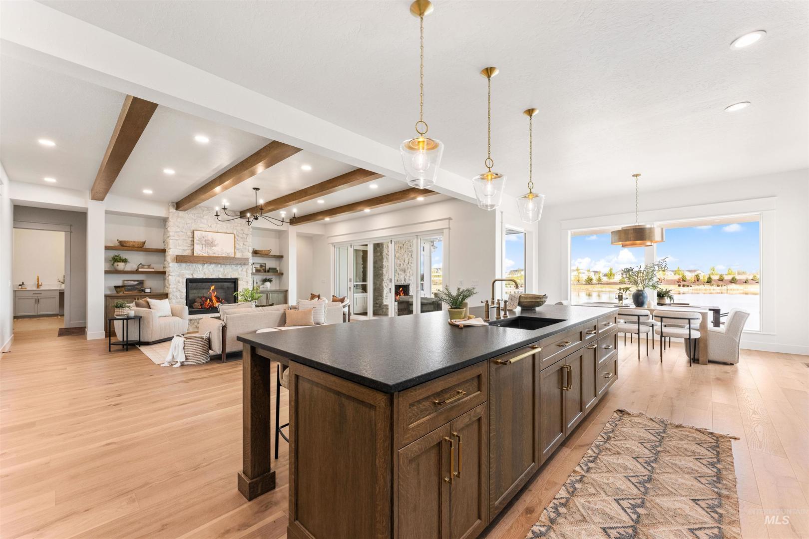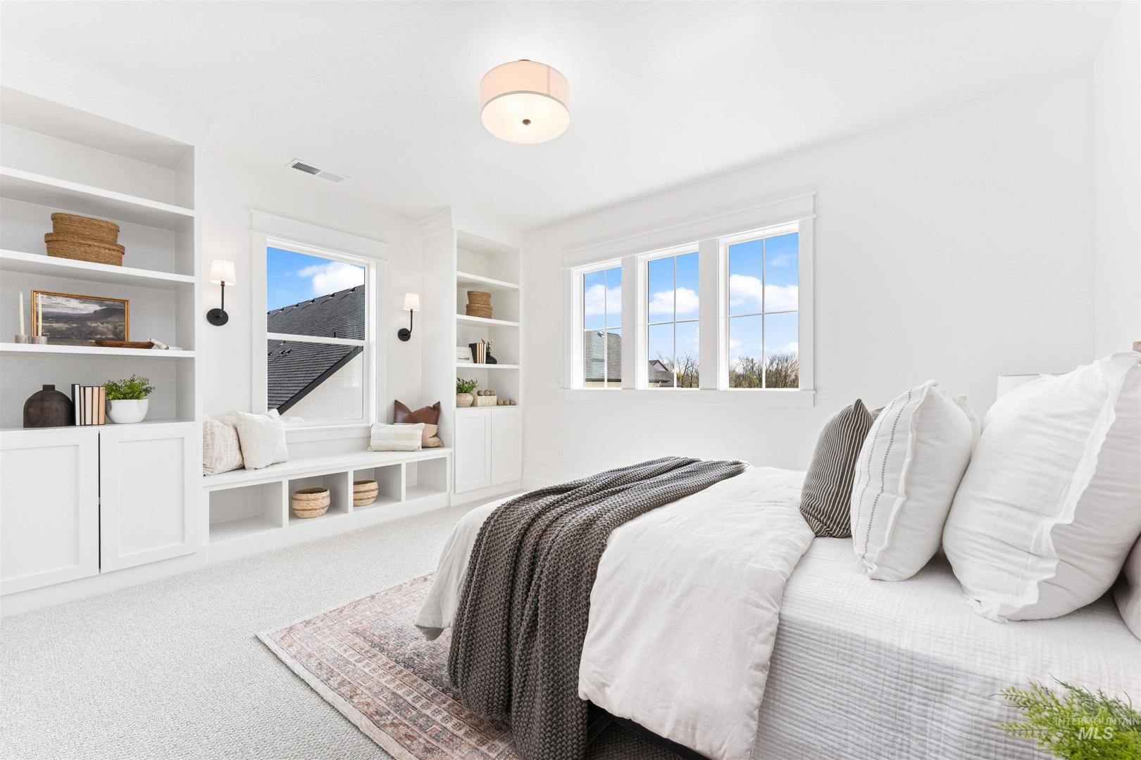 Welcome to the elevated Madison Floor Plan by Highland Homes, an exceptional two-level, waterfront home where thoughtful design meets luxury living. From the moment you enter, the layout blends comfort and sophistication, anchored by an expansive 12-foot kitchen island and a walk-through butler’s pantry that make this kitchen ideal for entertaining, complemented by a premier selection of Wolf and Sub-Zero appliances including a steam oven, built-in coffee maker, wine fridge, Sub-Zero refrigerator, and dual dishwashers. The private main-floor primary suite features a spa-inspired bathroom with direct access to the laundry room. Upstairs, you’ll find a spacious vaulted bonus room, two well-appointed bedrooms connected by a Jack-and-Jill bathroom, and a third bedroom with a private bath—perfect for guests. Enhancing the waterfront lifestyle, the planned upscale landscaping creates a private outdoor retreat with covered patio, ambient lighting, and direct water access, all set against unobstructed views of the Boise Foothills—perfect for both relaxation and entertaining.