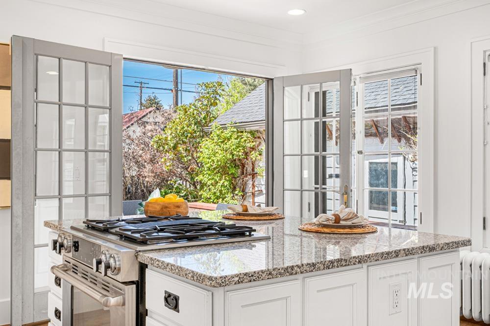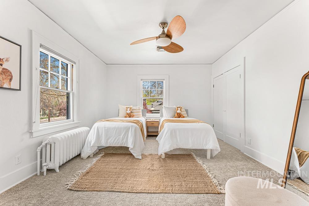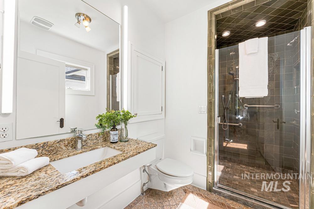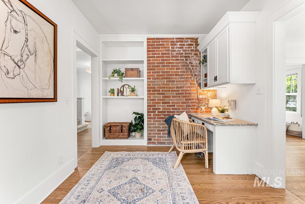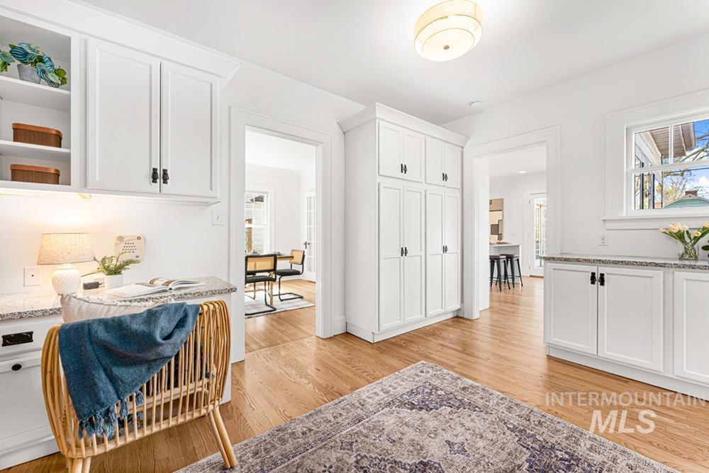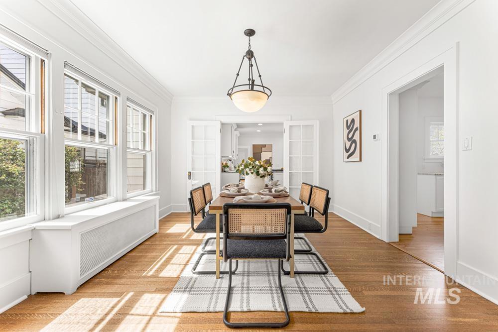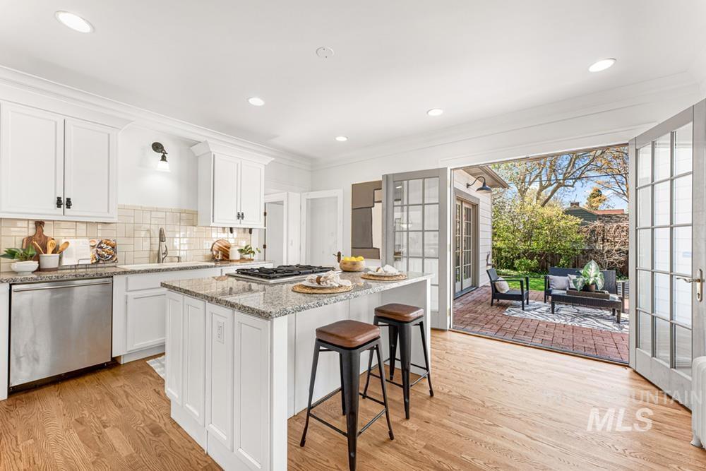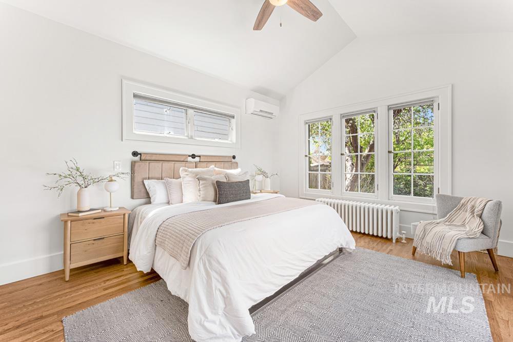 A spacious 1920s Foursquare, set along an idyllic street in the North End! With classic curb appeal, the residence feels right at home in this historic neighborhood. Inside, hardwood floors & original trim extend throughout. The formal living room is accented by a brick fireplace, while formal dining invites connection over home-cooked meals. The kitchen is beautifully bright, wrapped in windows, and thoughtfully updated with stainless steel appliances. A main-level wing offers a secluded primary suite with vaulted ceilings & private bath. Upstairs, three bedrooms, one with ensuite & balcony, offer generous size & ample closet space. A full bath in the hallway features dual vanity & classic tile. Don’t miss the staircase from the upper level to the spacious attic – perfect for storage or creating additional finished play space! The lower level adds desirable flexibility & square footage, warmed by wood beams, stone fireplace & natural light. Outside, a brick patio sits under lush trees, with garden beds, greenery, and areas to gather or relax. An unbeatable location, moments from neighborhood parks, highly ranked Boise schools, and fabulous Hyde Park dining & coffee shops. It is the kind of street & setting that define the North End lifestyle, with foothill trails, river access, & downtown convenience all within reach.