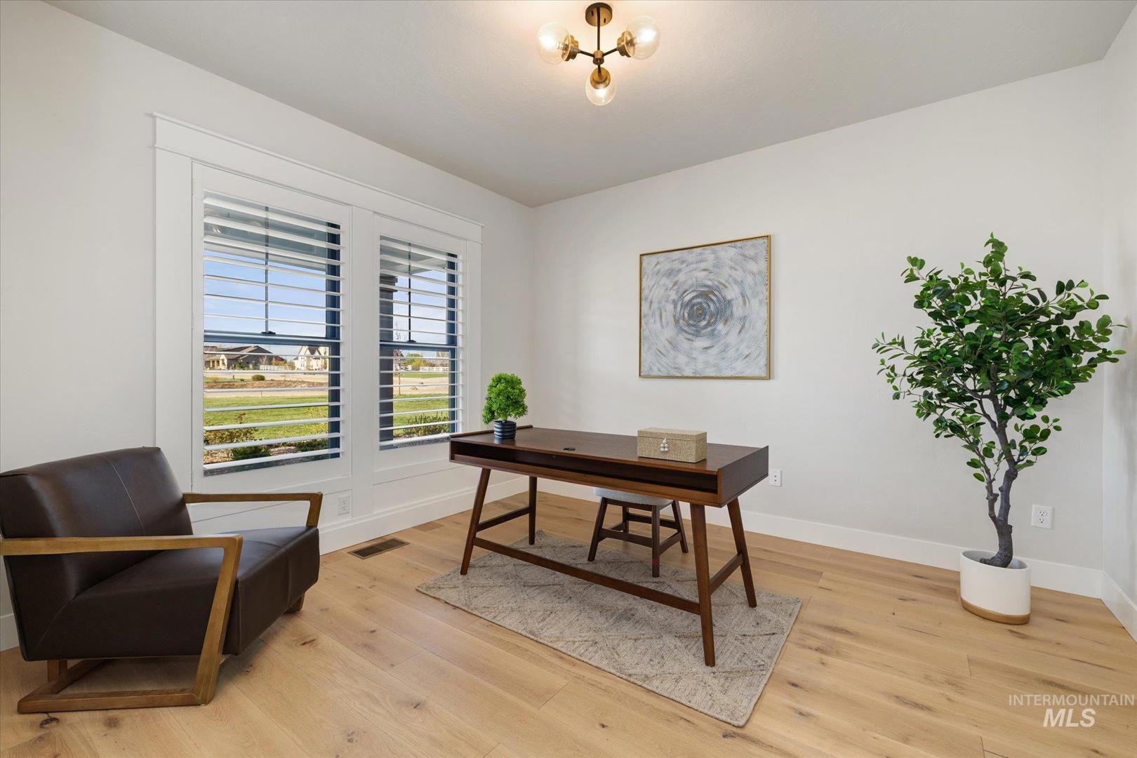 Welcome to this serene elevated living retreat in the desired Timber Hills neighborhood, elegantly designed to incorporate refined comfort in a park-like country setting. The main level boasts a vaulted great room w/ expansive windows focused on the show-stopping outdoor living oasis. A chef`s kitchen, featuring Thermador appliances, provides a seamless layout and ample storage plus a large supporting pantry. The private primary extends to a spa-like en-suite & provides patio access. Two additional bedrooms, 1.5 stylish bathrooms, an office, and spacious utility round out the main level while the upstairs hosts a multi-function bonus room, two airy bedrooms & a full bath. Relax & enjoy the resort-style pool & spa framed by outdoor dining, vast lawns, swings and premier landscaping. Store cars and toys in the roomy 3-car epoxied garage. Easy freeway access & a short drive from Indian Creek and Lake Lowell.