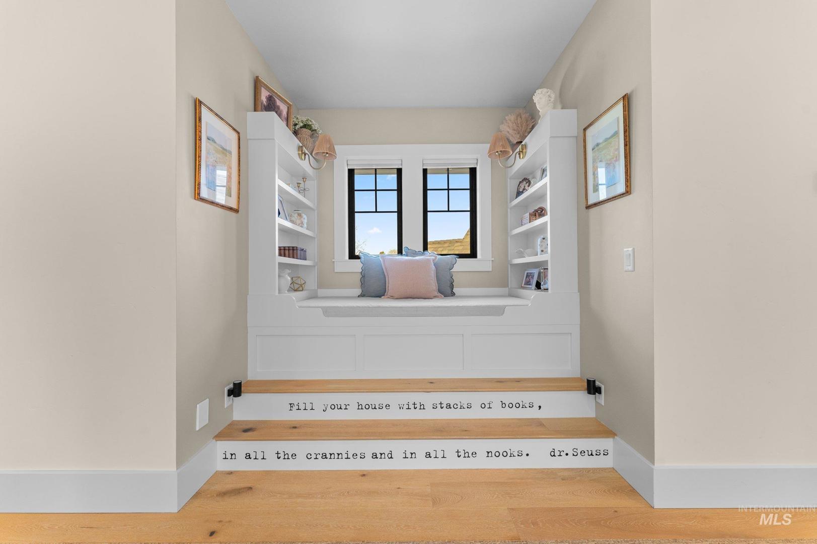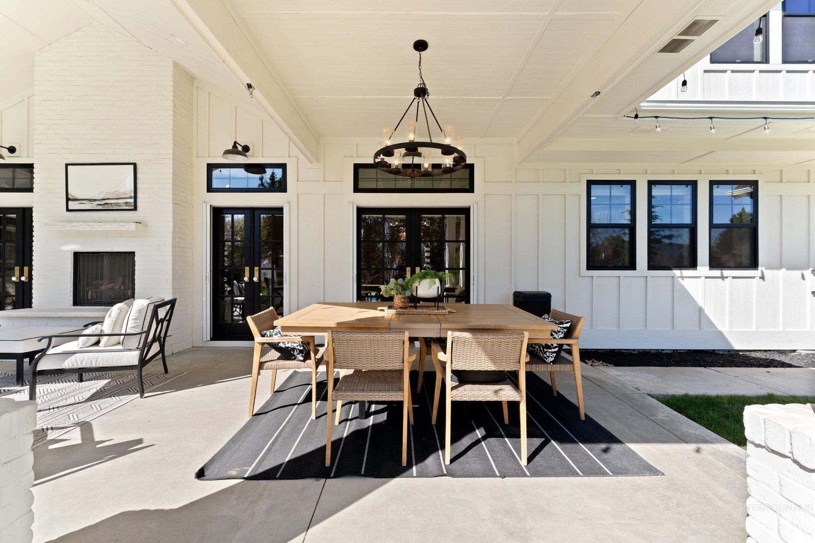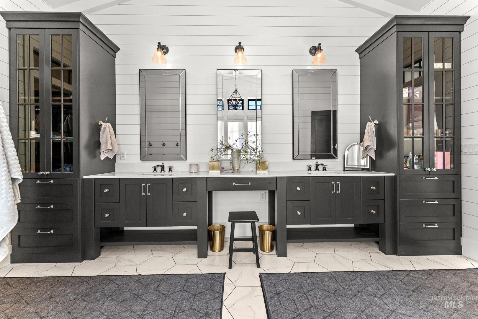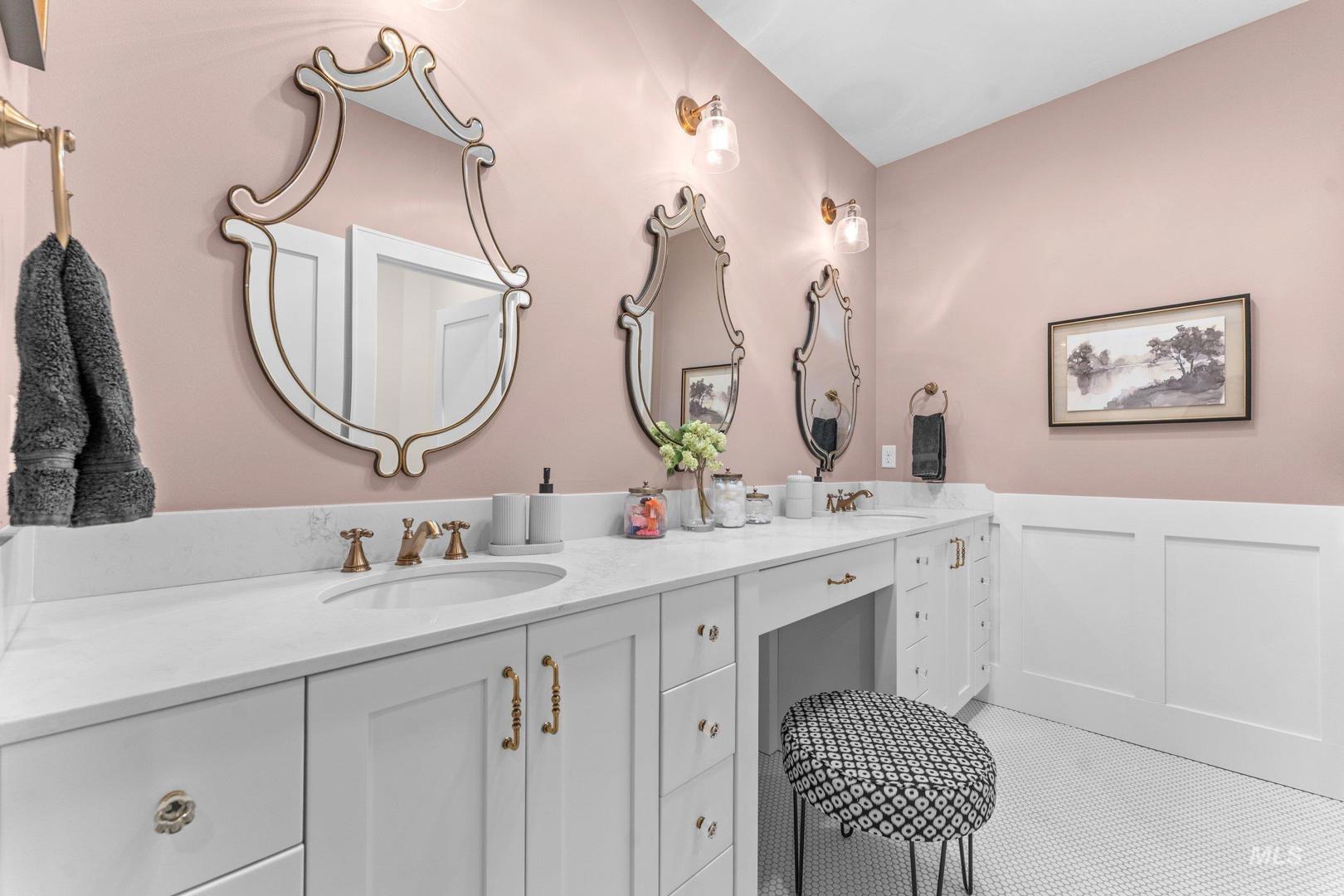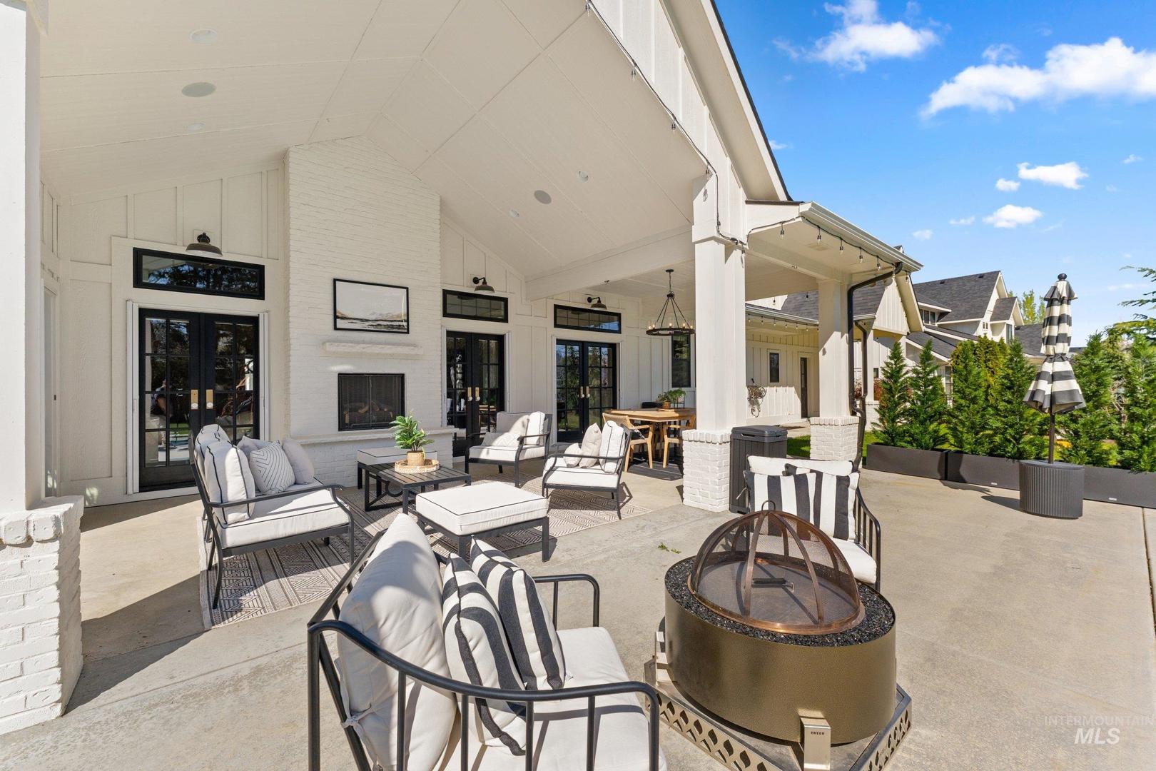 Former Parade Home in The Hickories offering exceptional craftsmanship and thoughtful design throughout. Situated on a private cul-de-sac on a .64-acre lot in a prime location near where Boise, Meridian, and Eagle converge, this home blends luxury with everyday livability. Grand 23’ tall entry, wide plank hardwood flooring, 8’ doors with glass pane details, and Emtek hardware set the tone. The kitchen features a full Thermador appliance suite including steam convection oven, 6 burner range with grill, custom cabinetry with integrated lighting, 8.5’ island, and a butler’s pantry with glass pane details. Custom wall treatments and detailed millwork are carried throughout, including a stunning primary suite with steam shower, soaking tub, motorized blackout blinds, and full shiplap detailing. Flexible spaces include a 25’ bonus room, three reading nooks, under stair playroom, and a craft and laundry room with a 7’ table, sink, and built ins. The gorgeous backyard was thoughtfully designed for both relaxation and entertaining with a heated saltwater pool, sun shelf, water features, diving board, and 29’ covered patio. High end systems include whole home generator, water filtration, whole house humidifier, Lutron lighting, and whole home audio.