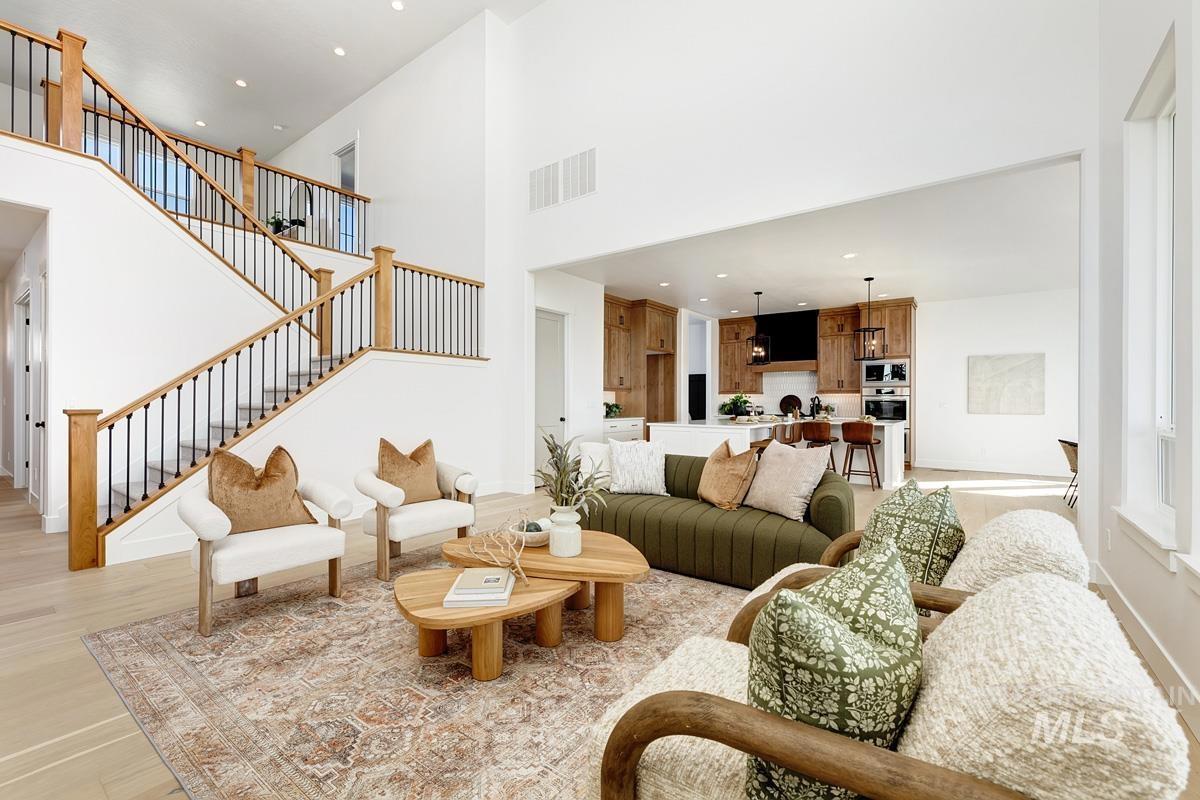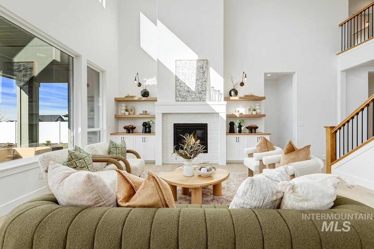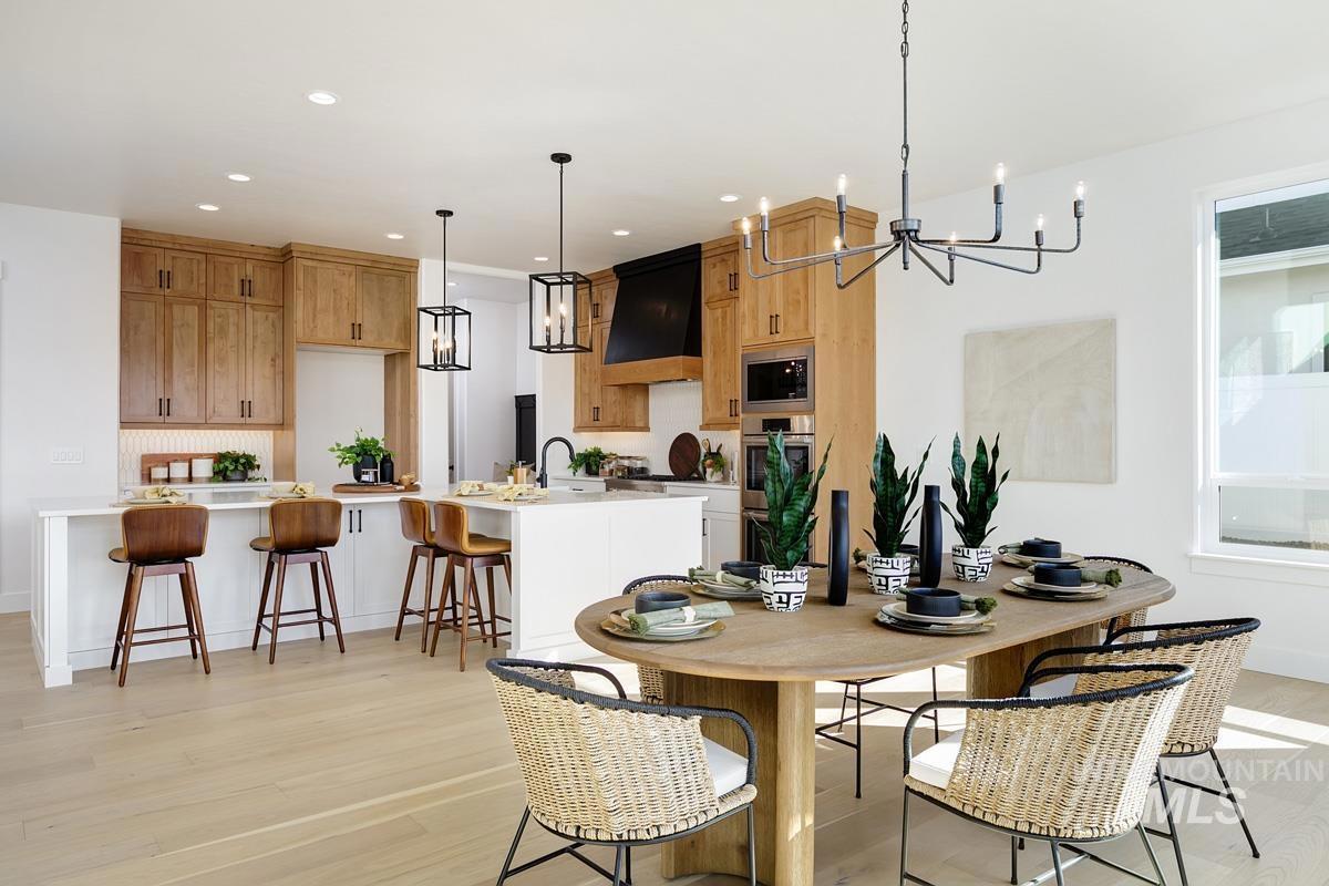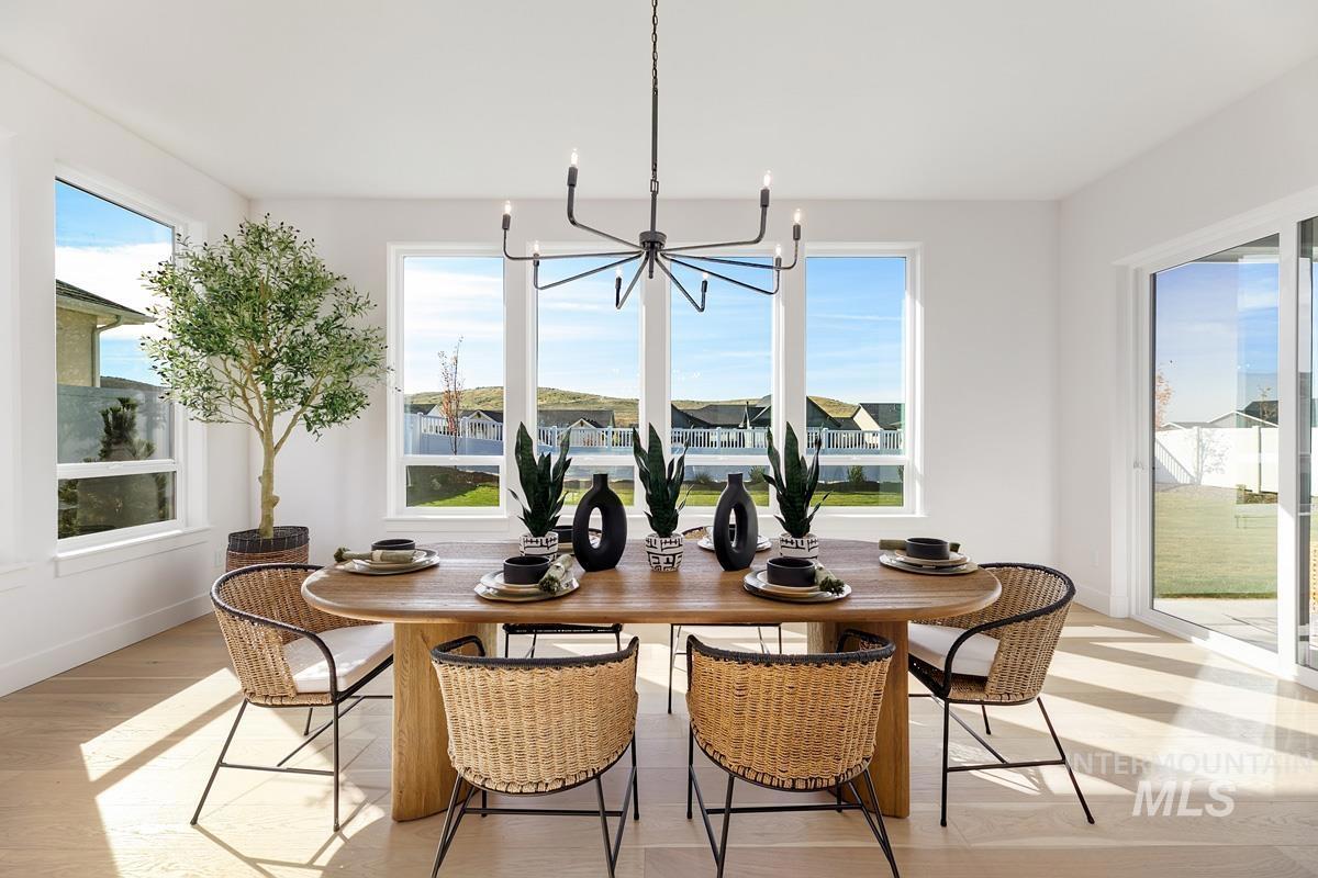 Located on a half-acre homesite in the desirable Estates at Dry Creek Ranch, this Plateau home with an RV garage and shop expansion impresses with stunning curb appeal. Beyond the grand entryway, the great room makes a statement with a platform fireplace, soaring two-story ceilings, and an open concept that flows easily between spaces. The chef’s kitchen features wall-to-wall windows in the dining area along with a generous L-shaped island, handsome cabinetry, and a multi-panel sliding glass door opening to the covered patio. The main-level primary suite is a perfect place to begin and end the day, complete with a freestanding tub, walk-in shower, and massive closet. Upstairs, a spacious loft is surrounded by several large bedrooms and bathrooms. Now open, the Dry Creek Ranch Community Clubhouse spans five manicured acres, featuring sports courts, a pool, and a 8,840 sqft. clubhouse w/ state-of-the-art amenities. Located in the Eagle Foothills minutes from the best Idaho has to offer, including local dining, shopping, and outdoor recreation. Home is to be built. Photo similar.