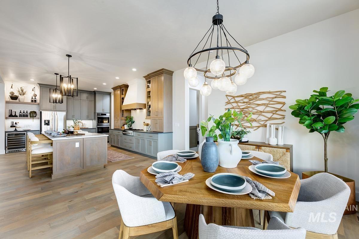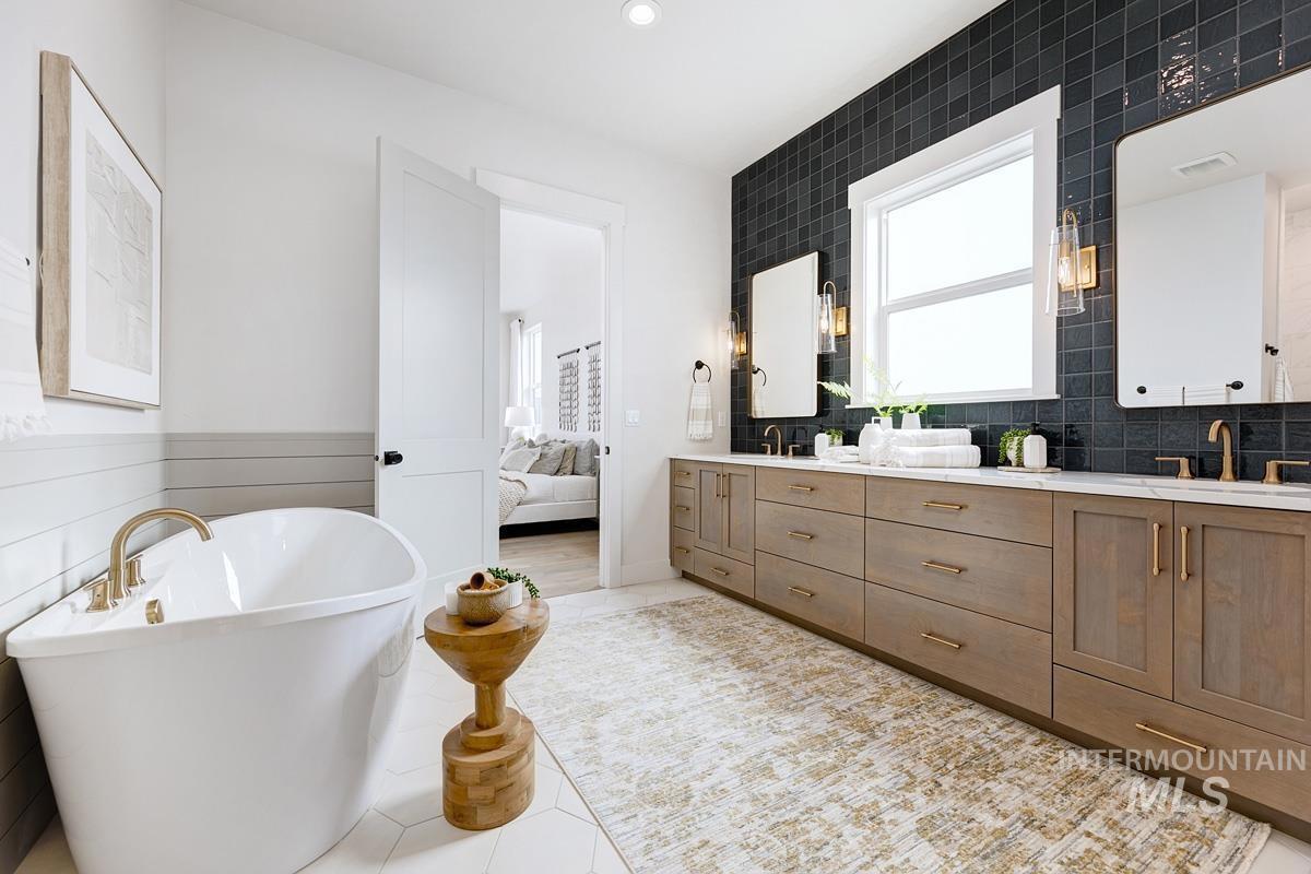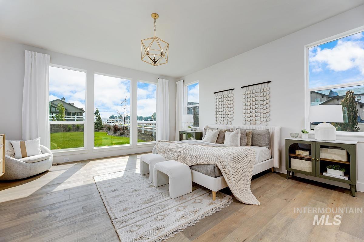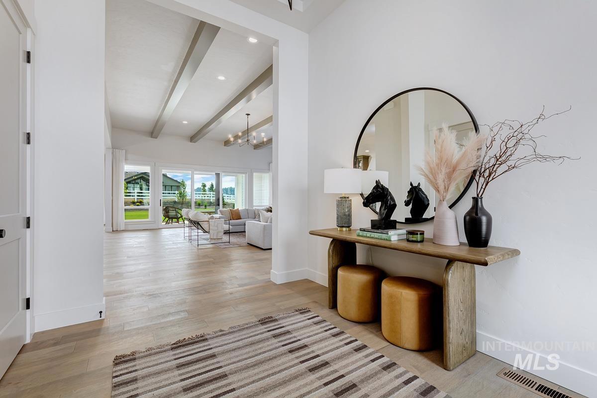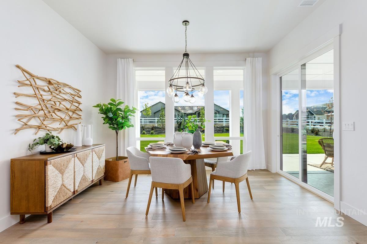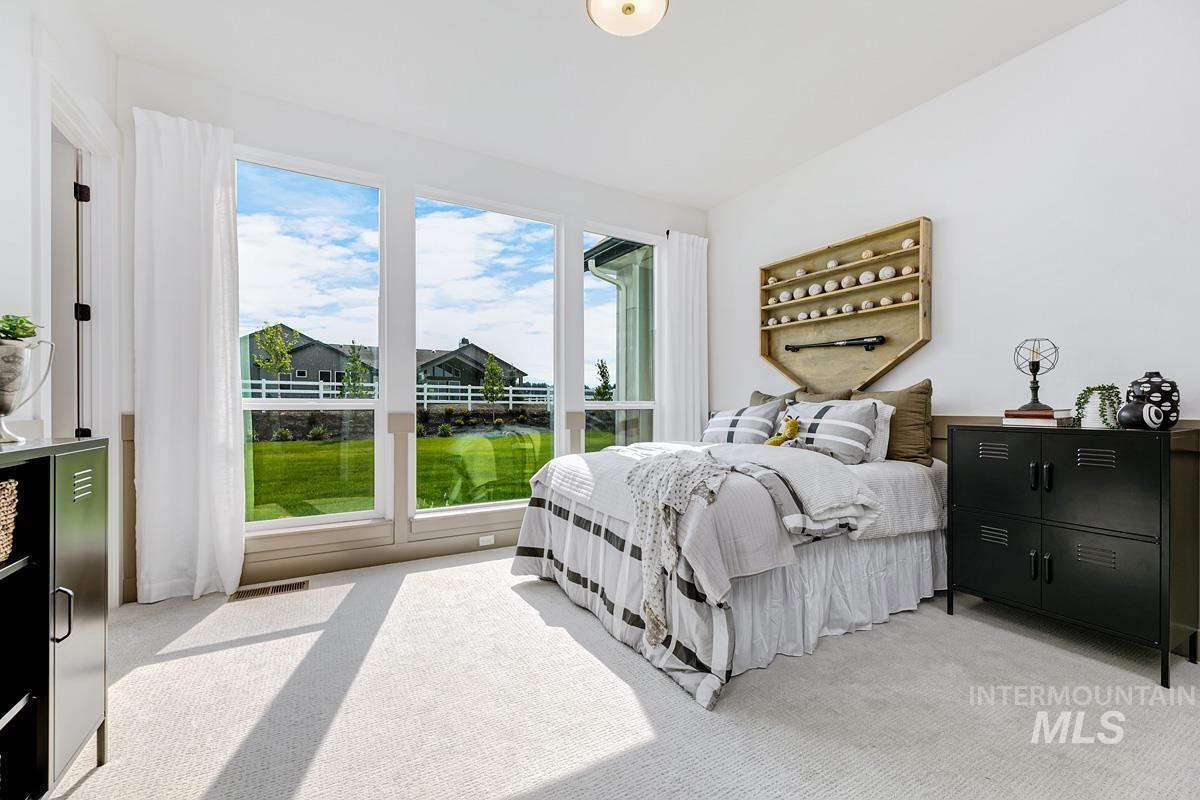This Amethyst home makes a bold statement with stunning curb appeal and striking design, all set on a spacious almost half-acre homesite with views of the mountains and Stack Rock. The 3-car side-load garage enhances the grand entry beneath a large, covered porch. Step inside to an elongated foyer, with a double-door office to your left, and continue into one of the largest great rooms we offer—featuring towering windows and a statement fireplace. The kitchen is equally impressive, offering sprawling countertops and an oversized pantry. The primary suite includes tall windows overlooking the backyard, along with a soaker tub and a tiled walk-in shower. A guest suite next to the flex room provides a variety of living options to suit your needs. Now open, the Dry Creek Ranch Community Clubhouse spans five manicured acres, featuring sports courts, a pool, and a 8,840 sqft. clubhouse w/ state-of-the-art amenities. Located in the Eagle Foothills minutes from the best Idaho has to offer, including local dining, shopping, and outdoor recreation. Home is to be built. Photos similar. Taxes are not yet assessed and to be determined by Ada County.