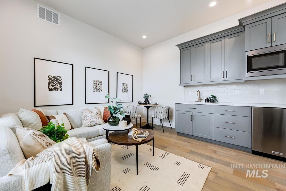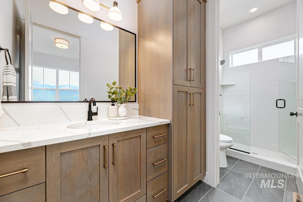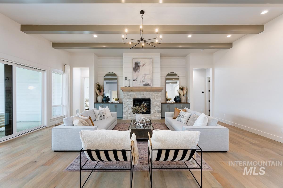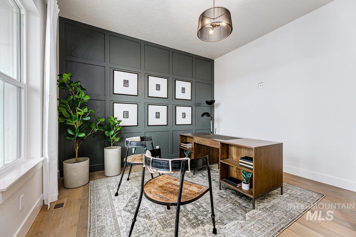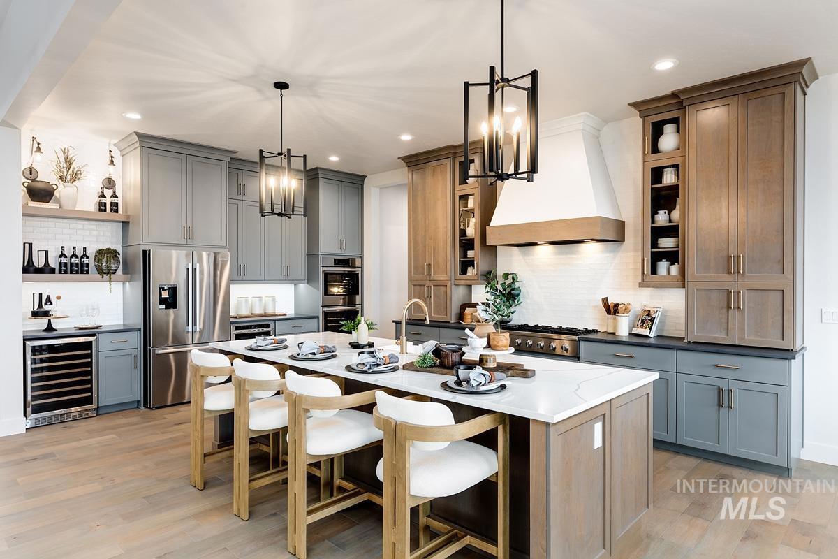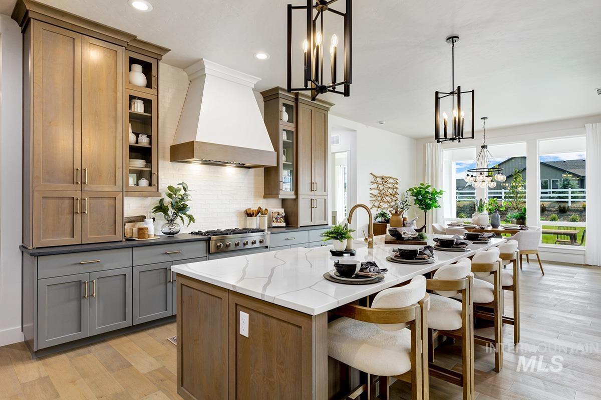 This Amethyst home makes a bold statement with stunning curb appeal and striking design, all set on a spacious almost half-acre homesite with views of the mountains and Stack Rock. The 3-car side-load garage enhances the grand entry beneath a large, covered porch. Step inside to an elongated foyer, with a double-door office to your left, and continue into one of the largest great rooms we offer—featuring towering windows and a statement fireplace. The kitchen is equally impressive, offering sprawling countertops and an oversized pantry. The primary suite includes tall windows overlooking the backyard, along with a soaker tub and a tiled walk-in shower. A guest suite next to the flex room provides a variety of living options to suit your needs. Now open, the Dry Creek Ranch Community Clubhouse spans five manicured acres, featuring sports courts, a pool, and a 8,840 sqft. clubhouse w/ state-of-the-art amenities. Located in the Eagle Foothills minutes from the best Idaho has to offer, including local dining, shopping, and outdoor recreation. Home is to be built. Photos similar. Taxes are not yet assessed and to be determined by Ada County.