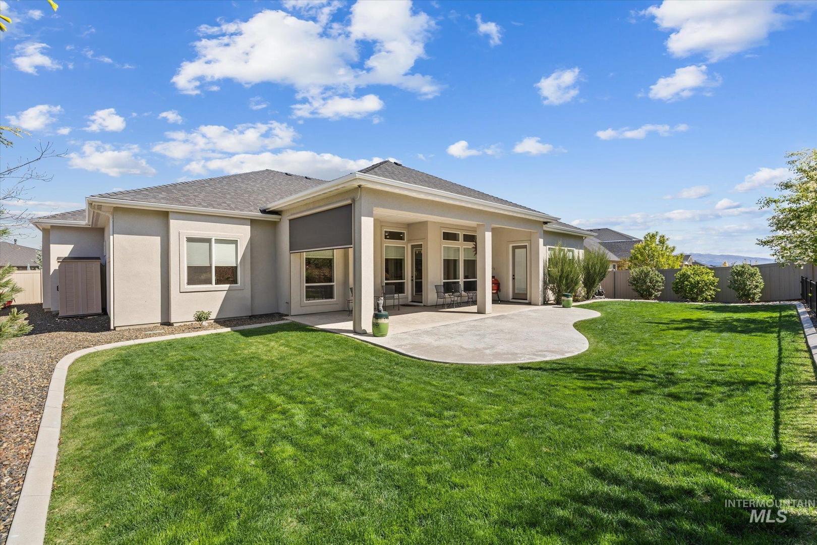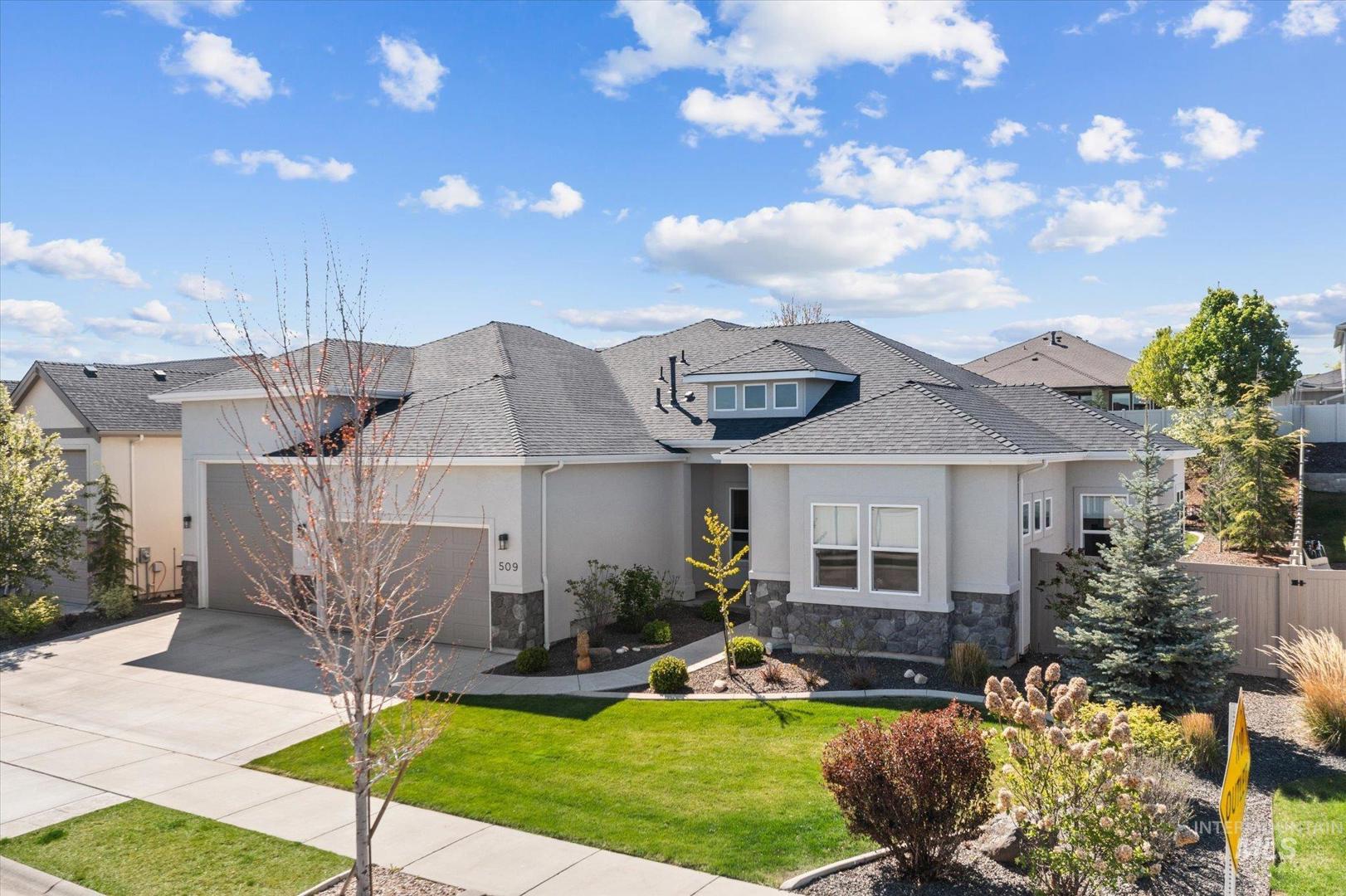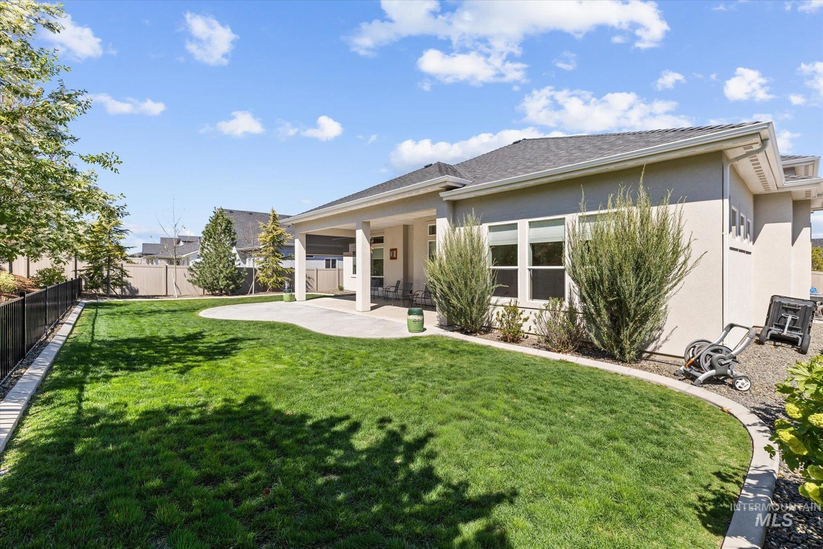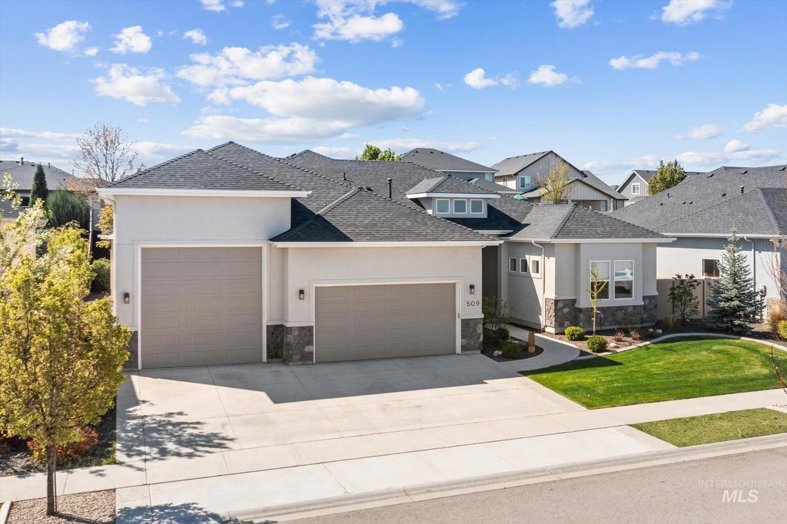 Immaculate luxury living in coveted Caven Ridge Estates with an exceptional RV bay! Striking great room with soaring ceilings, expansive windows, and a custom fireplace with remote control. Beautifully updated with fresh interior paint, updated flooring and new stainless steel double ovens, dishwasher, and refrigerator. Designed for both elegance and functionality, this single-level home features a spacious bonus room and a dedicated office. The gourmet kitchen impresses with quartz countertops, soft-close cabinetry, double ovens, and a generous walk-in pantry. The serene primary suite is filled with natural light and offers a spa-like bath with soaker tub, split dual vanities, and a tile walk-in shower. Enjoy effortless indoor-outdoor living on the covered patio with automatic shade—perfect for entertaining or relaxing. The oversized 3-car garage includes a rare RV bay (12’H x 12’W door 40’ deep bay) room for all of your toys. Ideally located on a quiet dead-end street just moments from the community pool, park, and playground.