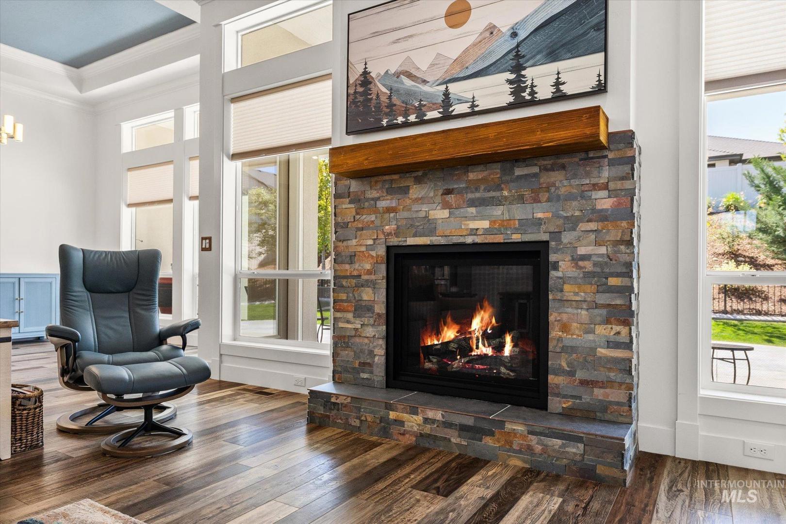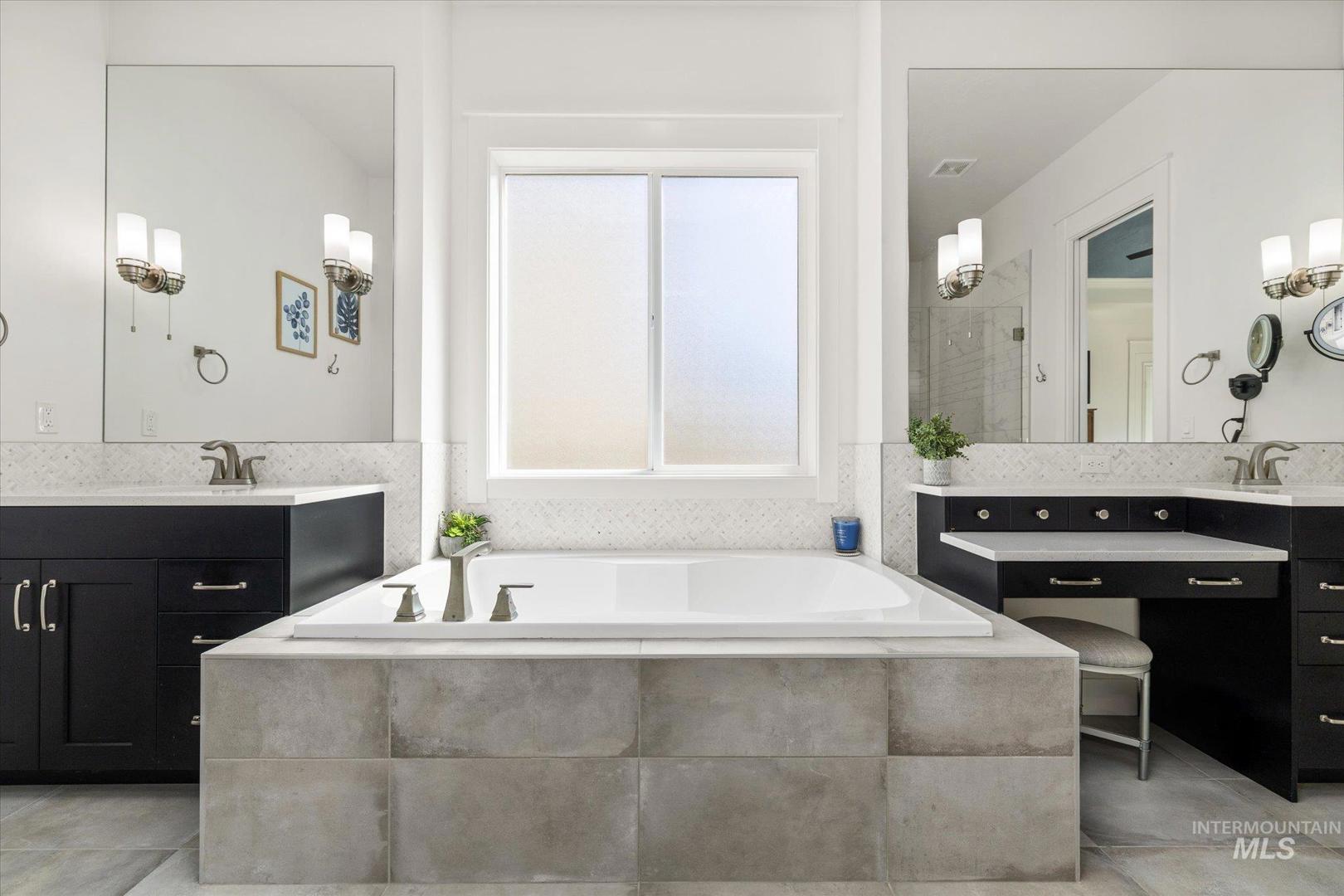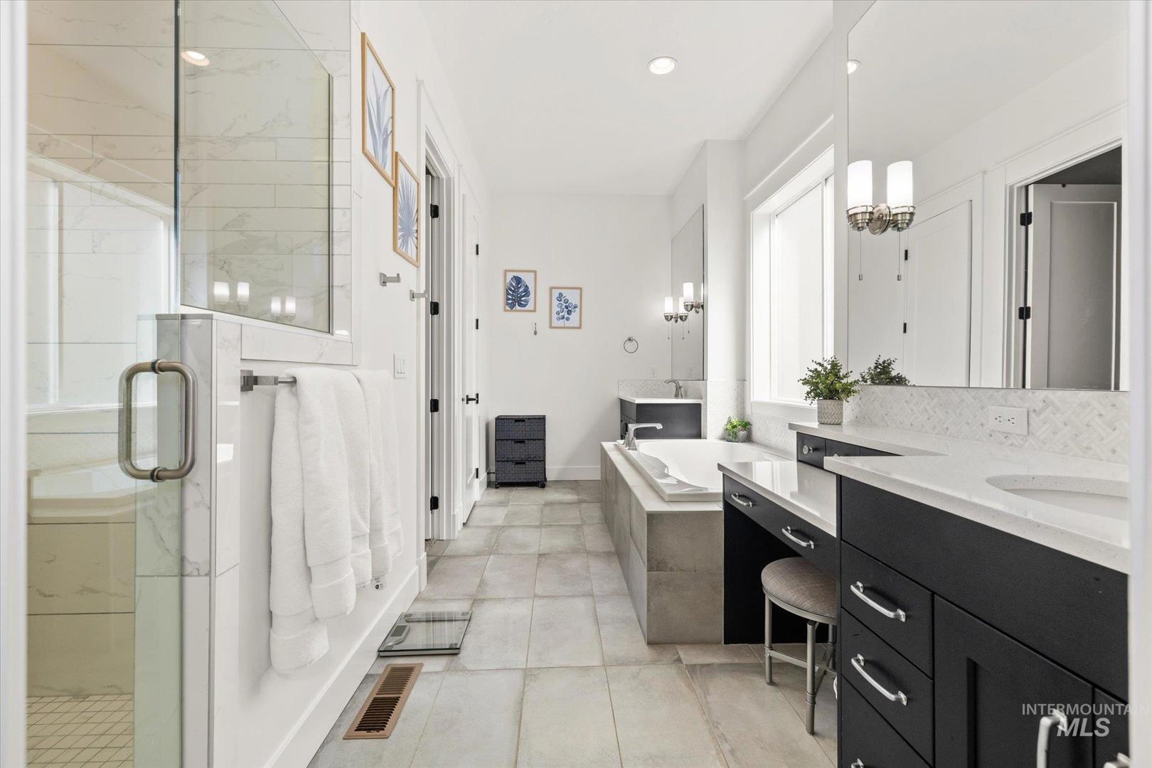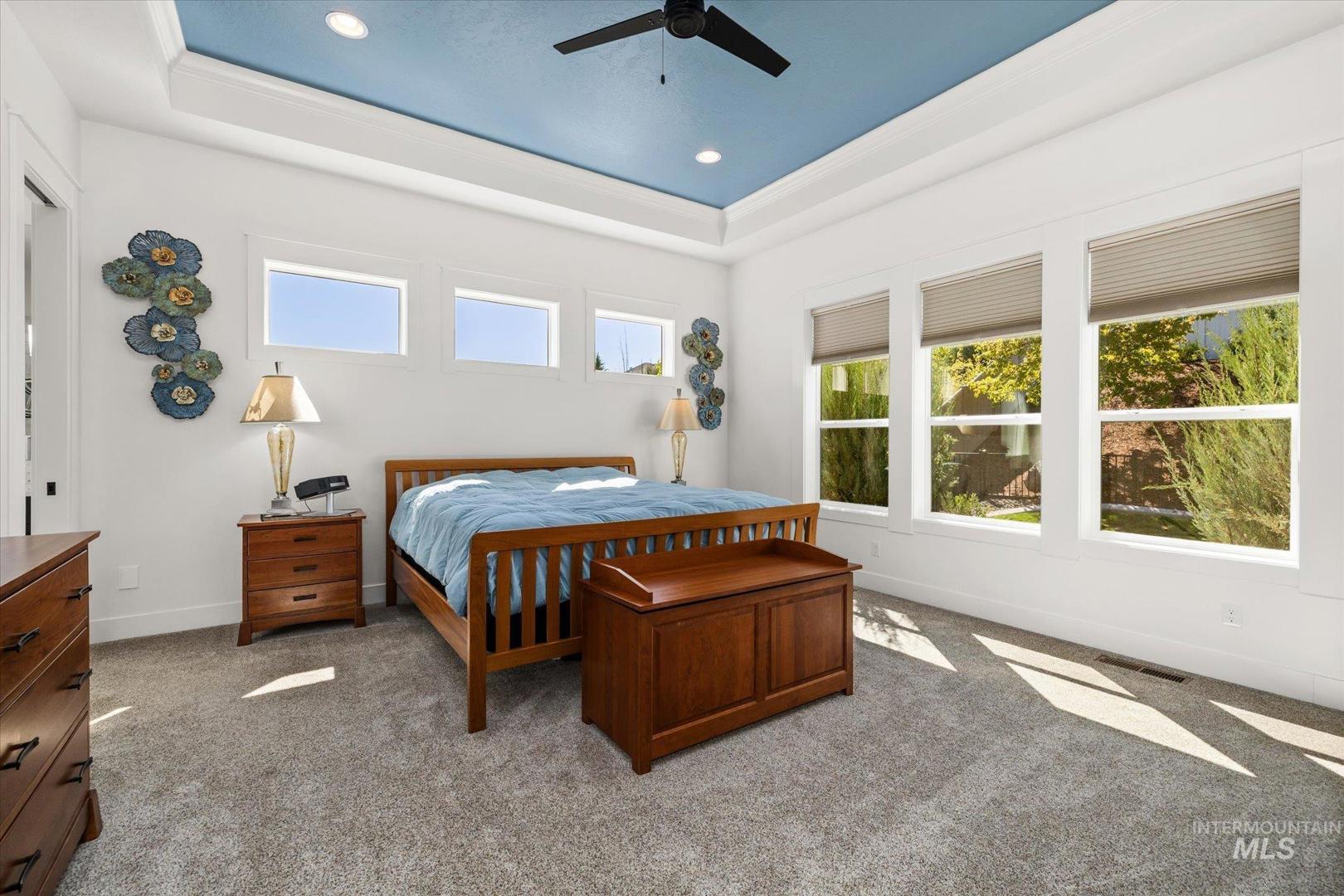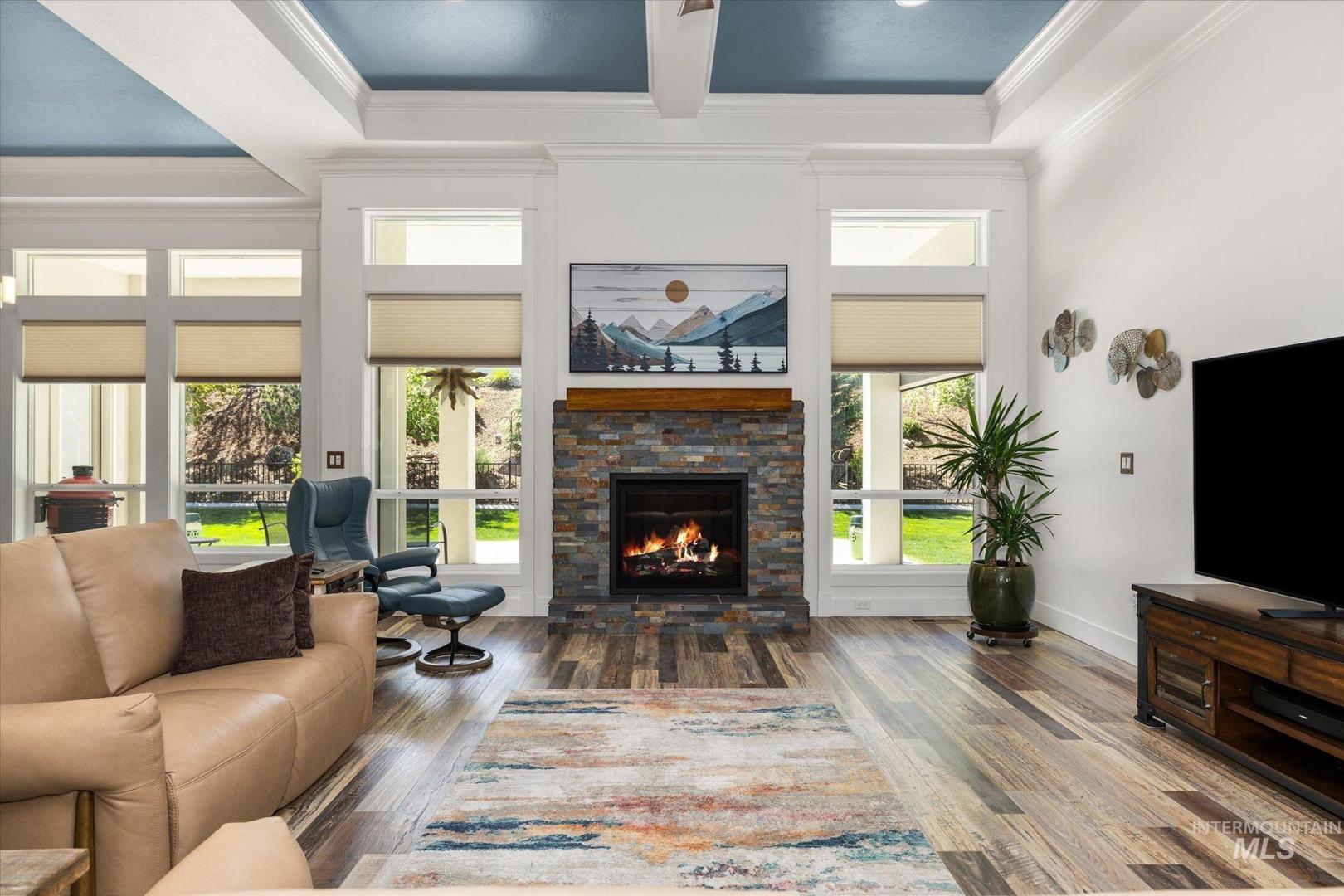Immaculate luxury living in coveted Caven Ridge Estates with an exceptional RV bay! Striking great room with soaring ceilings, expansive windows, and a custom fireplace with remote control. Beautifully updated with fresh interior paint, updated flooring and new stainless steel double ovens, dishwasher, and refrigerator. Designed for both elegance and functionality, this single-level home features a spacious bonus room and a dedicated office. The gourmet kitchen impresses with quartz countertops, soft-close cabinetry, double ovens, and a generous walk-in pantry. The serene primary suite is filled with natural light and offers a spa-like bath with soaker tub, split dual vanities, and a tile walk-in shower. Enjoy effortless indoor-outdoor living on the covered patio with automatic shade—perfect for entertaining or relaxing. The oversized 3-car garage includes a rare RV bay (12’H x 12’W door 40’ deep bay) room for all of your toys. Ideally located on a quiet dead-end street just moments from the community pool, park, and playground.