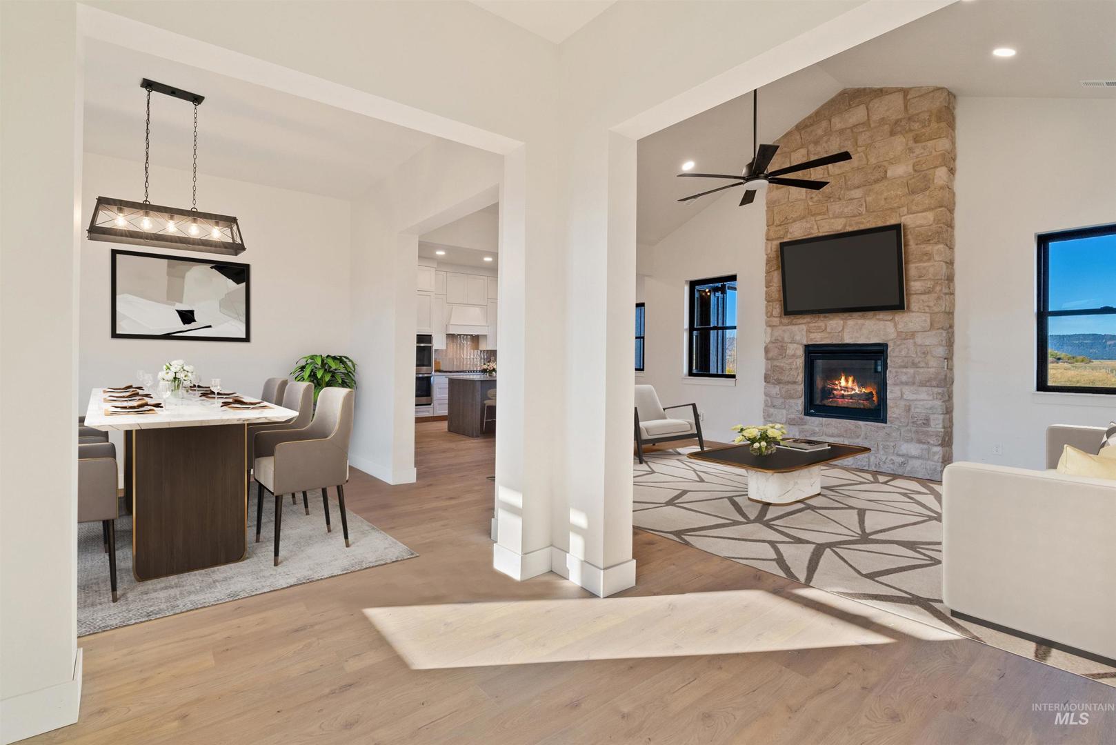 The Big Sky at Lake Fork Landing features a split bedroom floor plan, great room with vaulted ceilings, stone fireplace, and covered patios. Bright open kitchen with island and breakfast nook. Separate dining room and office/bedroom, as well as bonus room/5th bedroom with bathroom above garage. Enjoy views of Jug Mountain from the bonus room balcony. Minutes away from McCall, Tamarack, and Jug Mountain Ranch!