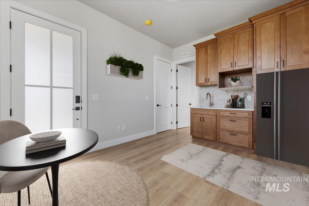 4.95% 30 year fixed interest rate, $4,779 PITI (APR 4.99% -5.25%) available! Welcome to The Sierra MULTIGENENERATIONAL floorplan by Pacific Lifestyle Homes! Experience the perfect blend of style, comfort and function with 5 bedrooms and 3.5 bathrooms, including a FULL GUEST QUARTER WITH SEPERATE ENTRANCE, bed with en-suite bath with curbless entry walk-in shower, kitchenette and living area. The main living areas feature an open concept floorplan with 10` ceilings and a stunning custom molded fireplace surround. The gourmet kitchen features a 4` deep quartz island, cabinetry to the ceiling and double ovens. Large fully landscaped fenced, North facing backyard with large covered patio and NO backyard neighbors! Insulated 3-car garage with EV outlet. The community amenities including a clubhouse, pool, pickle ball court, playground. Model Home opened Wed-Sun. 11-6pm 7875 W Flathead Lake, Eagle. *Please see documents for offer details and lender contact information and disclosure. *some virtual staged photos*