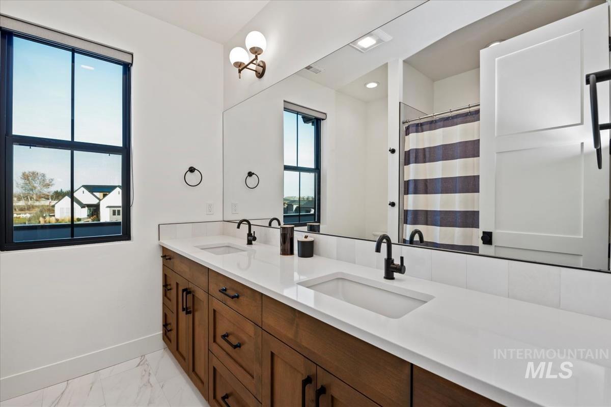 ALL. THE. BOXES. CHECKED. Plus, a few you didn’t even know to ask for. This exceptional, better-than-new Cedar & Sage custom home offers 3,600+ sq ft of thoughtfully designed living with 4 bedrooms (3 ensuite), two bonus spaces, and a loft—ideal for multi-generational living, work-from-home flexibility, or a private guest retreat. Soaring ceilings, warm LVP flooring, and an oversized quartz island anchor the open-concept great room designed for entertaining. Set on nearly ½ acre, this custom-crafted property features a true RV garage and a private backyard oasis with pergola and hot tub, backing to a protected wildlife preserve with no rear neighbors. Thoughtful landscaping with space to elevate the backyard even further adds long-term value. Walk to the Boise River, community pool, and easy access to Star shopping and Hwy 16. Rare lot, intentional layout, and design that stands apart.